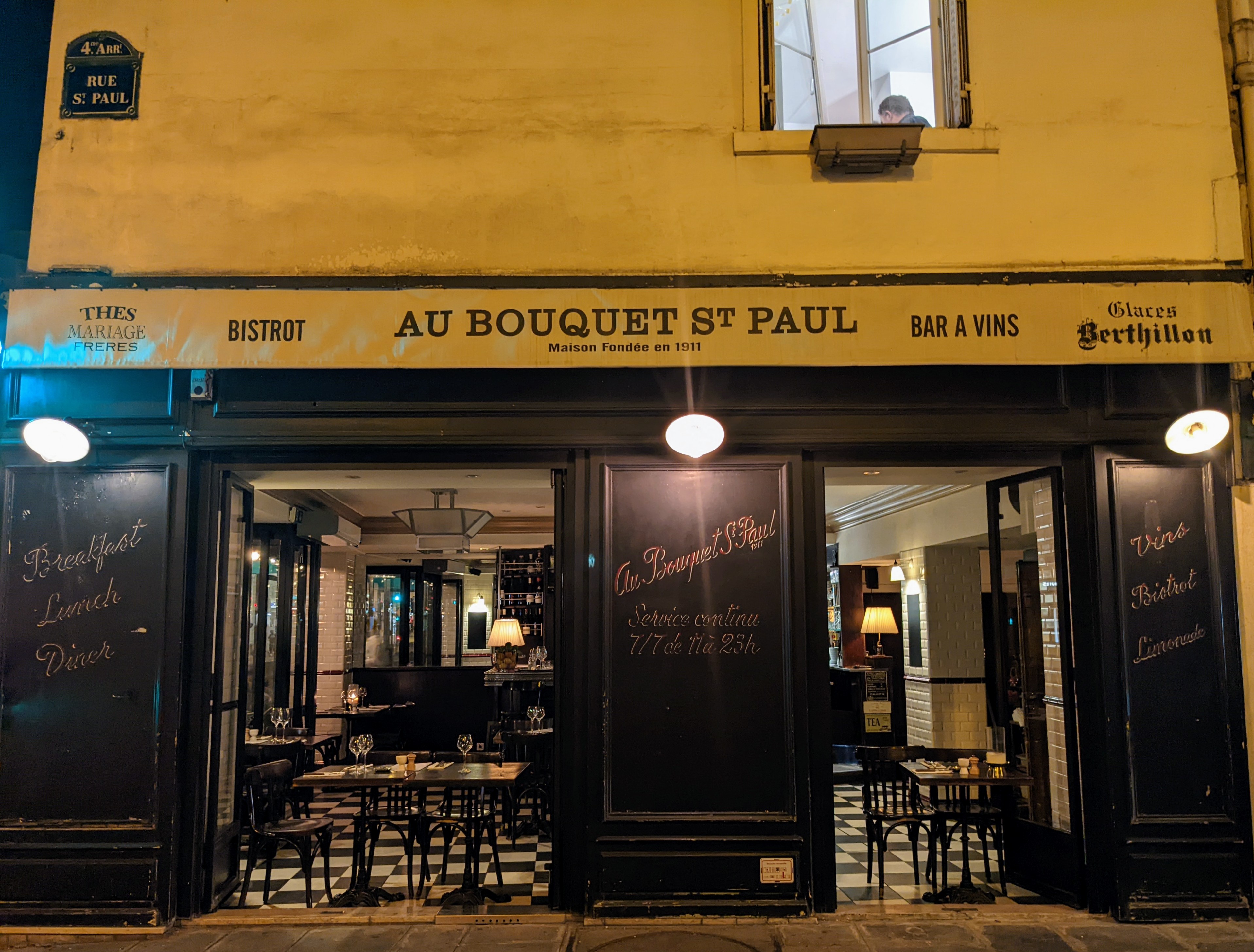 Une belle découverte, brasserie parisienne de qualité comme on aime ! On s’est régalé au bouquet St. Paul une belle carte proposée avec de bons produits frais ca se sent. Des prix plus que corrects, venez les yeux fermés vous ne serrez pas déçus! L’équipe est au top et très attentive à ses clients. J’ai hâte de revenir à Paris pour y retourner 😍😍 j’espère à très vite !!!