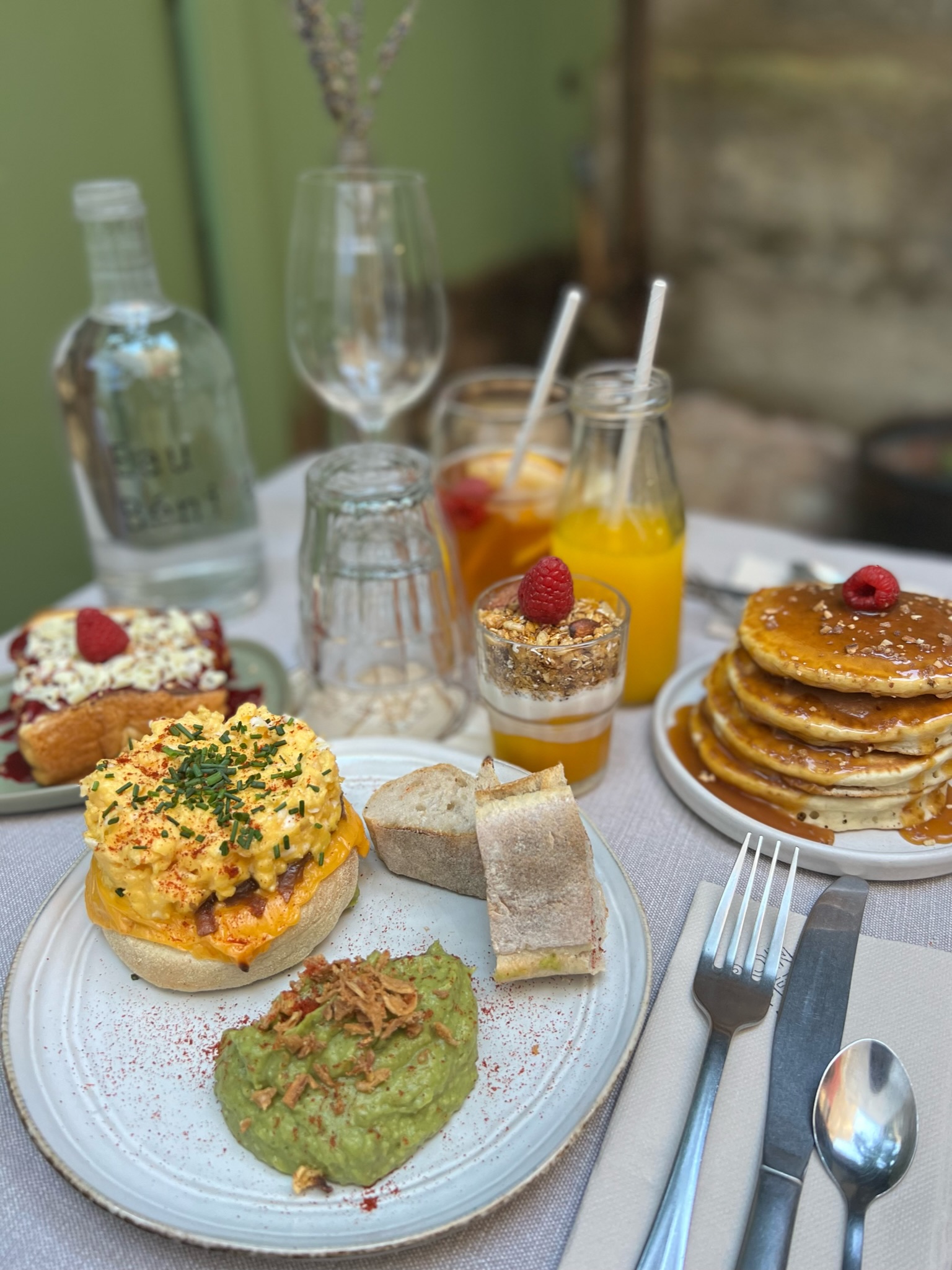 Brunch du dimanche, du pain perdu, des pancakes, des madeleines, un açai bowl, toast avocats œuf, des falafels, une soupe, une boisson chaude un jus bien frais une super adresse une équipe souriante et sympathique bonne découverte de notre week-end à Bordeaux