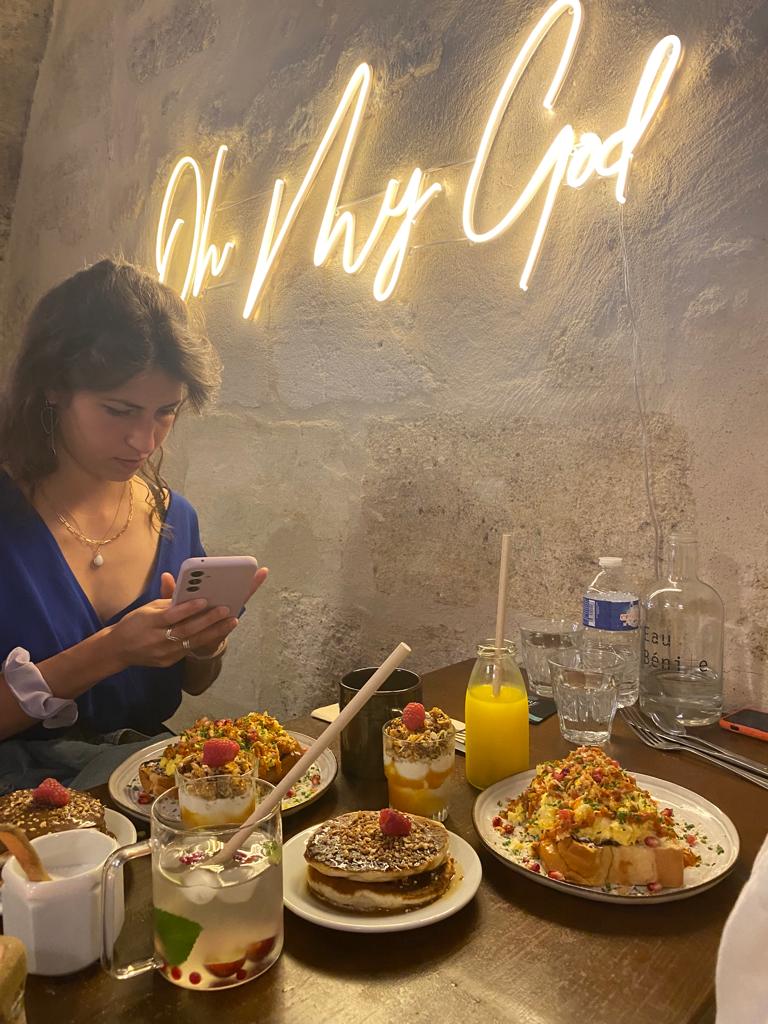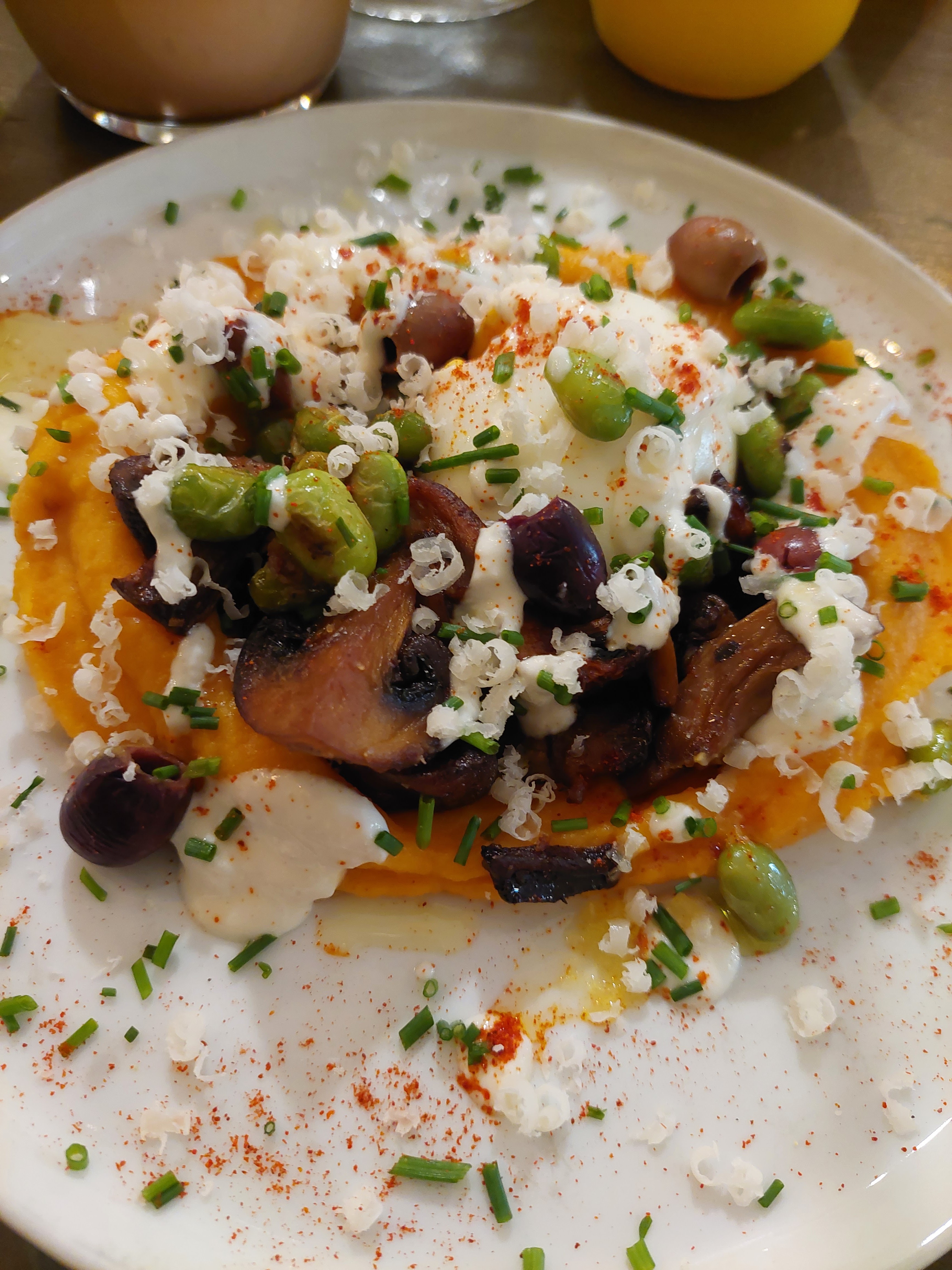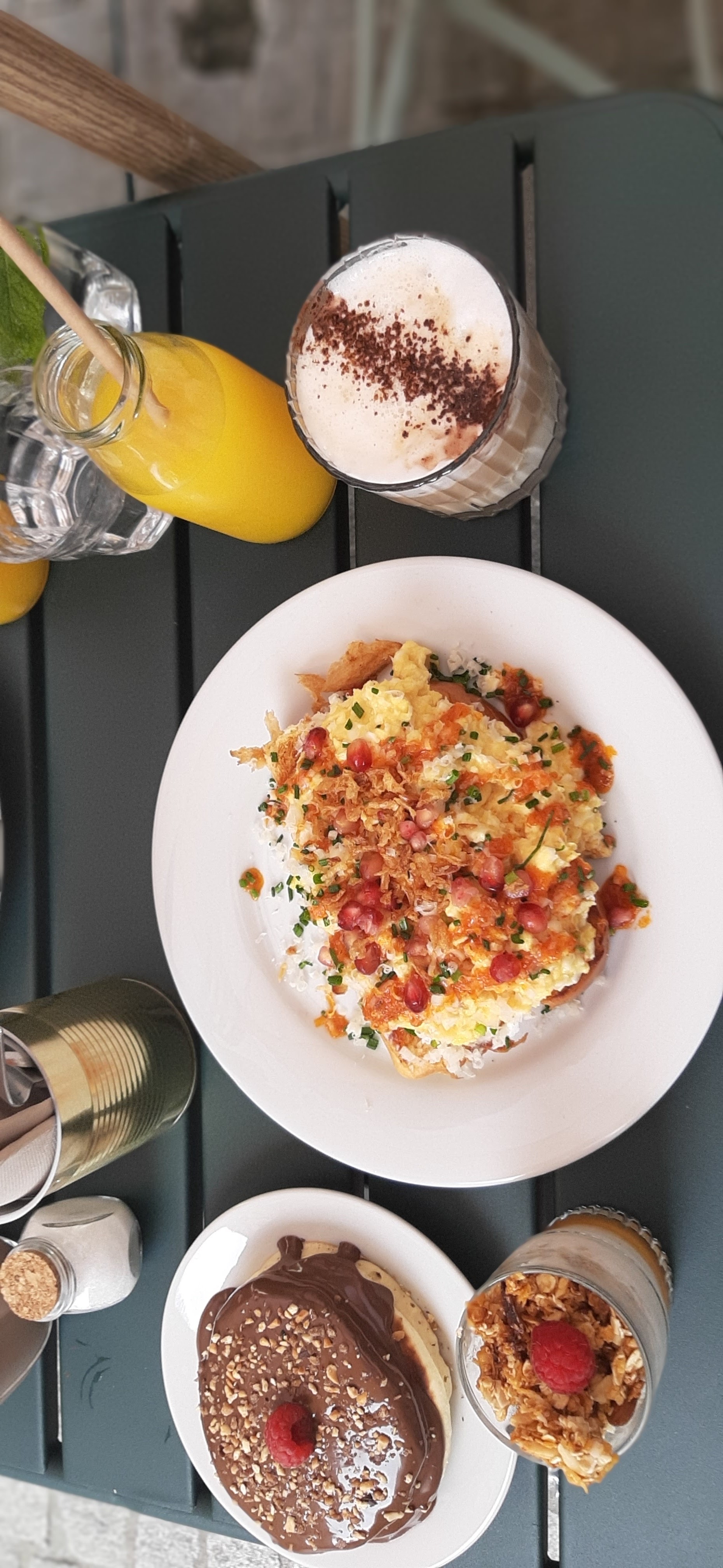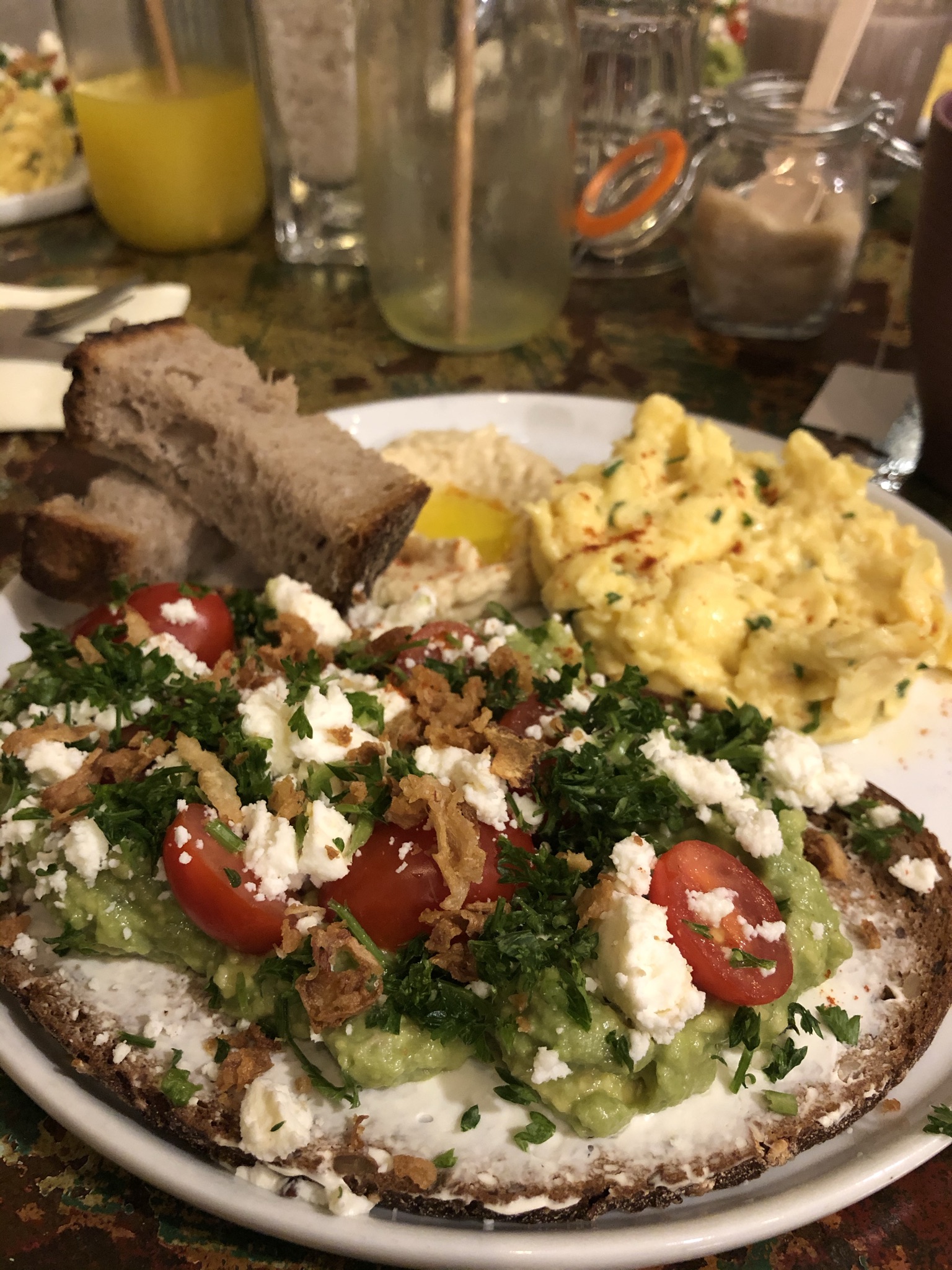 Ambiance chaleureuse, jolie decoration et beau concept avec que deux formules proposées, mais malheureusement n’atteint pas la hauteur de nos attentes. Nous sommes venus le weekend pour profiter de la formule brunch à 29€. La formule est très chargée avec 2 boissons, un toast avocat sur pancake avec oeuf frais, du houmous, une brioche façon pain perdu, du yaourt grec et 2 gros pancakes sucrés. De manière globale la présentation est belle et la nourriture est bonne, mais on trouve qu’il n’y avait pas assez d’houmous (qui était excellent) et que les pancakes étaient assez fades. A notre grande surprise, ils ne proposent ni fruits ni sirop d’érable pour accompagner les pancakes, que du caramel beurre salé ou pâte à tartiner et ces toppings rendait la dégustation bien moins gouteuse. Comparé aux autres endroits ou nous avons brunché, on n’a pas trouvé ces plats éblouissant ni légitimes pour le prix.