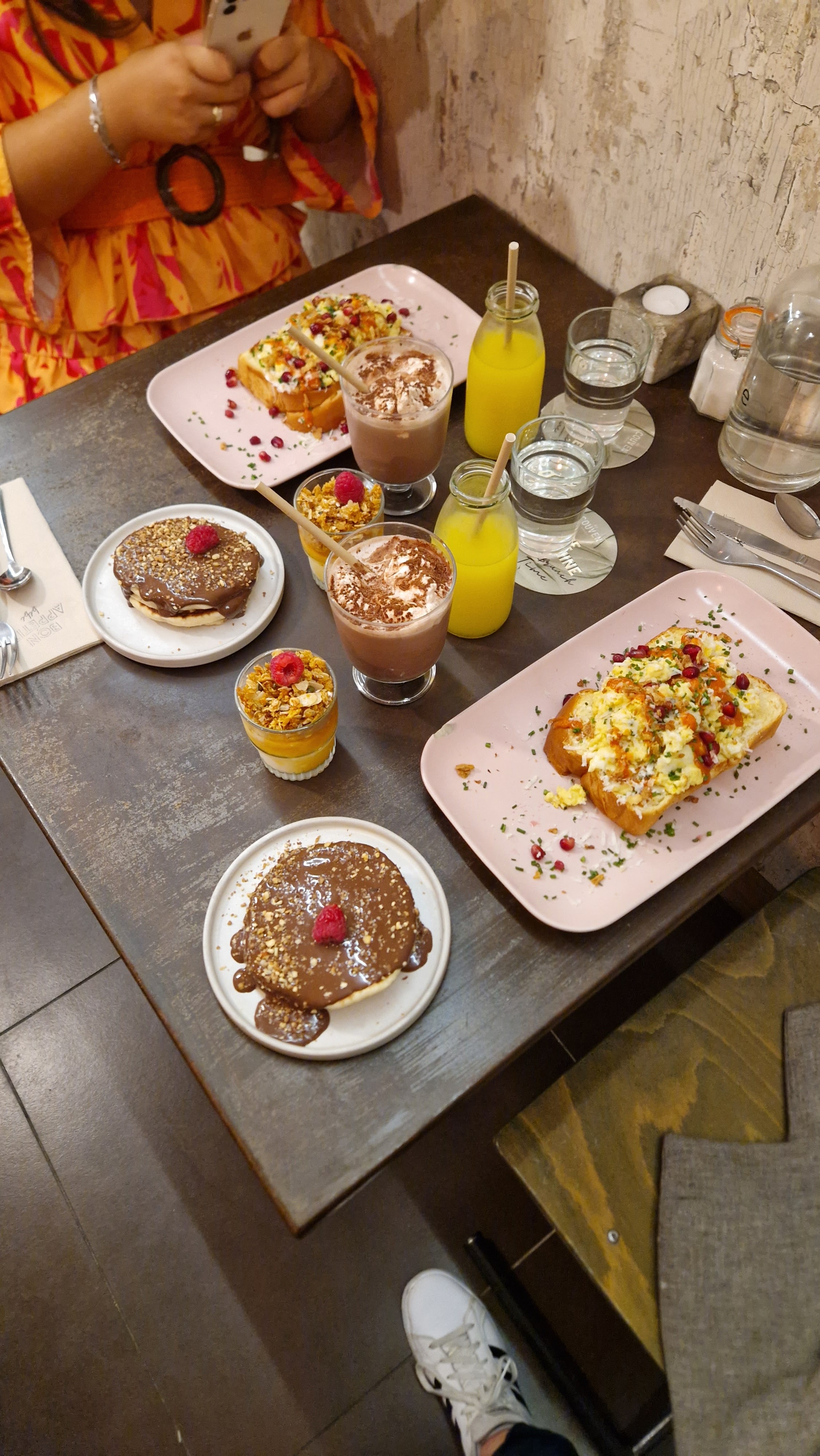 Un bon lieu de brunch, la déco est sympa, tendance, le service est très bien, doux et agréable en fin de service après 13h30, et le choix des saveurs top! Un plat salé avec des œufs et cheddar délicieux, des pancakes super savoureux, on a pas pu goûter la brioche perdue mais une prochaine. Le tarif est plutôt élevé comparé à ce qu’il se fait sur le marché sans pour autant avoir un vrai plus ou une mention ouaou bien que le granola maison soit excellent ! Ça implique d’être toujours excellent même dans les horaires et jours chargés