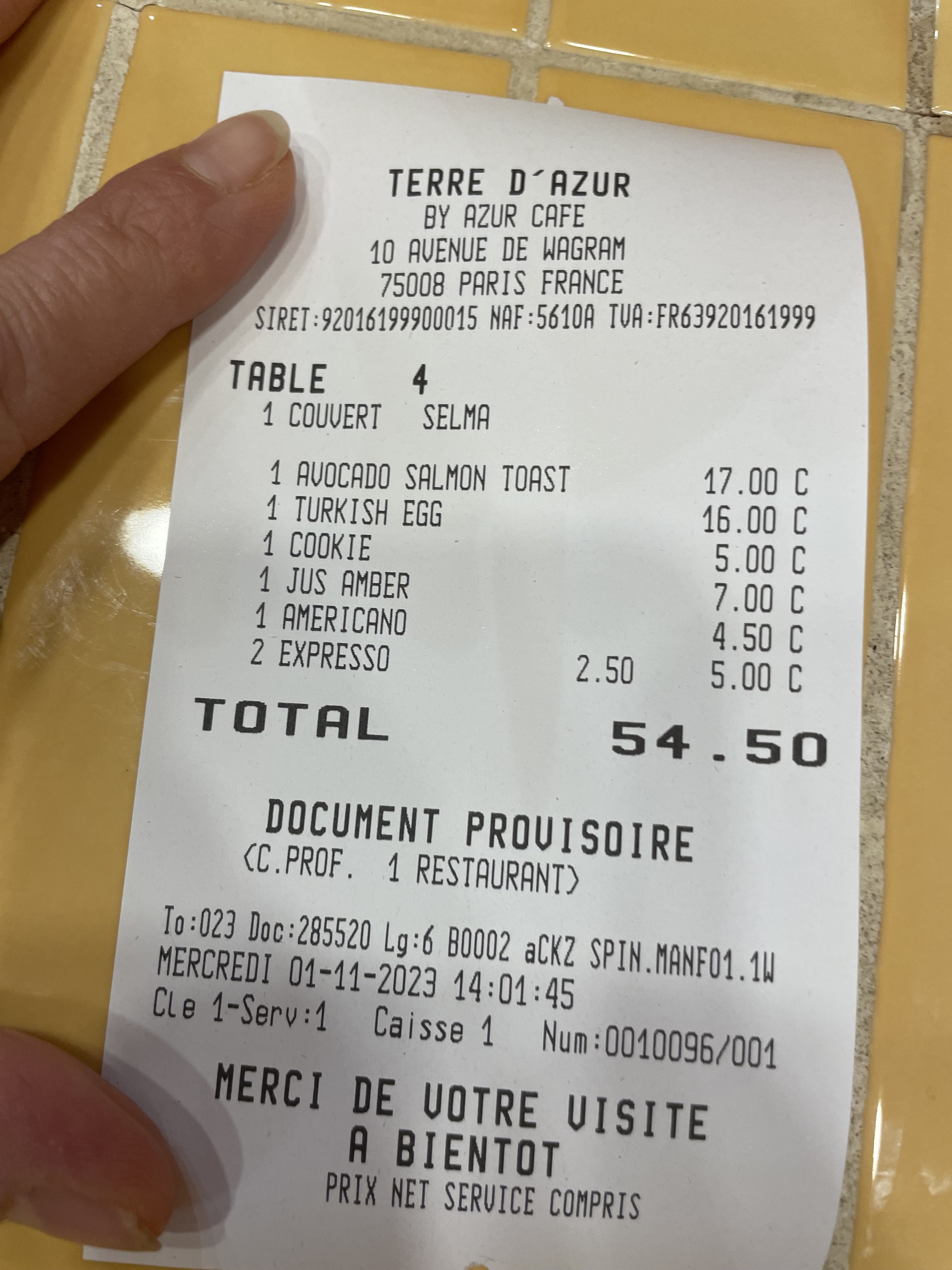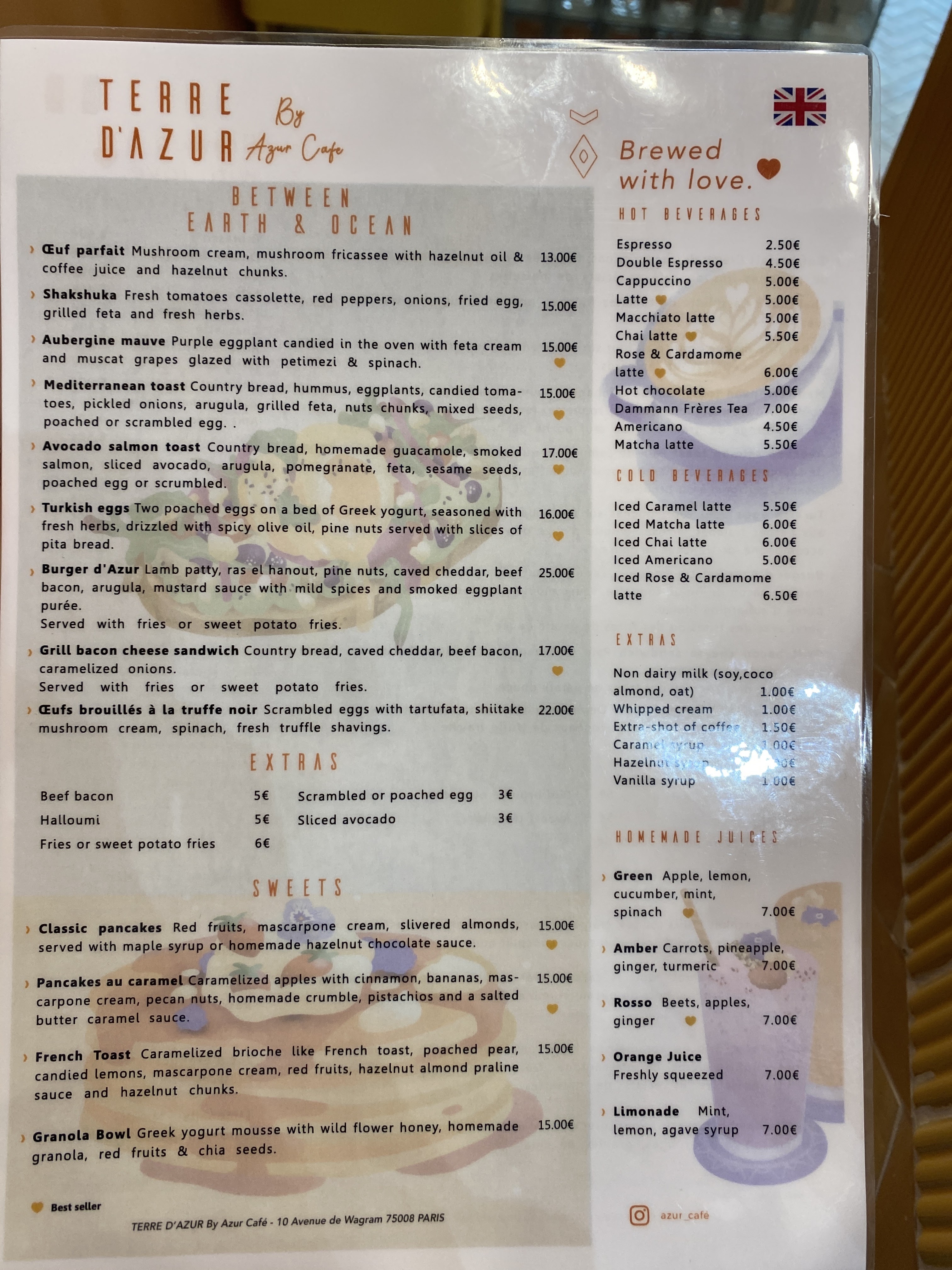 Hello Hélène, L'équipe Terre d'Azur vous remercie de votre visite et votre gentil commentaire. 😊 Nous sommes ravi de savoir que vous avez apprécié notre brunch parisien à quelques pas d'Arc de Triomphe. Nous continuerons à faire de notre mieux afin de devenir meilleur Brunch de Paris. 💥 Nous espérons vous revoir pour profiter d'un nouveau petit déjeuner dans notre Coffee shop. ☕️ Terre d'Azur team 💛 📍10 Avenue Wagram 7500 Ⓜ️ Charles de Gaulle-Etoile Ⓜ️ Ternes