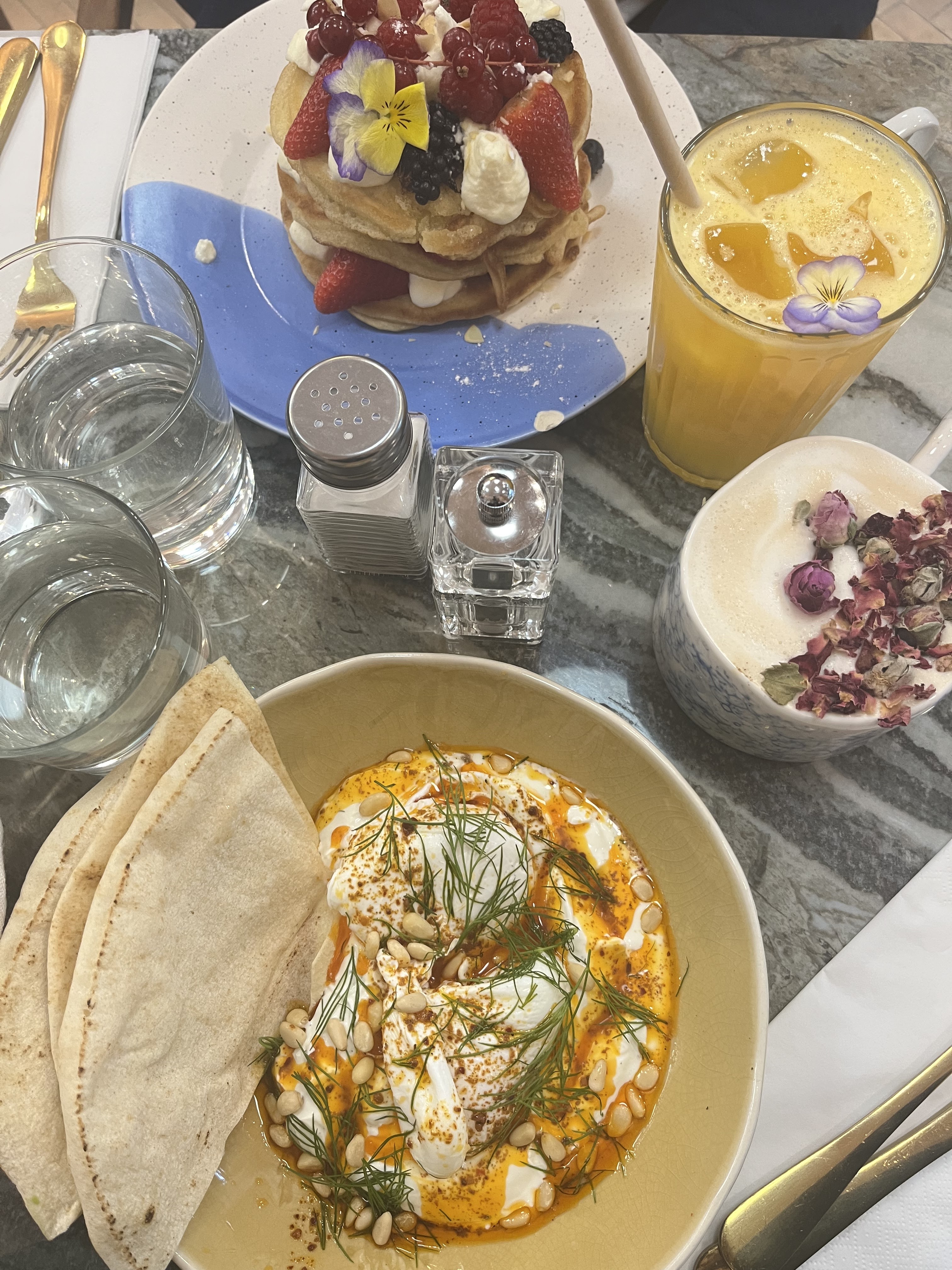 Super expérience. Le restaurant est super beau et accueillant. Les serveuses ont été à l’écoute et rapide. Les plats sont copieux et bien présentés j’ai beaucoup aimé le Turkish eggs tres frais, le pancakes aux fruits rouges avec sirop d’érable tres bon, mon ice café caramel excellent👍 je recommande après cette expérience je reviendrais ✅
