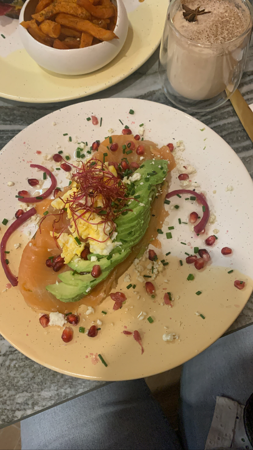On a commandé un Avocado Salmon Toast et French toast et ils étaient très bon. Service très rapide en moins de 5min. La salle n’est pas très grande mais très cosy. Je recommande !!