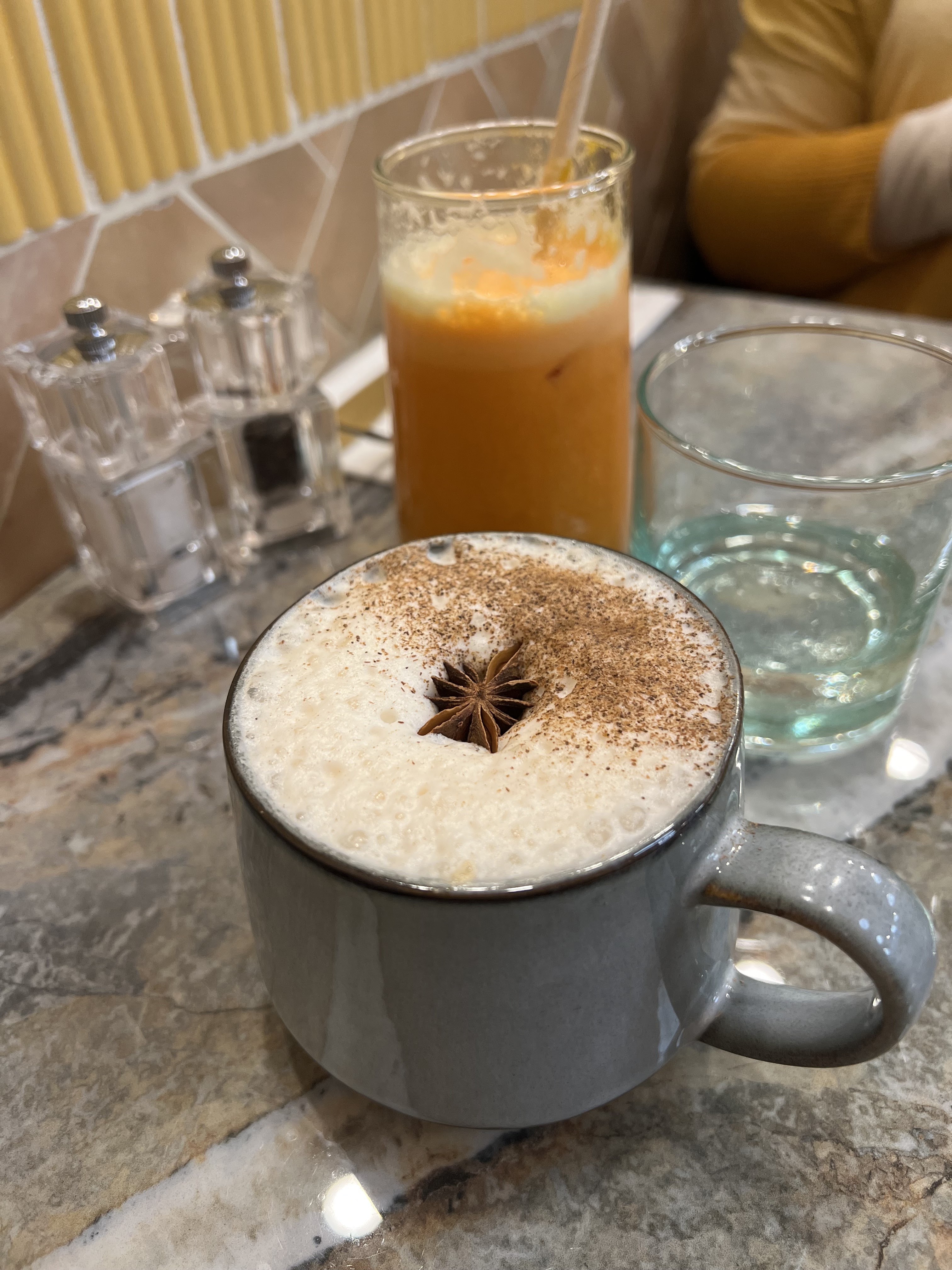Tout était très bon, le service était super rapide et les serveuses sont vraiment très gentilles. L’ambiance du lieu est super cool et calme. Le seul petit bémol est que nous avons commandé le latté glacé caramel, mais le goût du caramel n’était pas trop présent. Tout le reste était super!