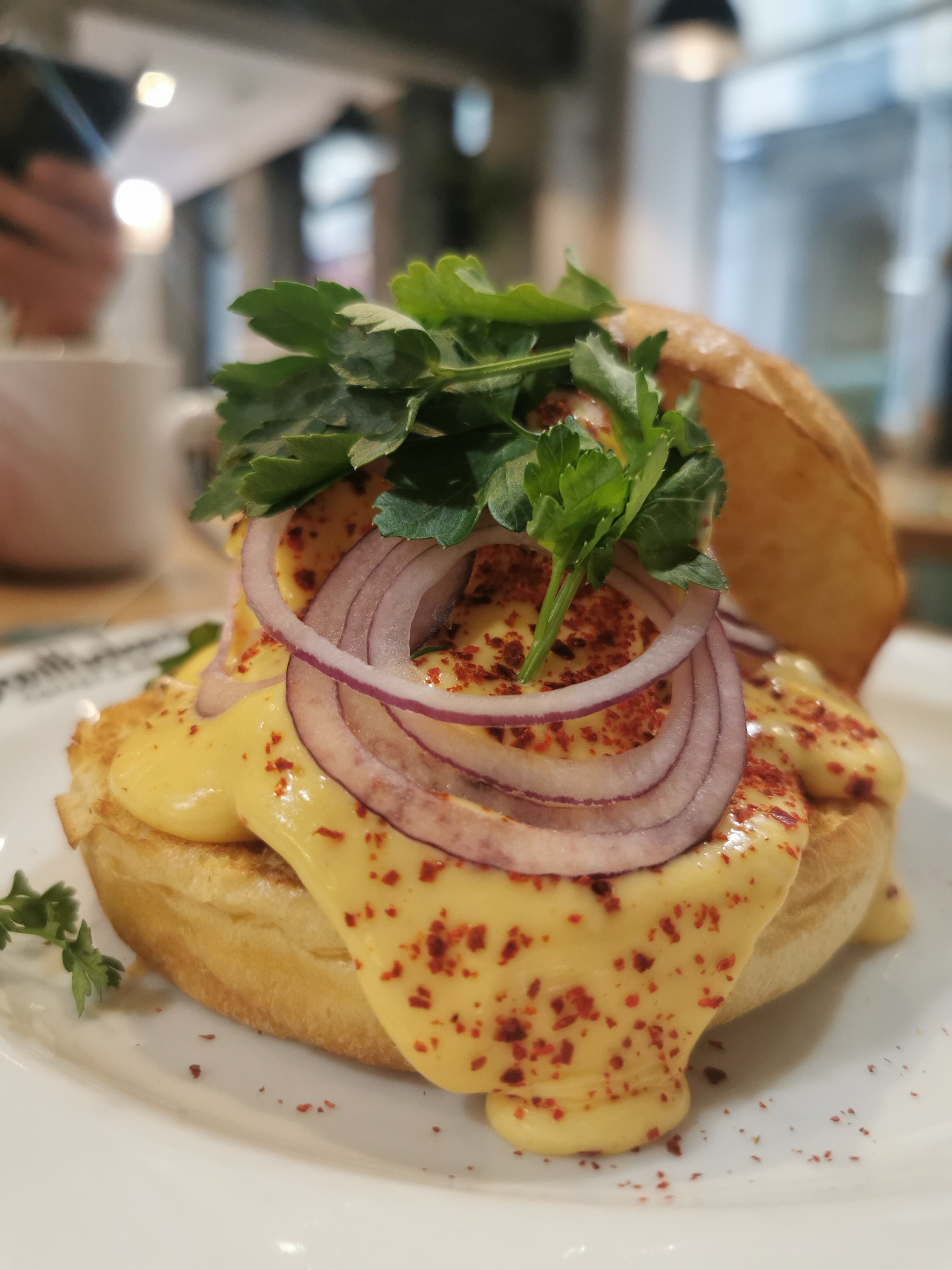 Il ne manque pas grand chose pour un 5/5. Les œufs Bénédicte étaient très beaux et frais, mais un peu fades, la sauce hollandaise n’était pas assaisonnée du tout c’est dommage. Le granola était très bon avec des fruits de saison et un granola bien gourmand. Autre point négatif qui gâche tout : il faisait très froid 🥶. On n’a pas envie de prendre notre temps pour déguster les plats (serait-ce une stratégie commerciale ? 🤔😉).