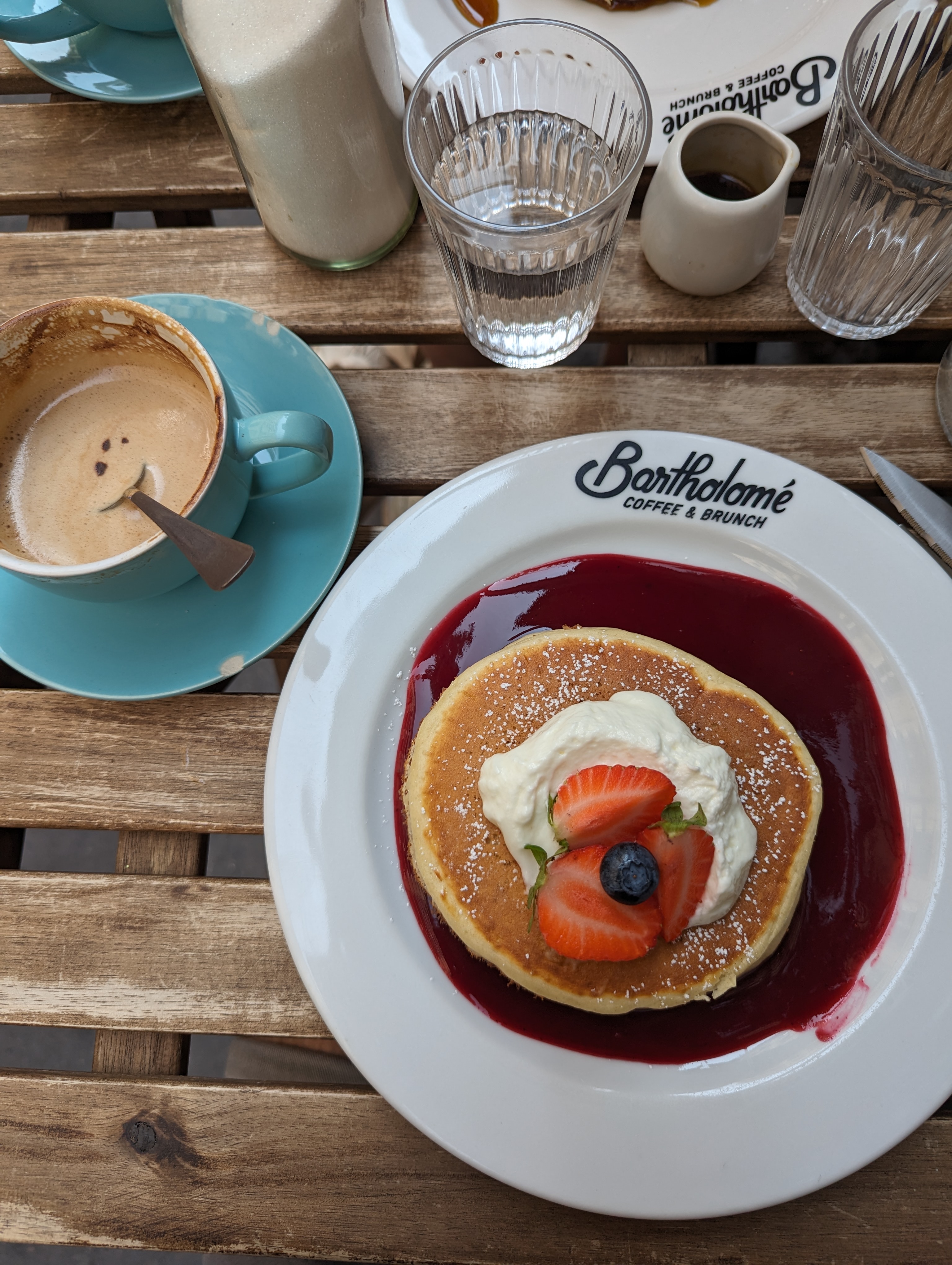Le meilleur brunch que j’ai pu faire, à un prix très intéressant. Tout était délicieux : du fromage blanc aux fruits secs, à la gaufre avocat bacon et œuf poché, en terminant avec les incroyables pancakes au sirop d’érable. Enfin, le jus de fruit pressé était également très bon. Seul point faible, le lieu est très petit, nous sommes un peu à l’étroit : avec autant de monde et une carte aussi bonne, n’hésitez pas une seconde : agrandissez le Bartholomé 😁