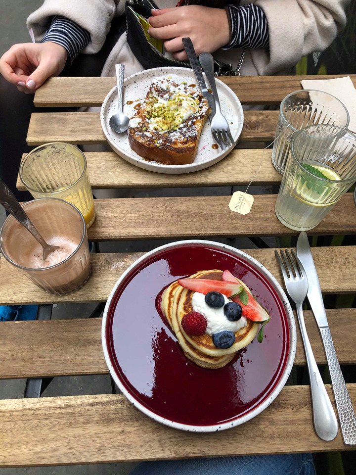 Excellent brunch. Nous avons eu la chance de le réserver à l’avance☺️si non Il y a beaucoup de gens qui viennent pour le dimanche pour l’ouverture. Le service est sympathique, agréable et charmant et très rapide.👍 Pancakes et œufs Bénédicte au saumon très délicieux. Les portions sont assez grandes.