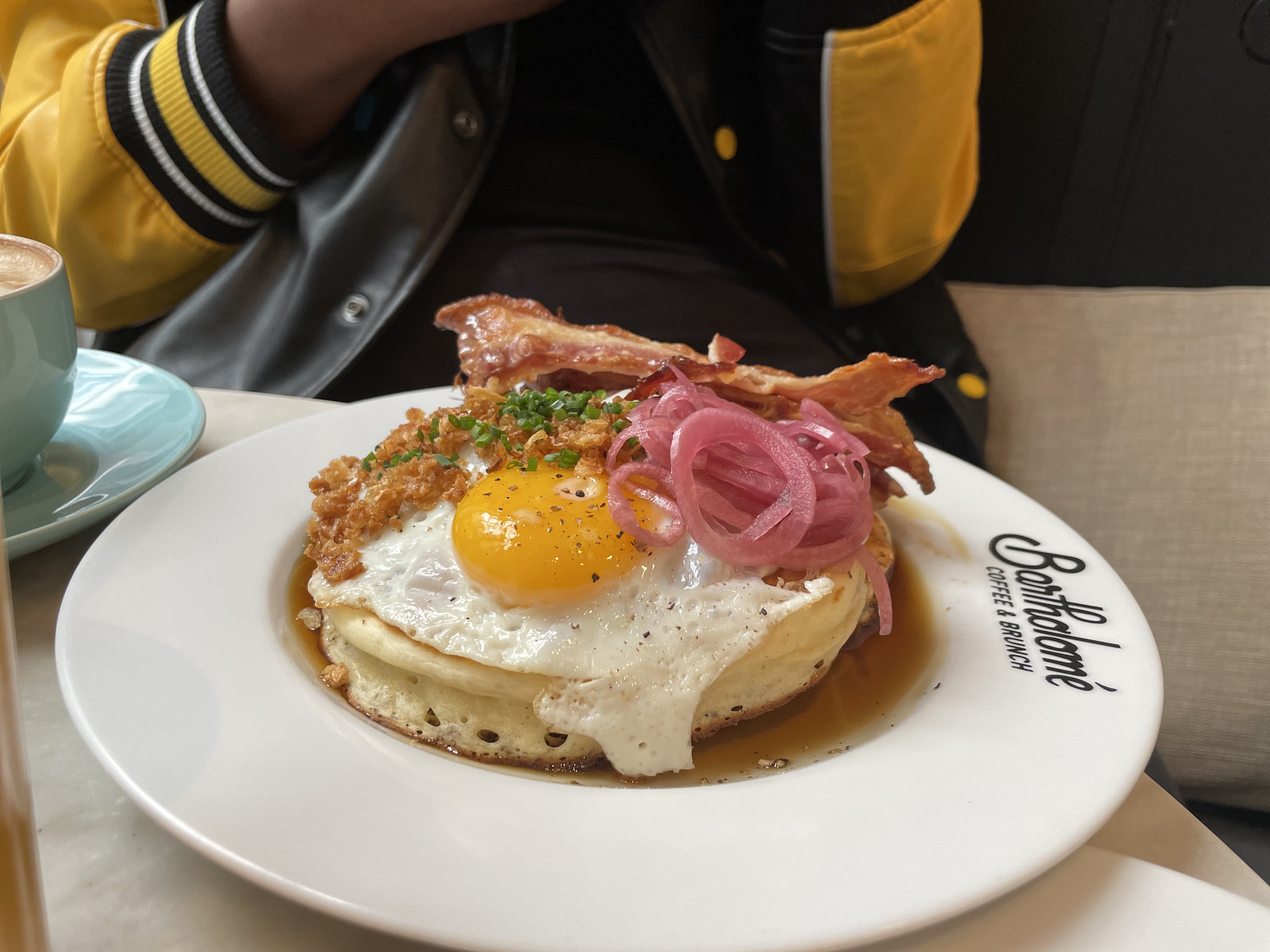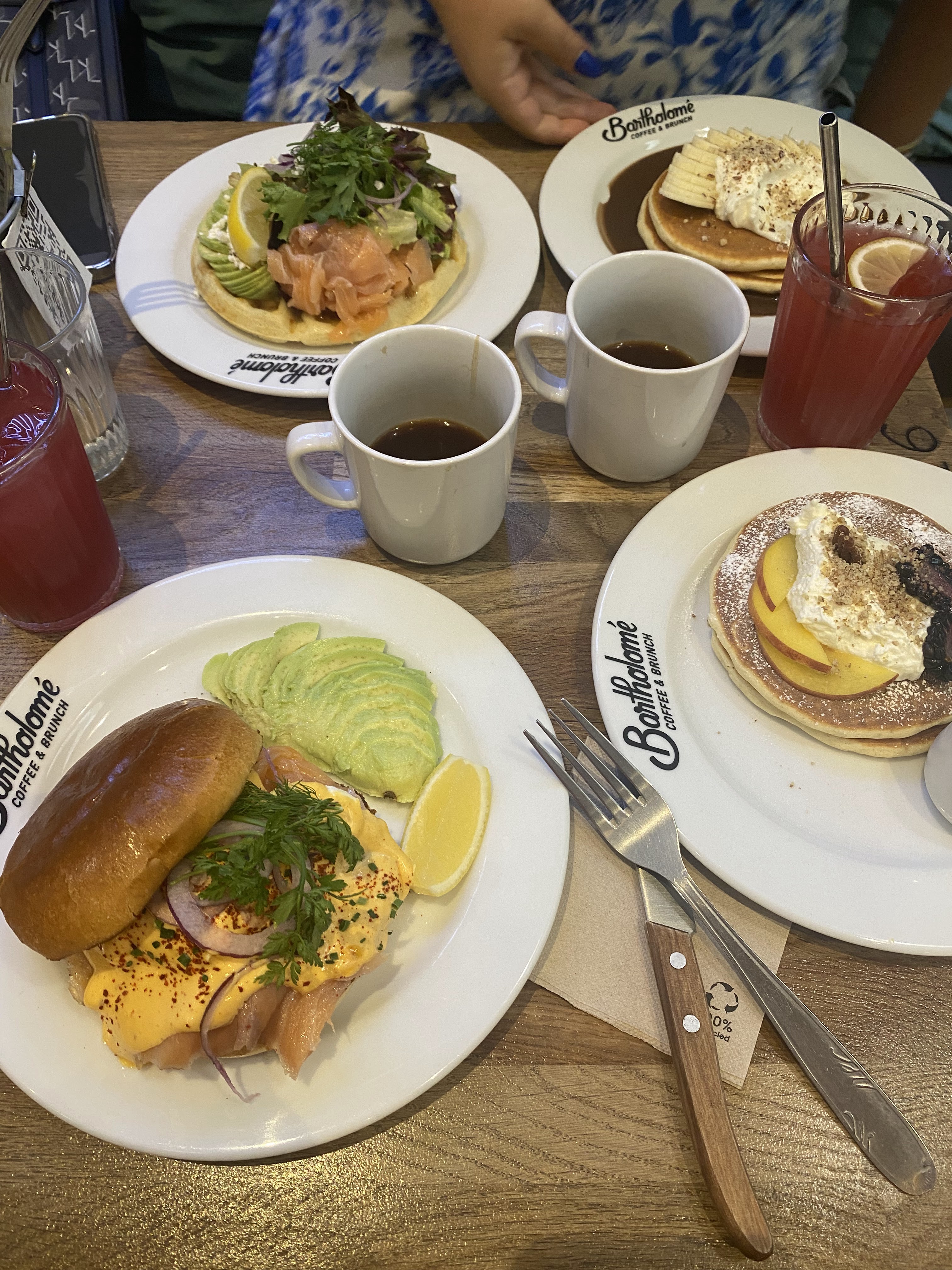 Agréable passage au Bartholomé Lyon pour un brunch en couple. Les pancakes et l'œuf bénédictine étaient bons, mais pas exceptionnels. J'ai apprécié le cadre joli et les serveurs attentifs, mais je trouve le prix un peu élevé. En somme, cela semble être un bon choix pour un brunch entre amis.