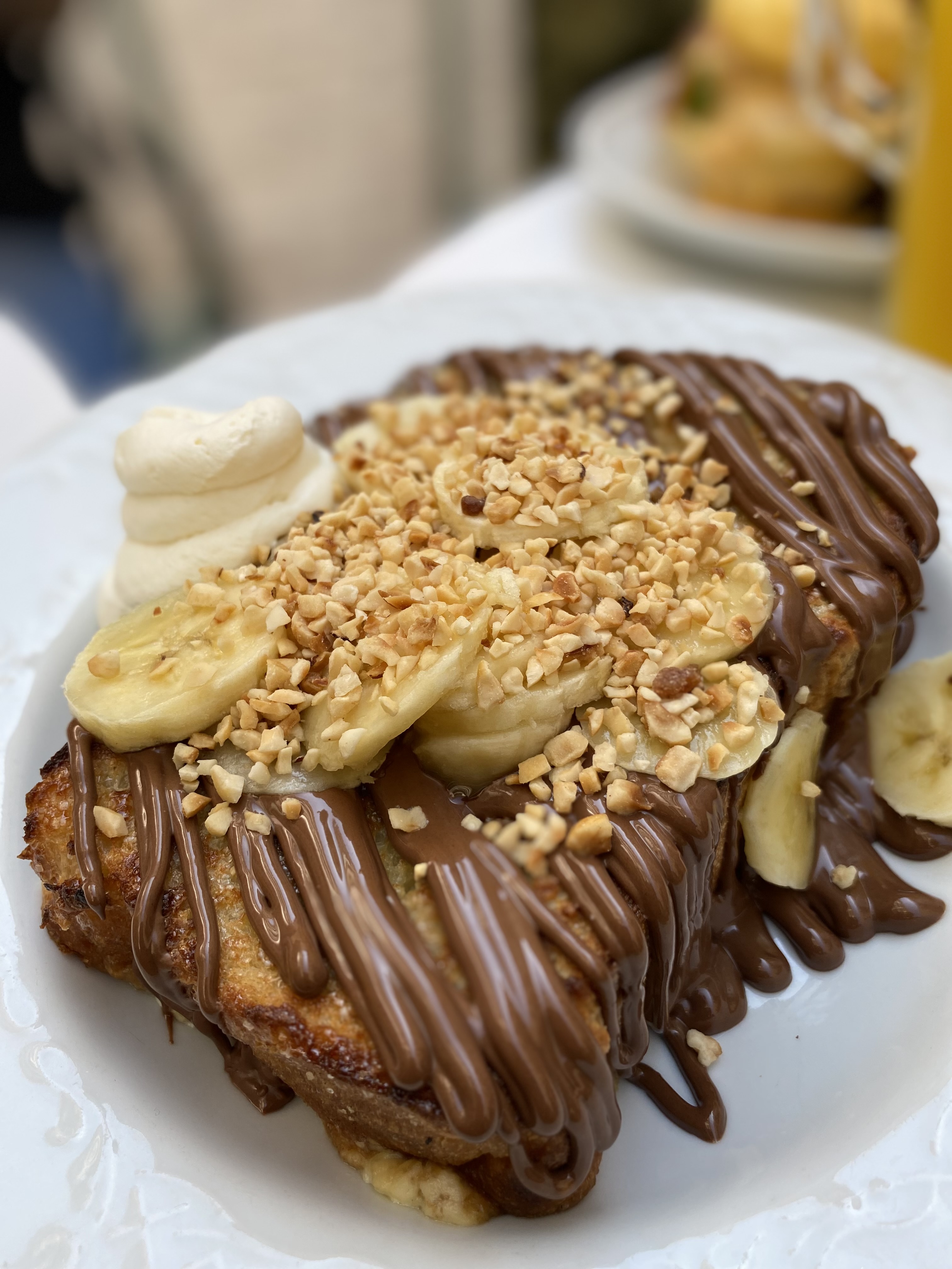 Jolie découverte, bel endroit pour un bon brunch. Assiette savoureuse : le Peach toast est vraiment délicieux et bien assaisonné, le banana bread est moelleux à souhait et les pancakes sont biens fluffy. Bon rapport qualité prix. Le personnel est bien sympathique. Je recommande 👍