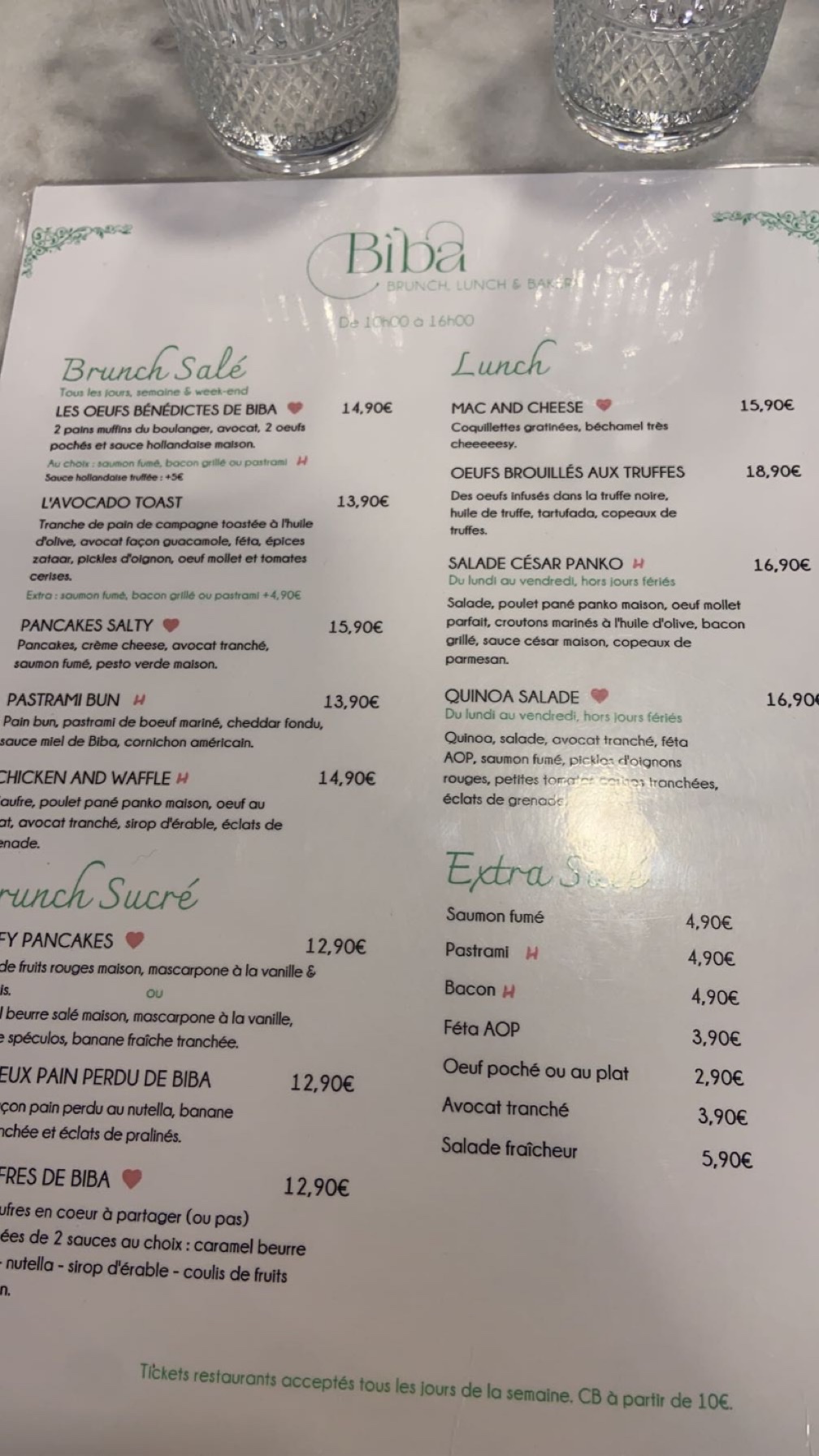 C’est la deuxième fois que nous venons bruncher au Biba et c’est toujours un plaisir. L’accueil est chaleureux, la nourriture généreuse et goûteuse. Quant aux prix ils sont raisonnables. Bon rapport qualité/prix. Je recommande !