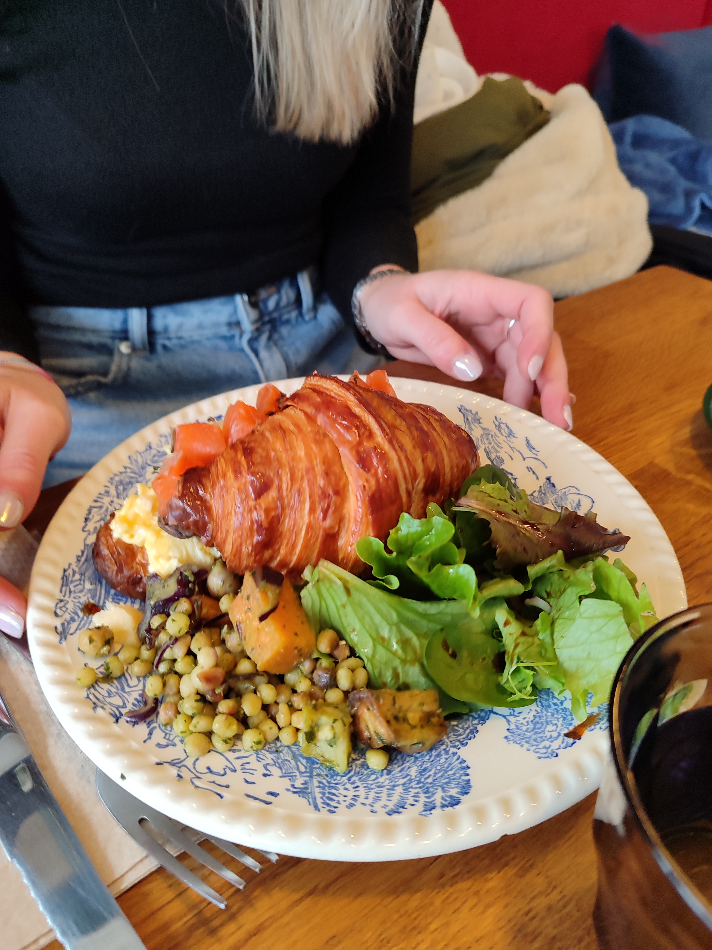 Délicieux brunch à l'anglaise avec ééénormément de choix végétariens, du salé et du sucré délicieux dans tous les cas... ça donne envie de revenir pour goûter tout le reste !! Les boissons chaudes aussi sont très originales.