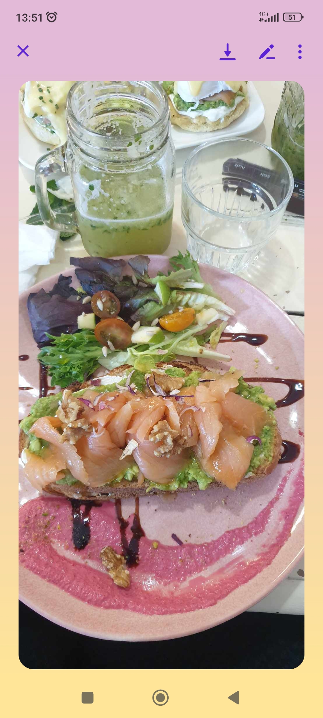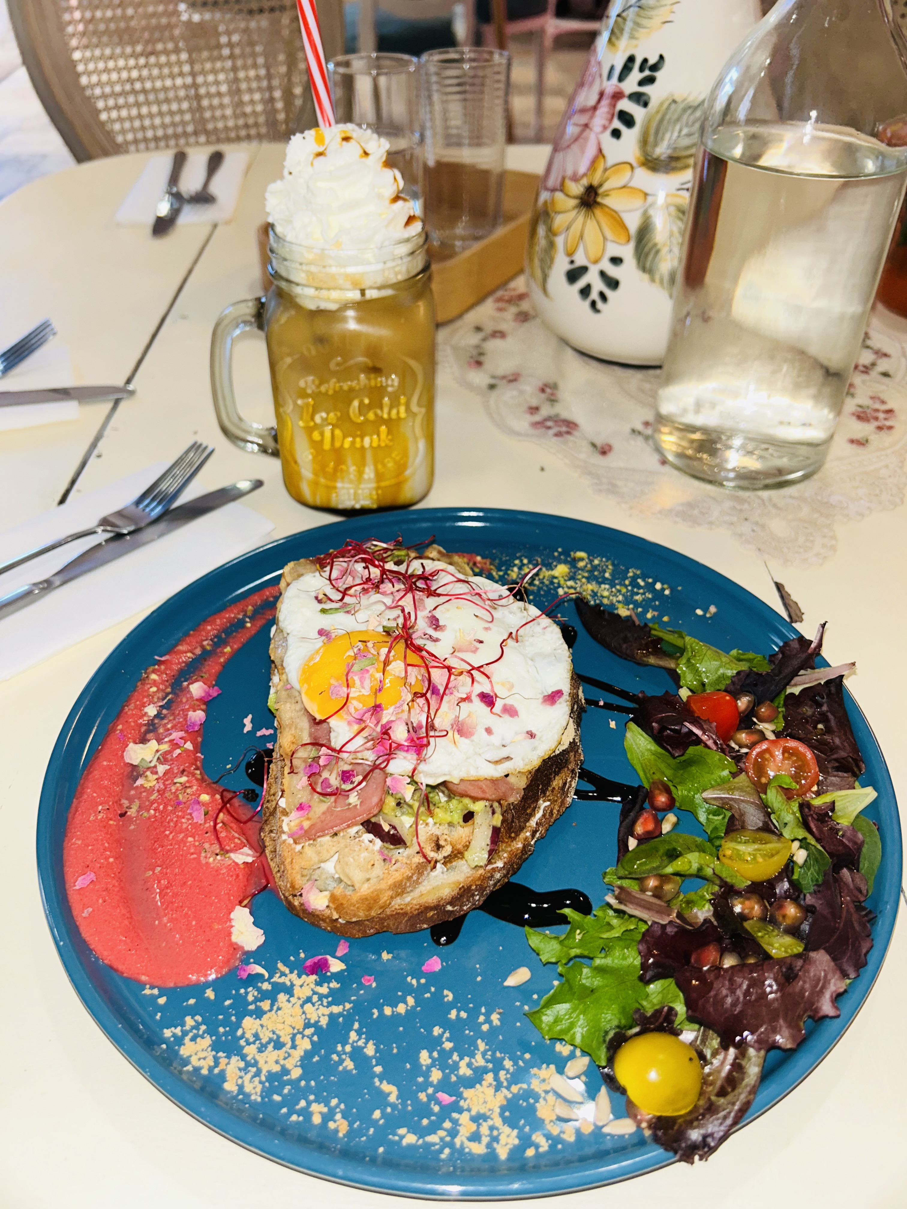 Ouah! Nourriture, présentation et goût incroyables! Nous avons oublié de prendre des photos de nos toasts shakshuka et avocat mais le muesli et le café étaient tout aussi incroyables ! Je reviendrai certainement quand nous serons en ville ❤️ Nous nous sommes assis dehors mais la décoration à l'intérieur est magnifique !