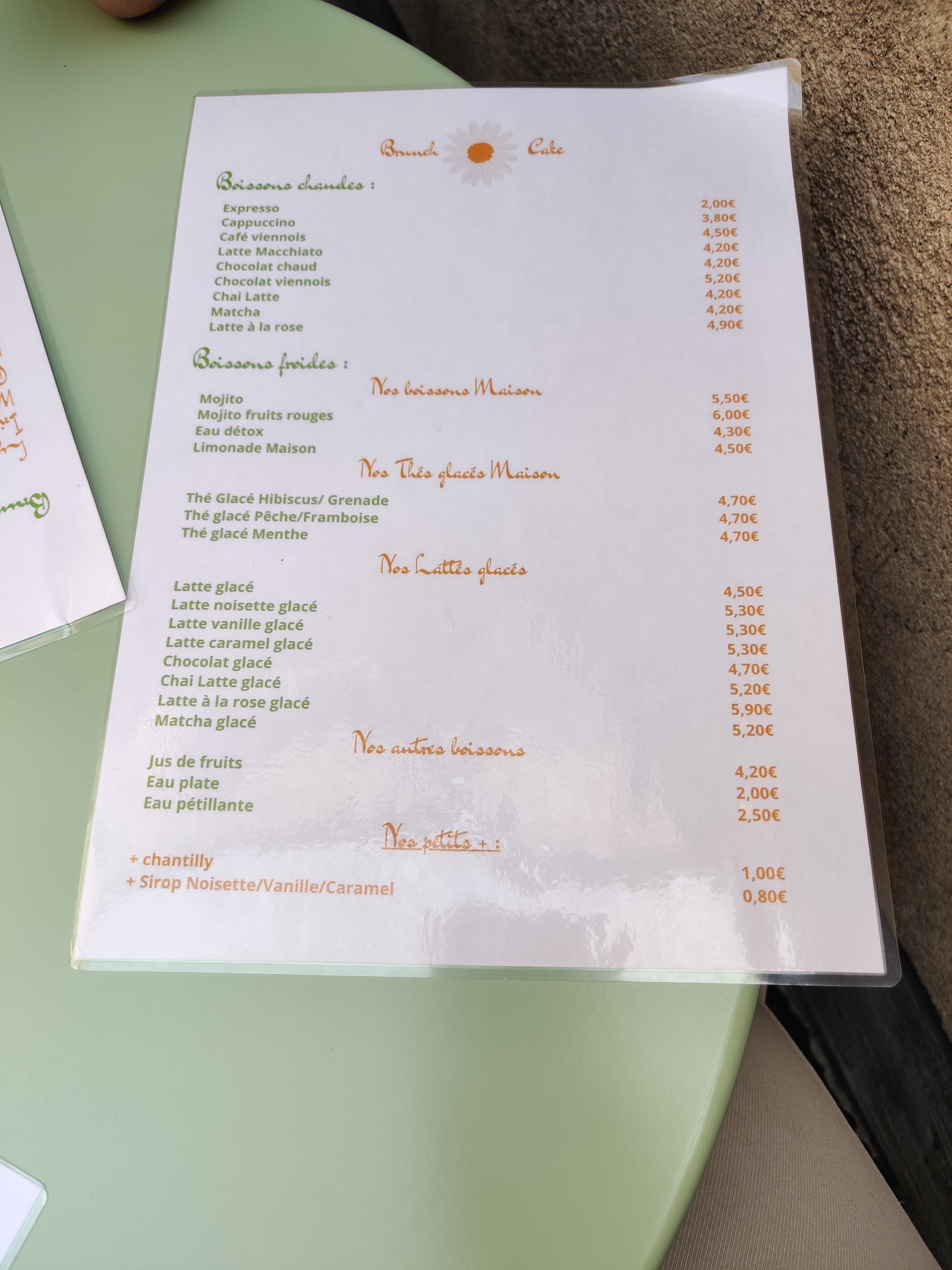 J'y suis aller avec mes copines ce dimanche c'était absolument excellent ! Les mélanges sont très bon (j'ai pris le croissant avec pommes, mozarrela, bœuf seché) c'était vraiment délicieux, pareille pour la brioche perdu ! Les boissons aussi sont excellente, la terrasse est très bien quand il fait beau et les serveuses sont super sympa ! Je vous le conseille à 100% on a déjà prévue de revenir :)