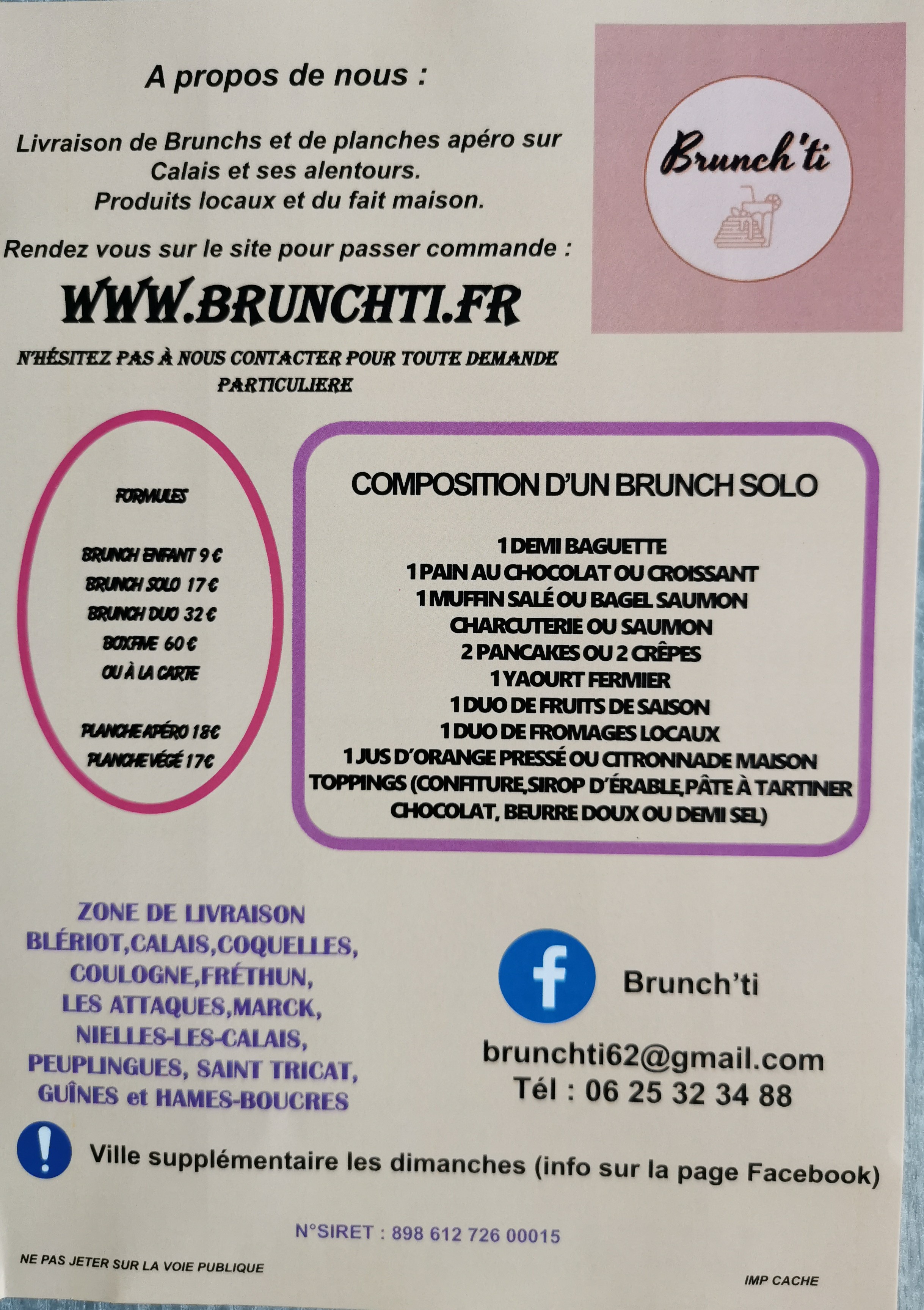 Voici toutes les informations sur le Restaurant brunch Brunch'ti qui ce trouve au A domicile, & ENVIRONS FR, 62100 Calais (62). Sur cette fiche vous trouverez les photos, l'adresse, les horaires d'ouverture, le numero de téléphone et les avis clients.Vous pouvez églement rédiger un avis si vous le souhaitez en bas de page.