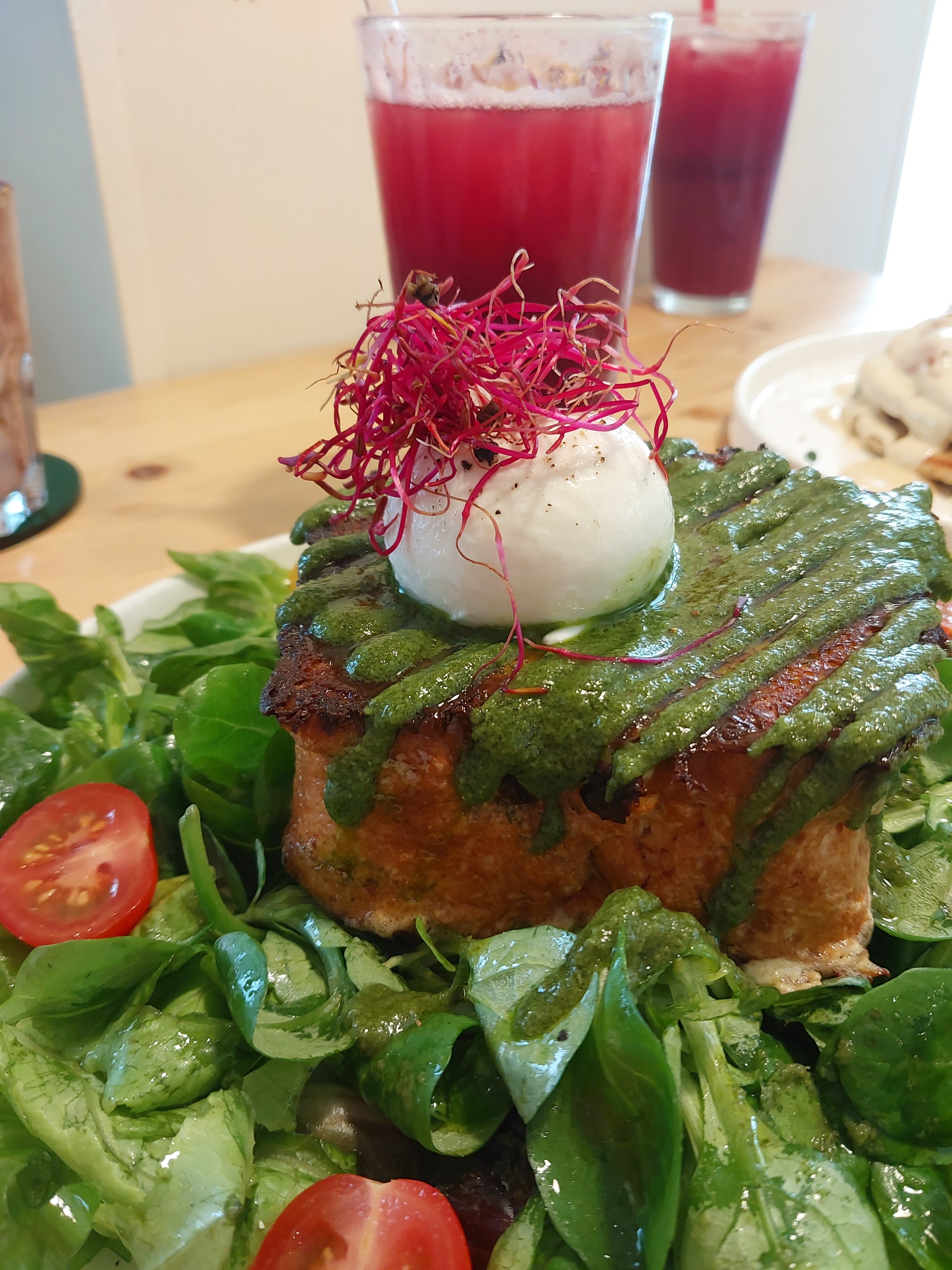 Le lieu m’a parût tout de suite très familial, très amical comme un petit jardin où l’on réunit ses proches. Les serveuses sont très souriantes, agréables. J’ai pris une formule week-end ; Boisson chaude, jus maison (citronnade pour moi), l’avocat farci et le granola 29,50€ J’ai trouvé le prix correct. Tout était très bon frais plein de saveurs j’ai apprécié, je n’étais pas trop sûr pour le granola avec le beurre de cacahuète mais j’ai beaucoup aimé, j’ai mangé pour la première fois un avocat cuit, je pense que je le préfère sans cuisson. Dans l’ensemble tout était bien la qualité du service, les prix et le lieu. J’ai quand même un point négatif j’ai trouvé le temps d’attente des plats un peu lent sinon le reste TOP !