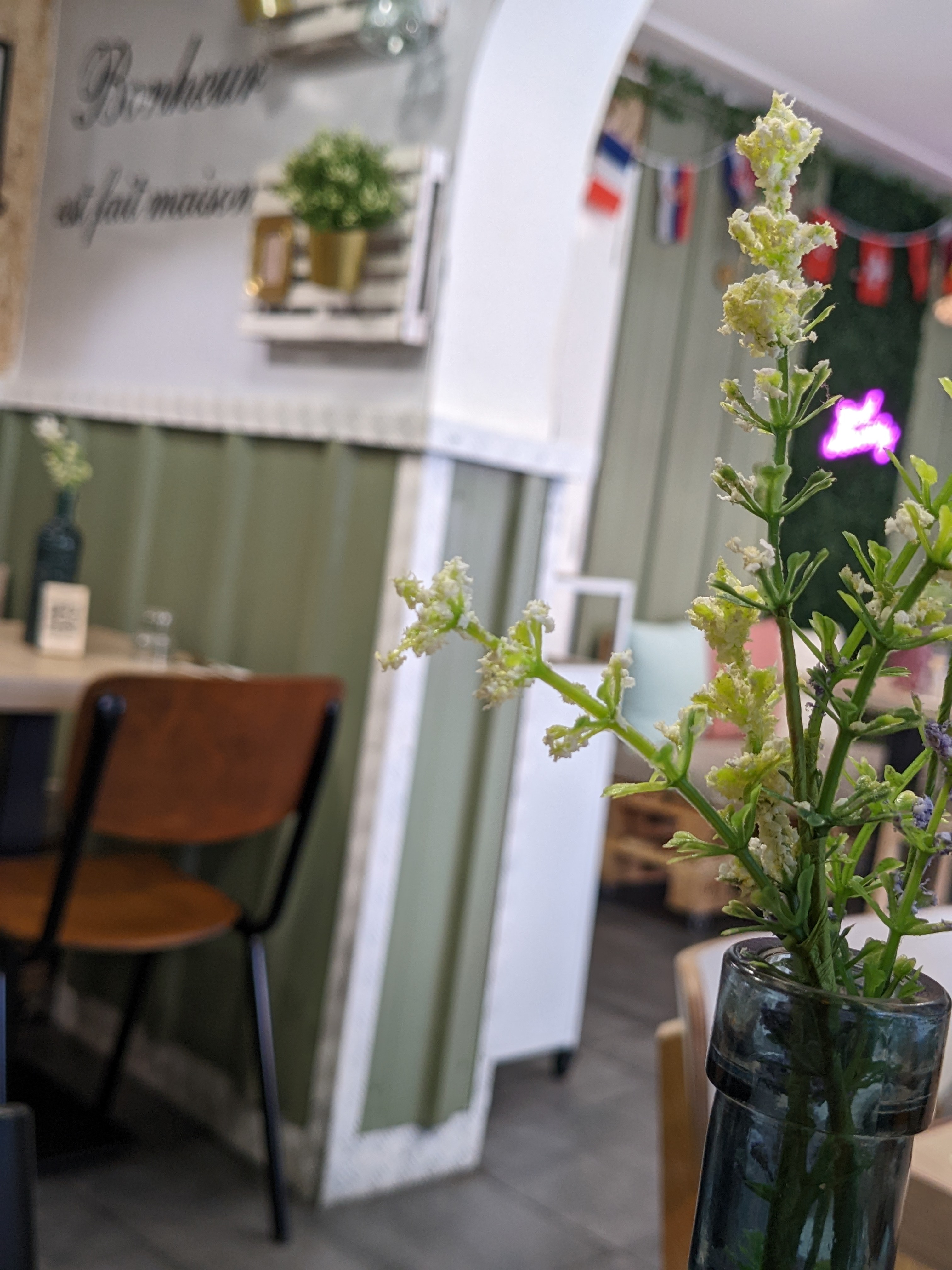 Accueil souriant et très agréable de la part des deux sœurs qui gèrent le lieu.Belle décoration champêtre qui change de ce qu'on a trop l'habitude de voir.Les menus pour le brunch sont excellents.Nous avons bu un delicieux thé à la menthe(fraîchement reçue du Maroc)! La brioche perdue à la pistache est un incontournable à goûter.Toute occasion est bonne pour y manger petit-déjeuner,brunch,collation... A faire et à refaire, je valide !!!