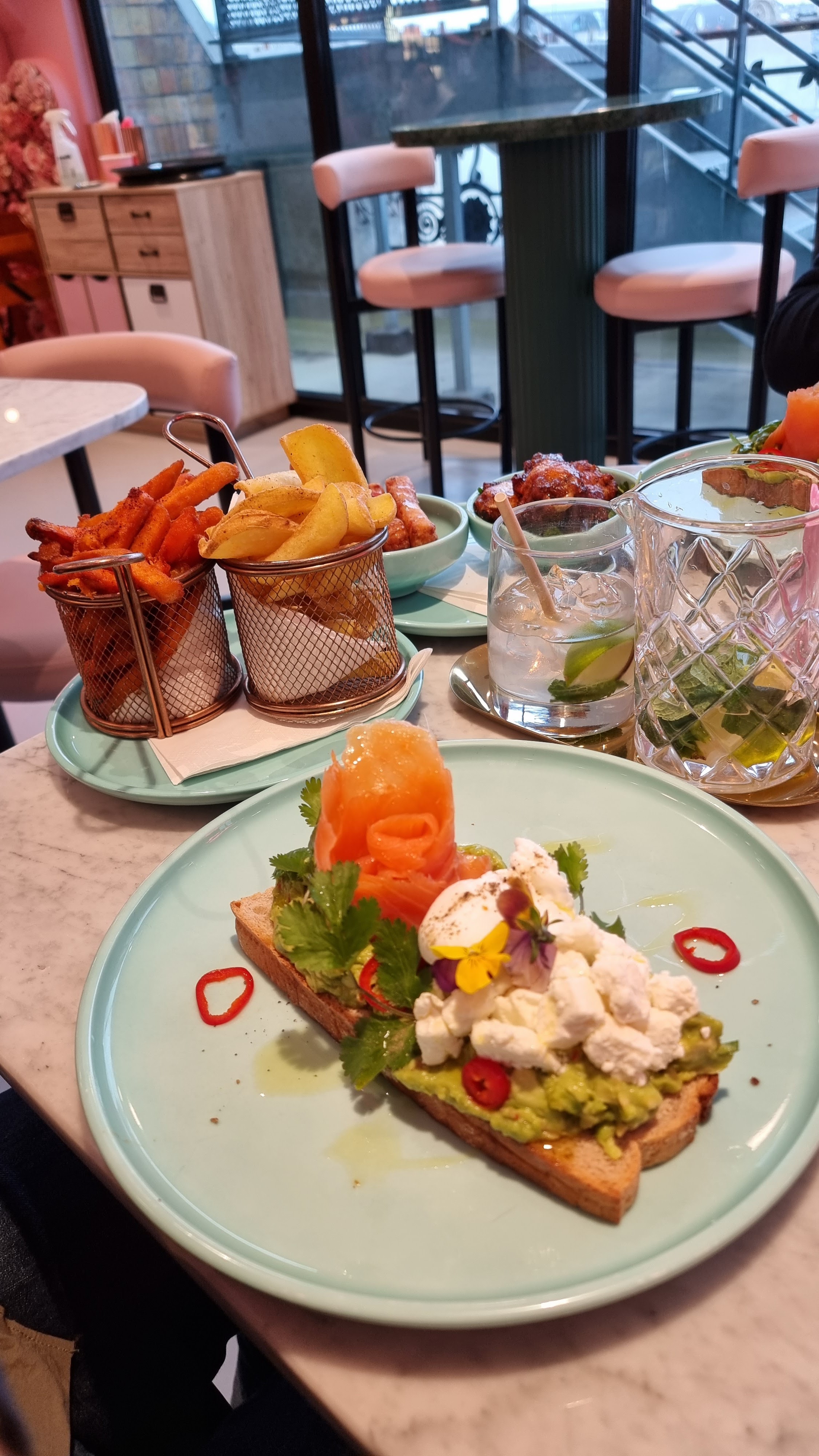 Cadre qui fait rêver et staff au petit soin! Malheureusement en terme de boissons et plats nous n'avons pas été conquises, certes tout reste extrêmement travaillé mais les portions sont petites pour leur prix et en terme de goût c'est très banal, le Mac&cheese n'était même pas gratiné. Mention spéciale tout de même pour les halloumi!