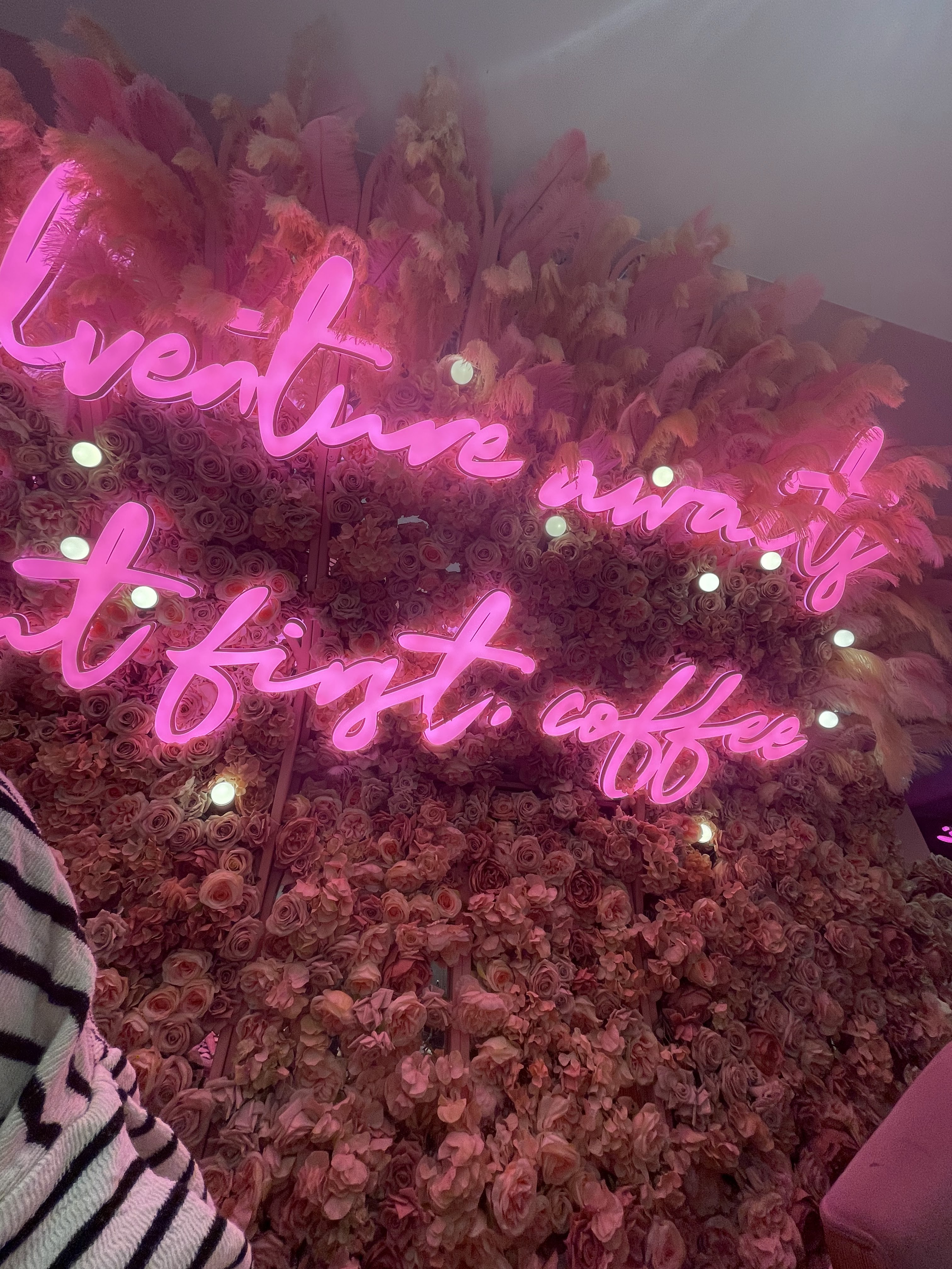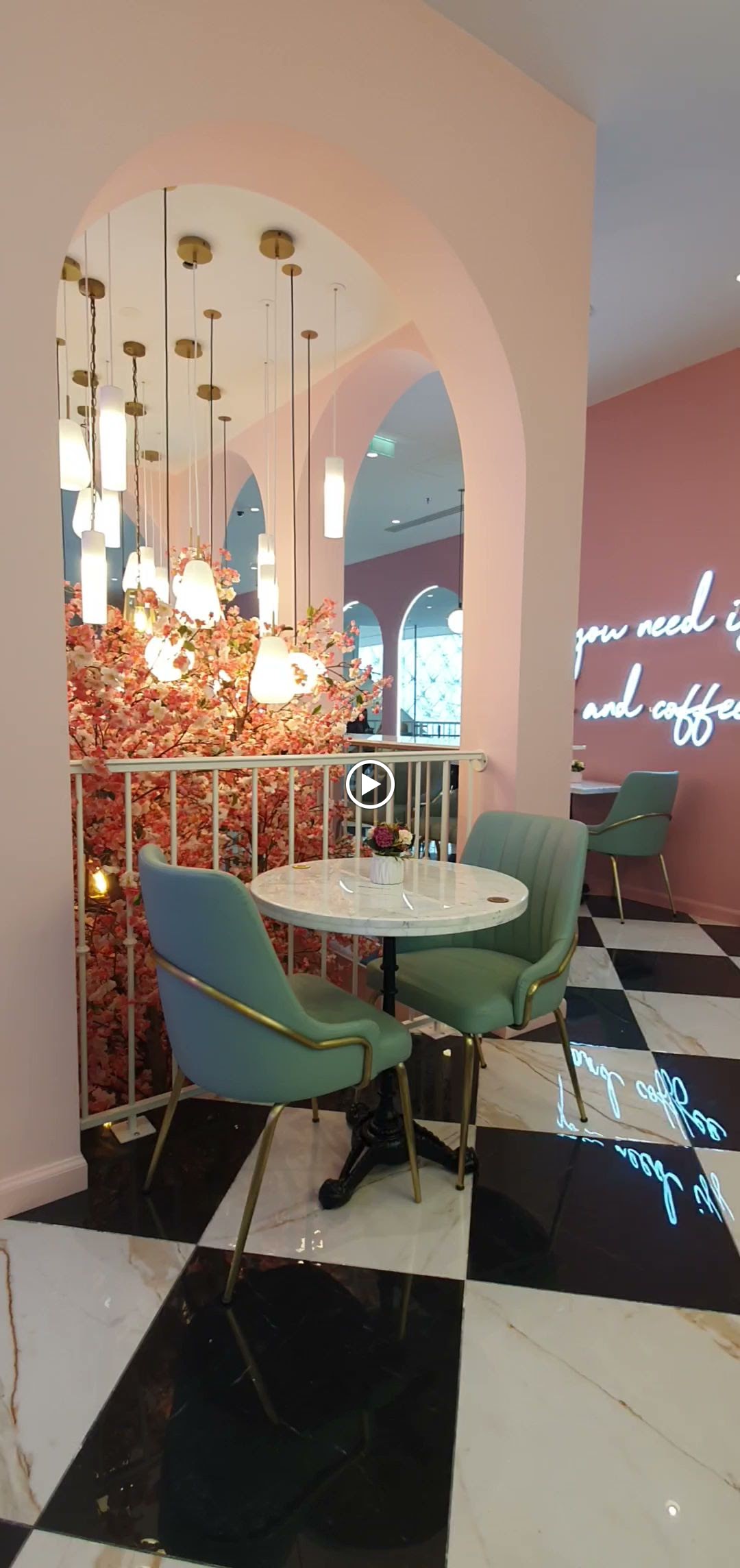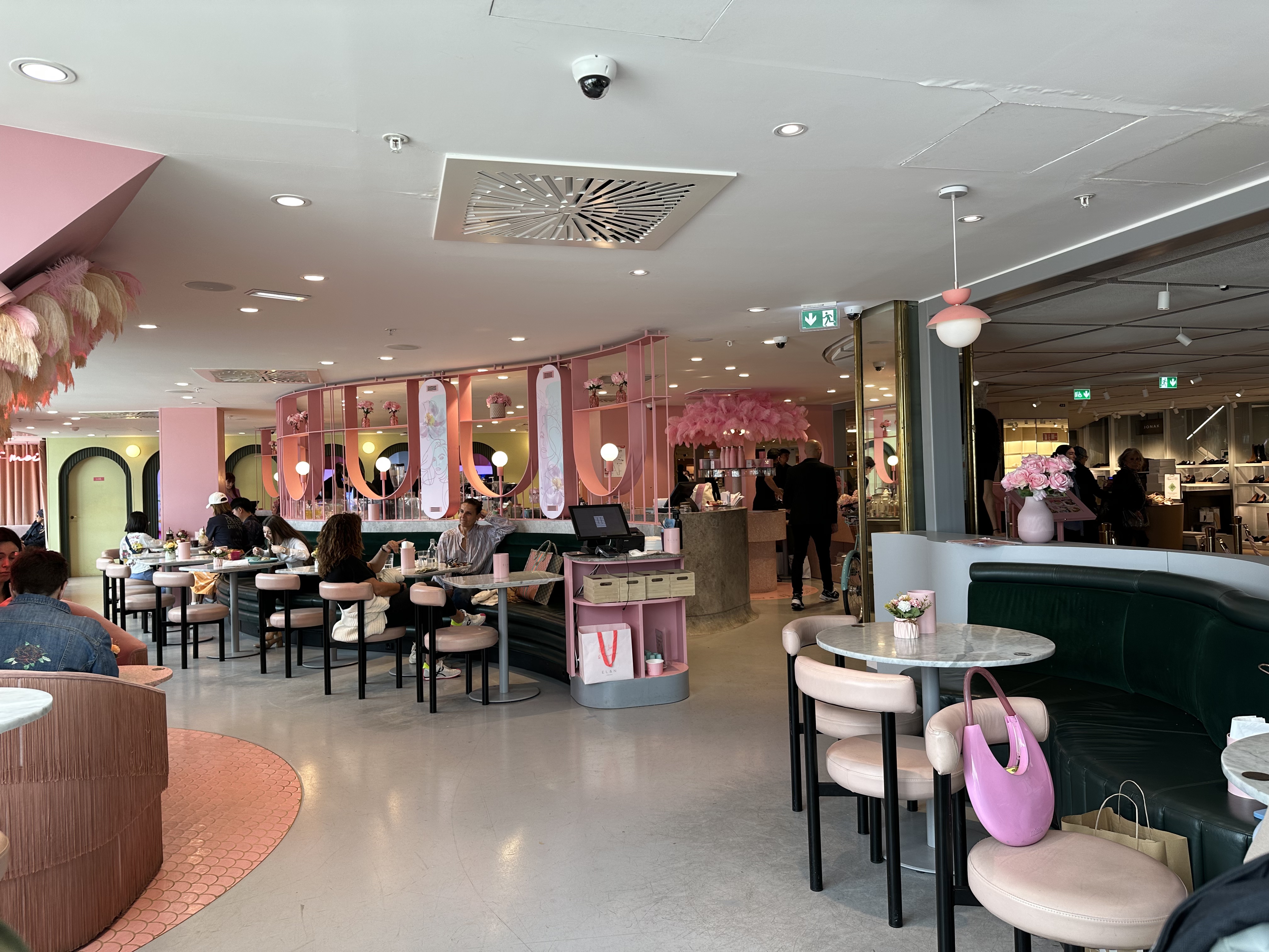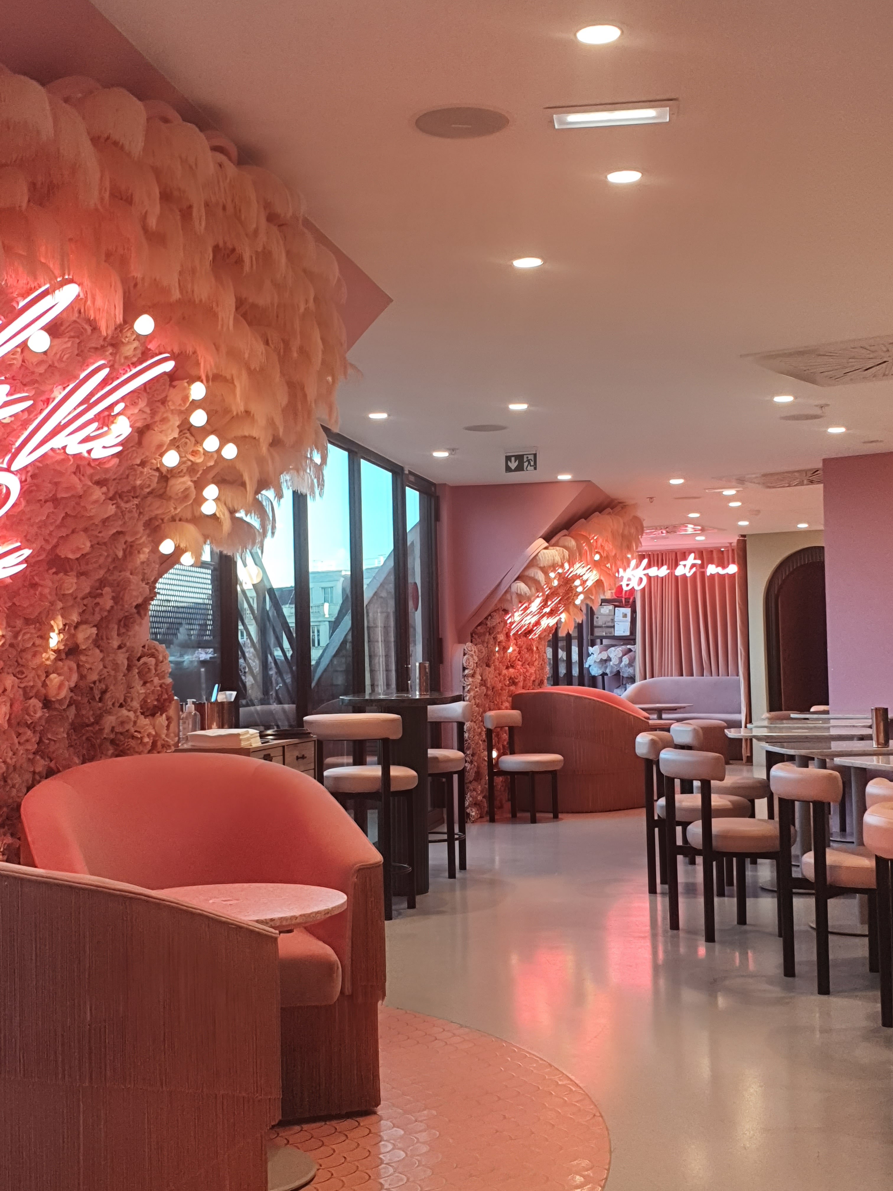 Sympa Jolie déco instagrammable (comme ils le promettent). C'est tout fleur tout néon. L'attente est un peu longue mais quand la salle est à moitié vide d'où l'étoile en moins. La gaufre et la brioche étaient bonnes et surtout joliement décorées. Le restaurant se situe au 4ème étage dans la coupole (côté femme donc) et est indiqué par des panneaux roses aux plafond.