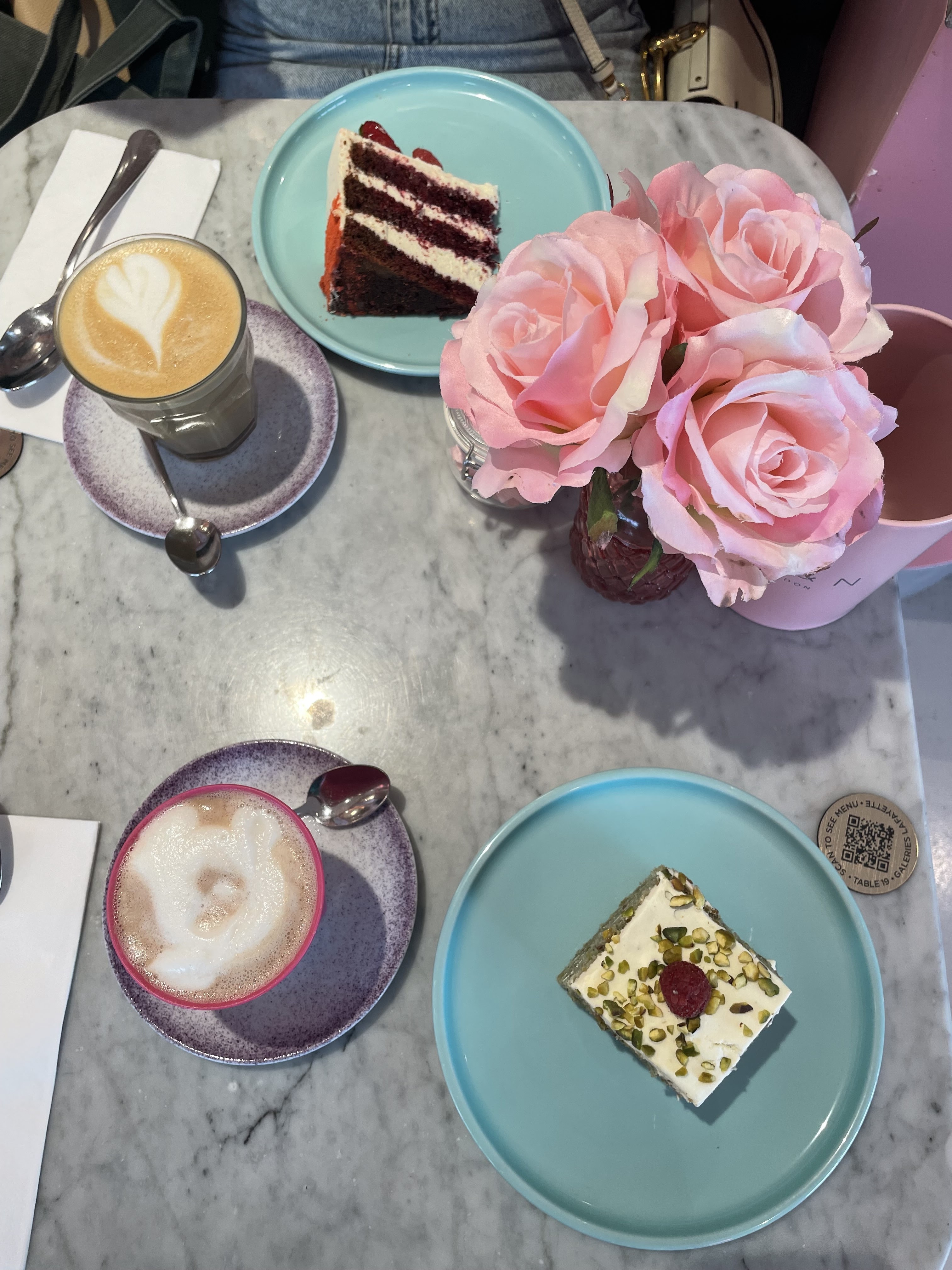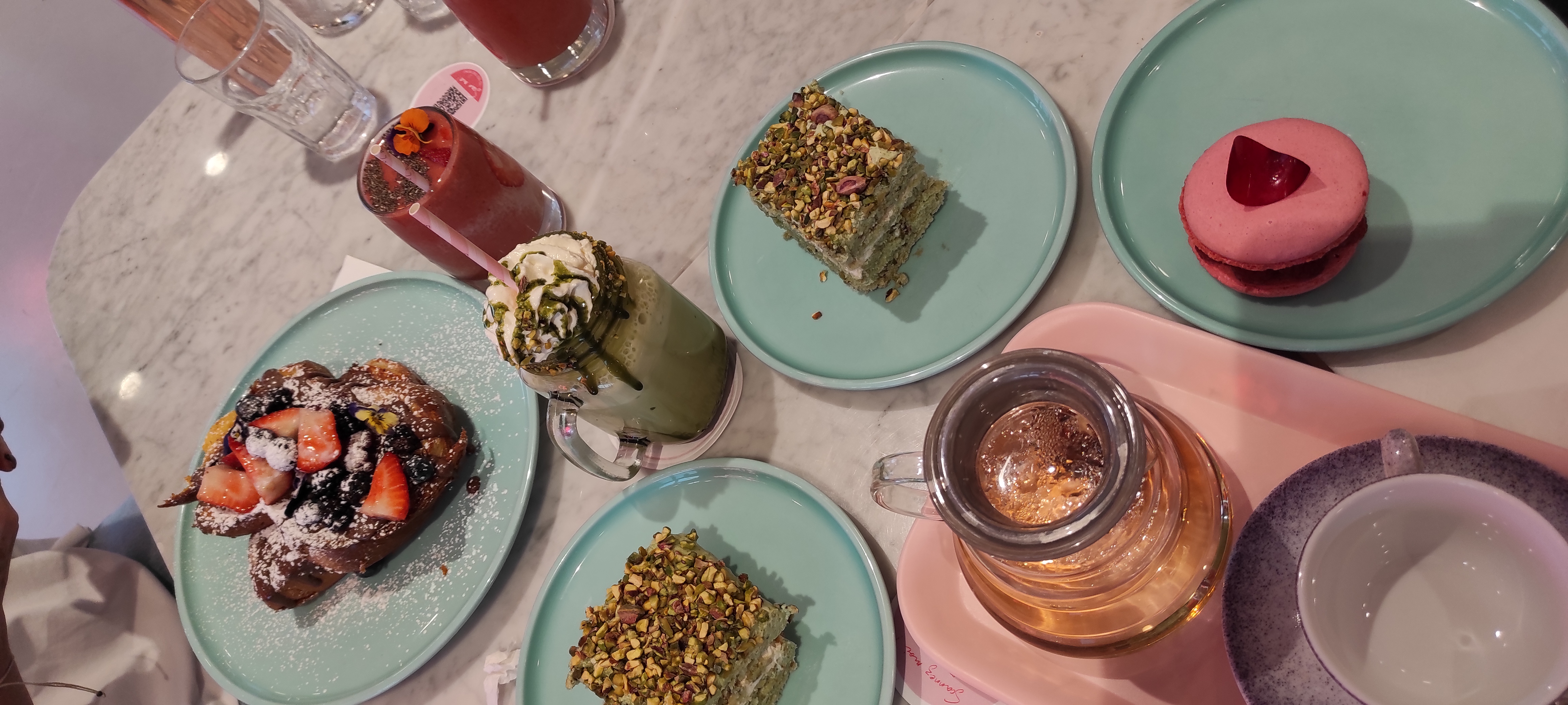 C'est un très bel endroit au 4 ème étage des galeries Lafayette principale. Girly et fashion a la mode London Dubai. C'est aussi très bon du salé au sucré avec du Snacking simple et bien fait. Le must il semblerait c'est le pain perdu qu'il faut manger à 2 ou un gros gros appetit !