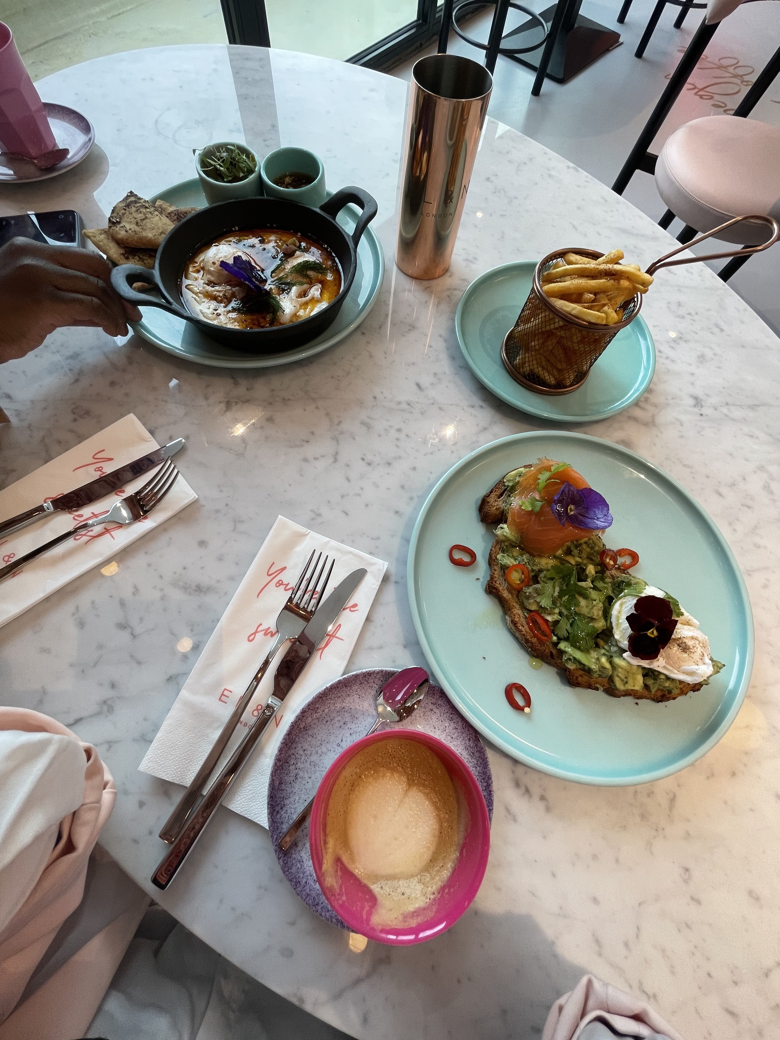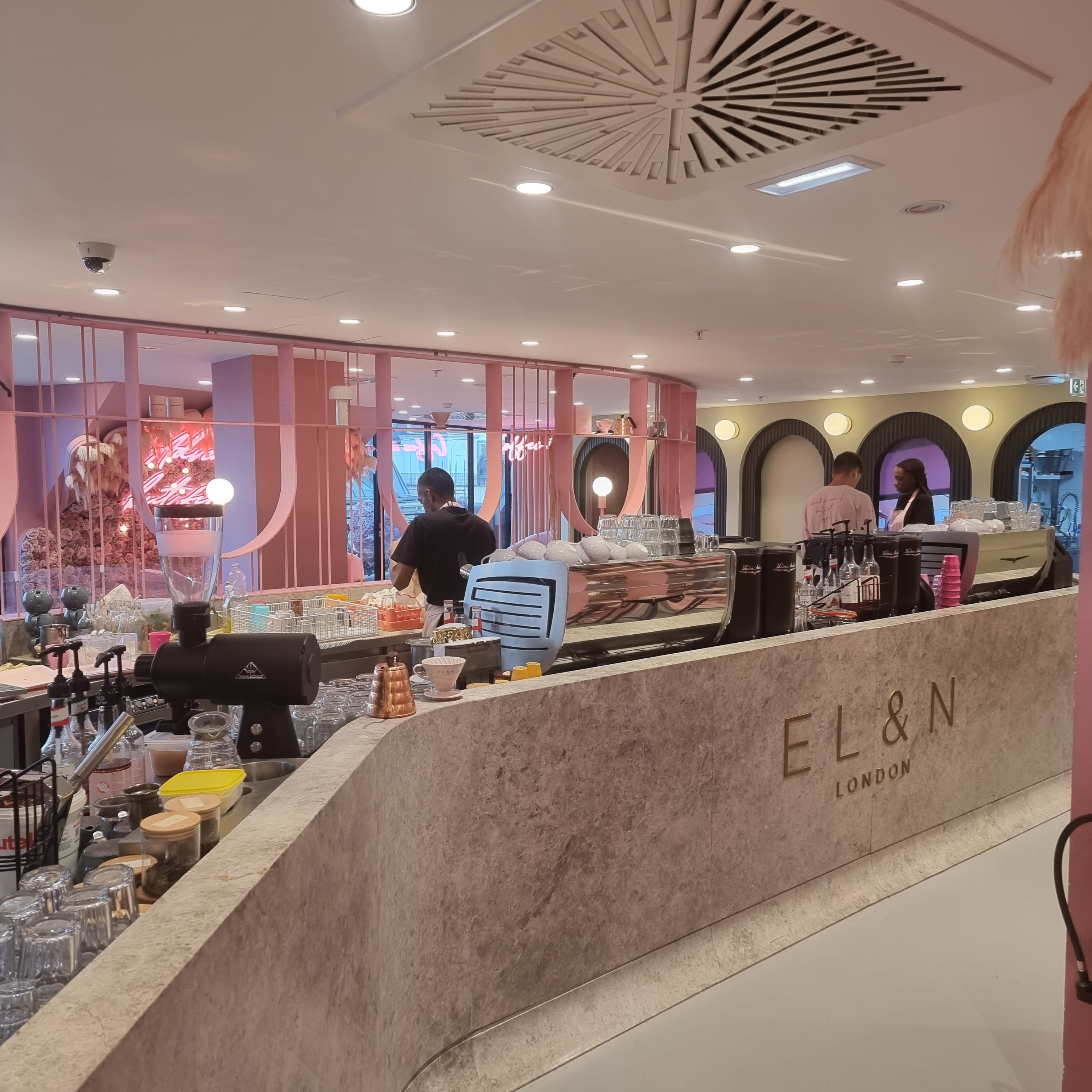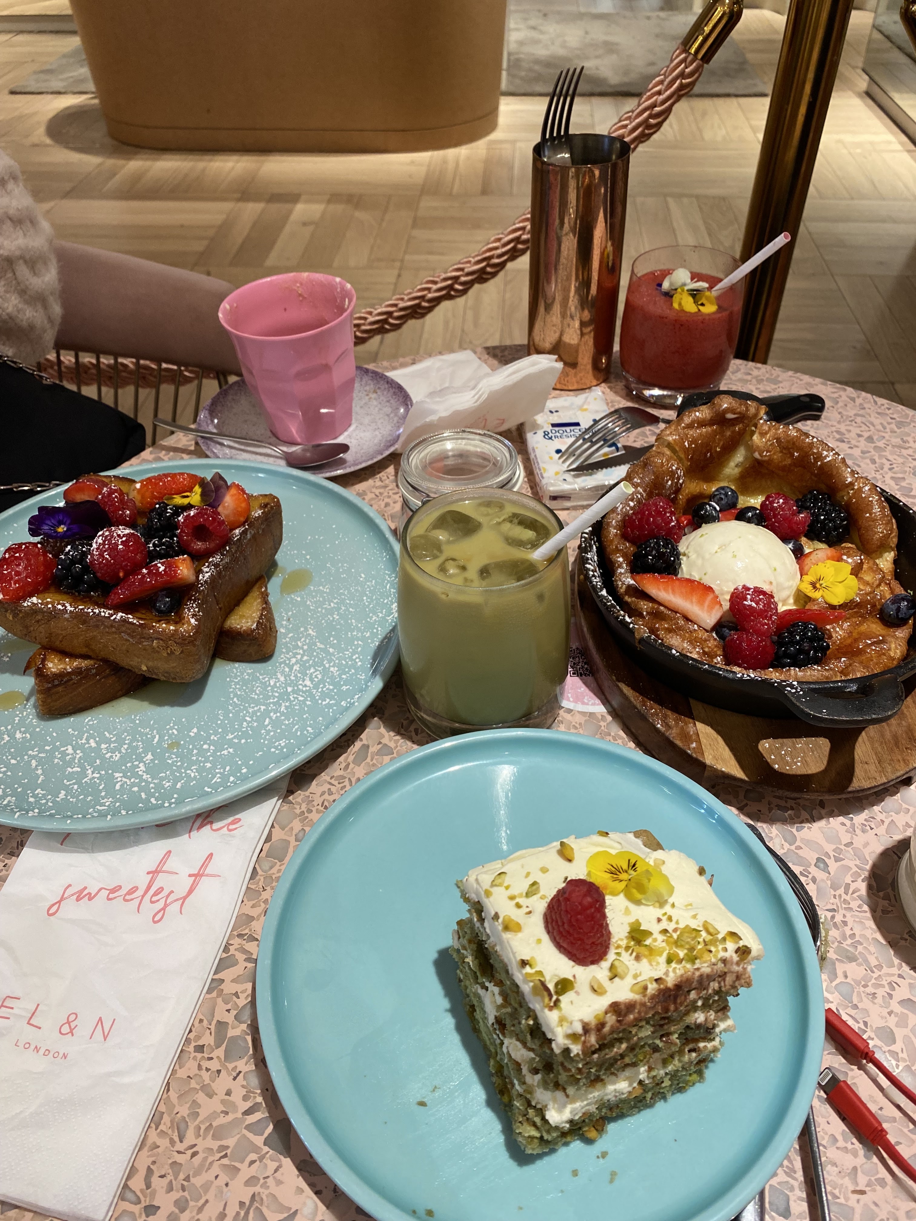 Je suis déjà venue deux fois à cet EL&N au sein des galeries Lafayette. Le cadre est juste magnifique et très instagrammable, à l’image des EL&N de Londres. La première fois le service a été très long et la serveuse s’est trompé sur les dessert. Ce qui a eu pour conséquences que ça été ajouté en plus sur le ticket. Heureusement nous l’avons vu et avons fait rectifier le ticket. La deuxième fois rien à redire sur le service. Nous avions commandé les oeufs Bénédicte, les œufs à la turque, la chakchouka et l’avocat toast tout était délicieux mais une légère déception avec l’avocado toast qui nous paraît vide (il n’y a que du piment, un œuf et des pensées comme garniture. Et étant donné que je n’aime ni le piment ni les fleurs, je n’ai mangé que de l’avocat sur du pain avec un œuf. Les dessert et boissons sont magnifiques et bons mais beaucoup trop sucrés pour le palais français. Ayant déjà été au EL&N de wardour street à Londres, je sais que les anglais adorent les pâtisseries trop sucrées. Nous en France on aime le sucre mais pas autant. Il faudrait donc veiller à réduire le sucre dans les boissons et pâtisseries.