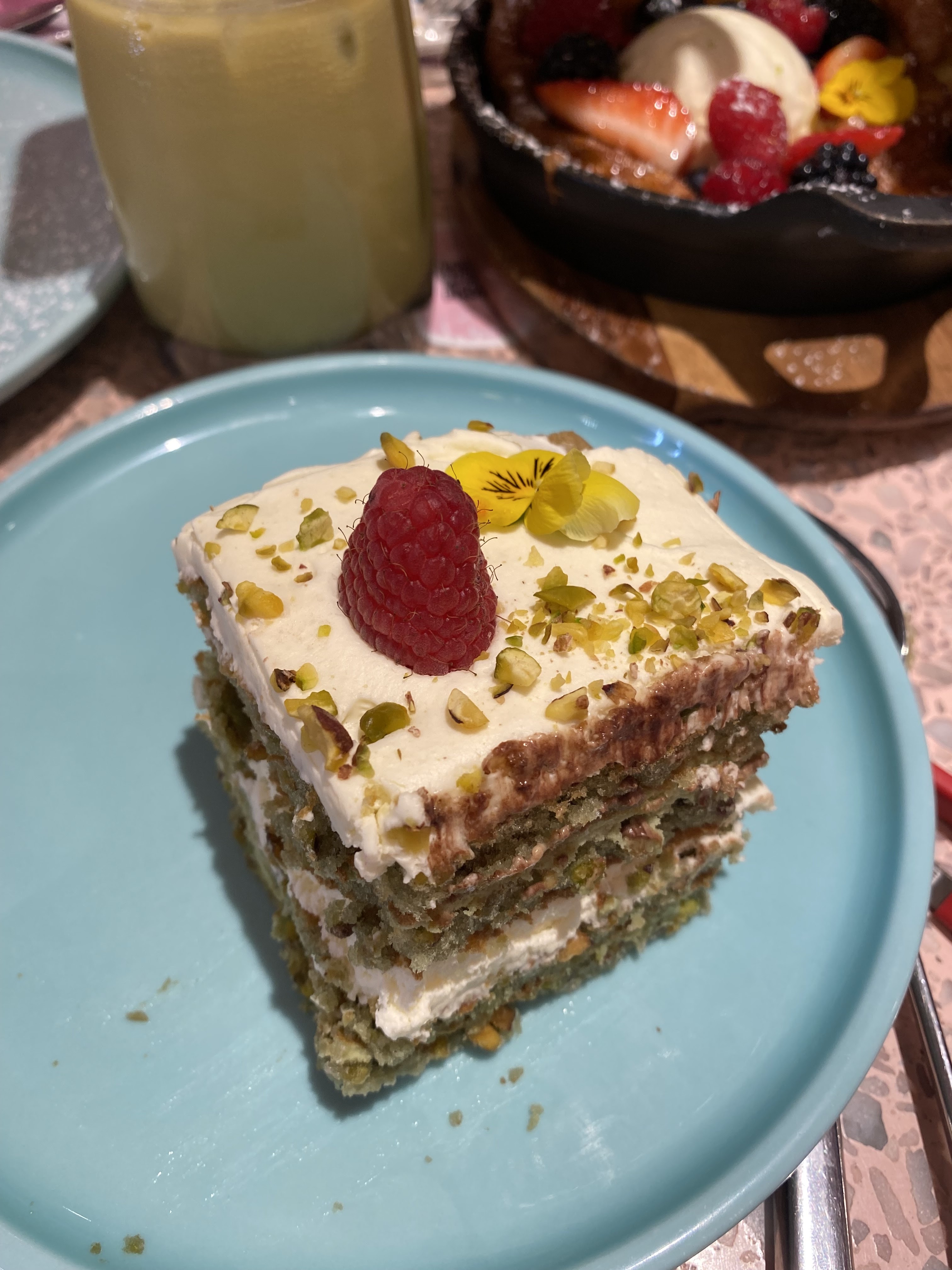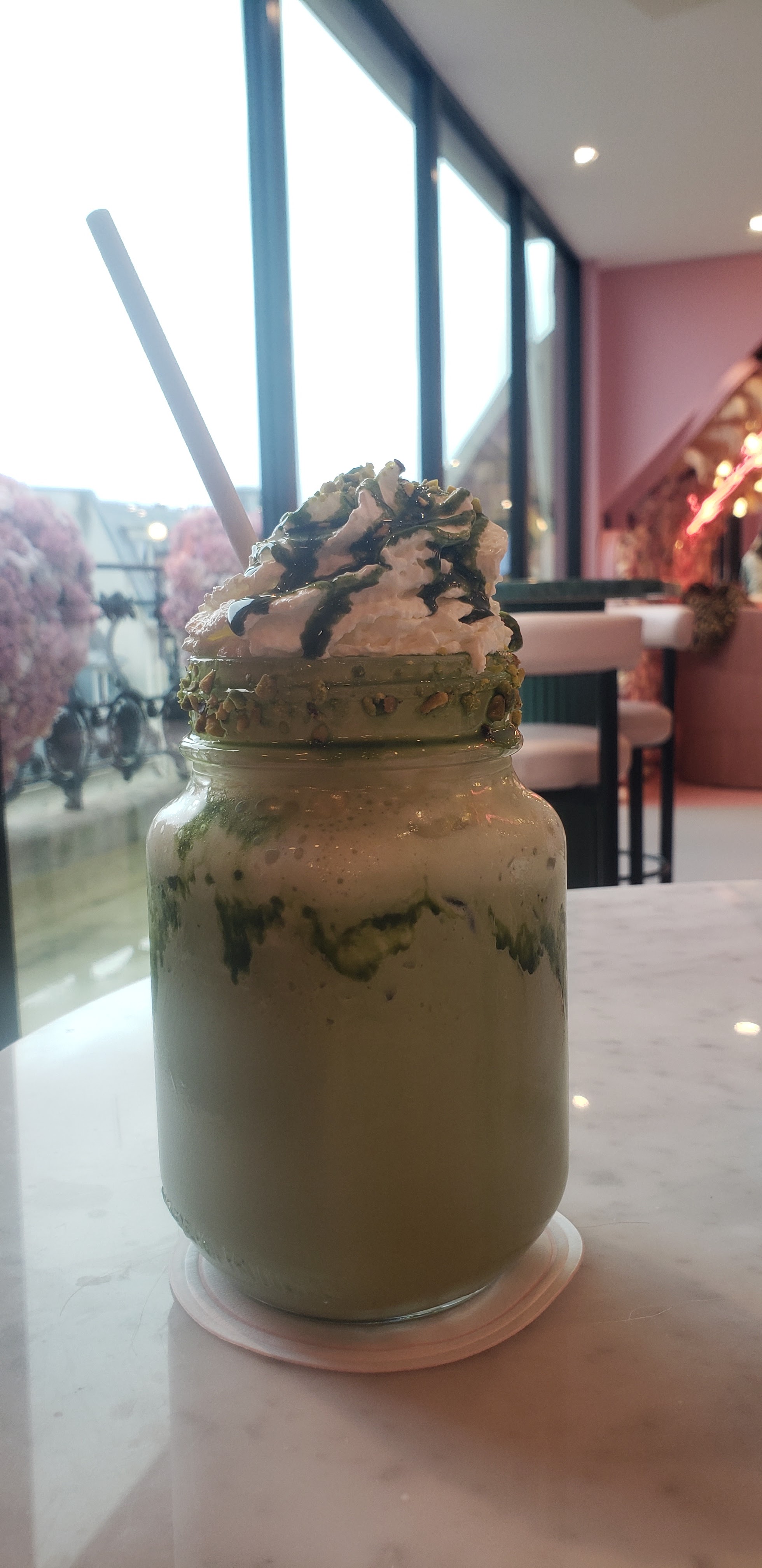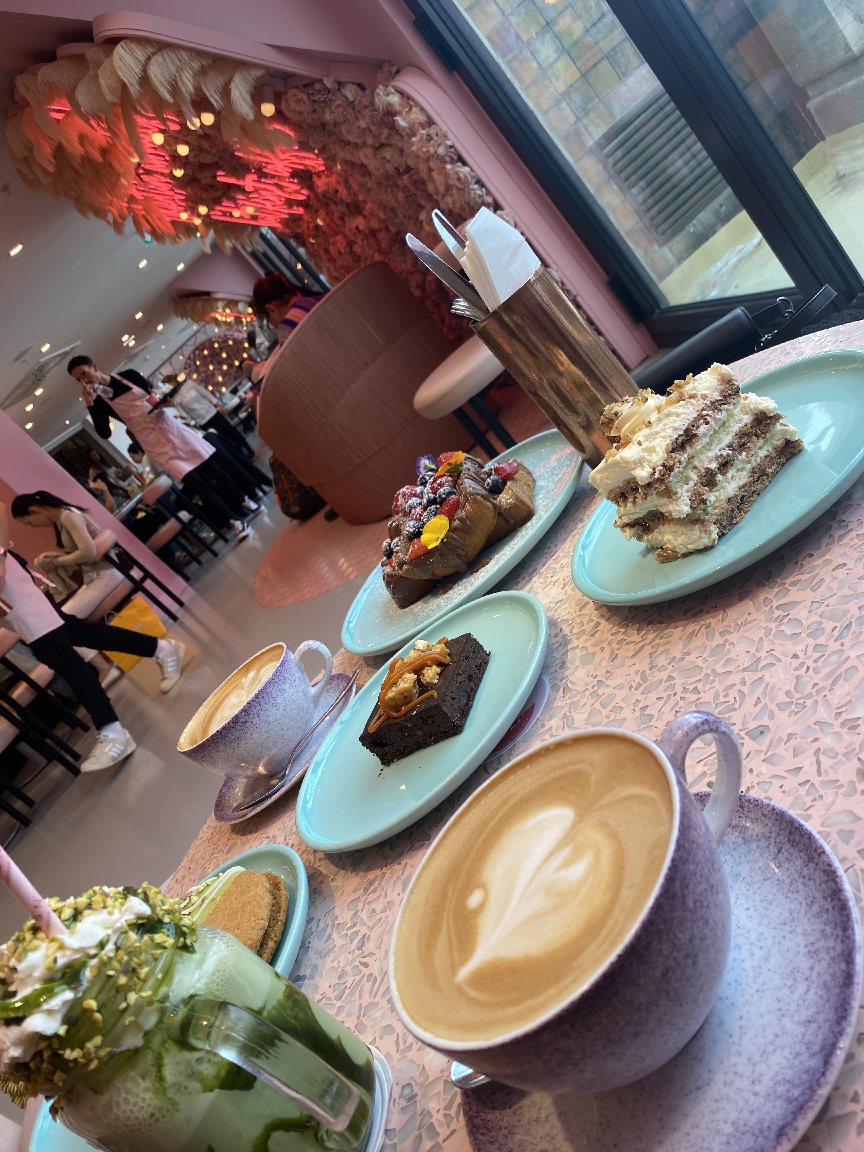 Très jolie café.. très instagrammable bien sûr ! 😄 La boisson a la pistache est bonne Le Brownie par contre était sec et s'effritait déception