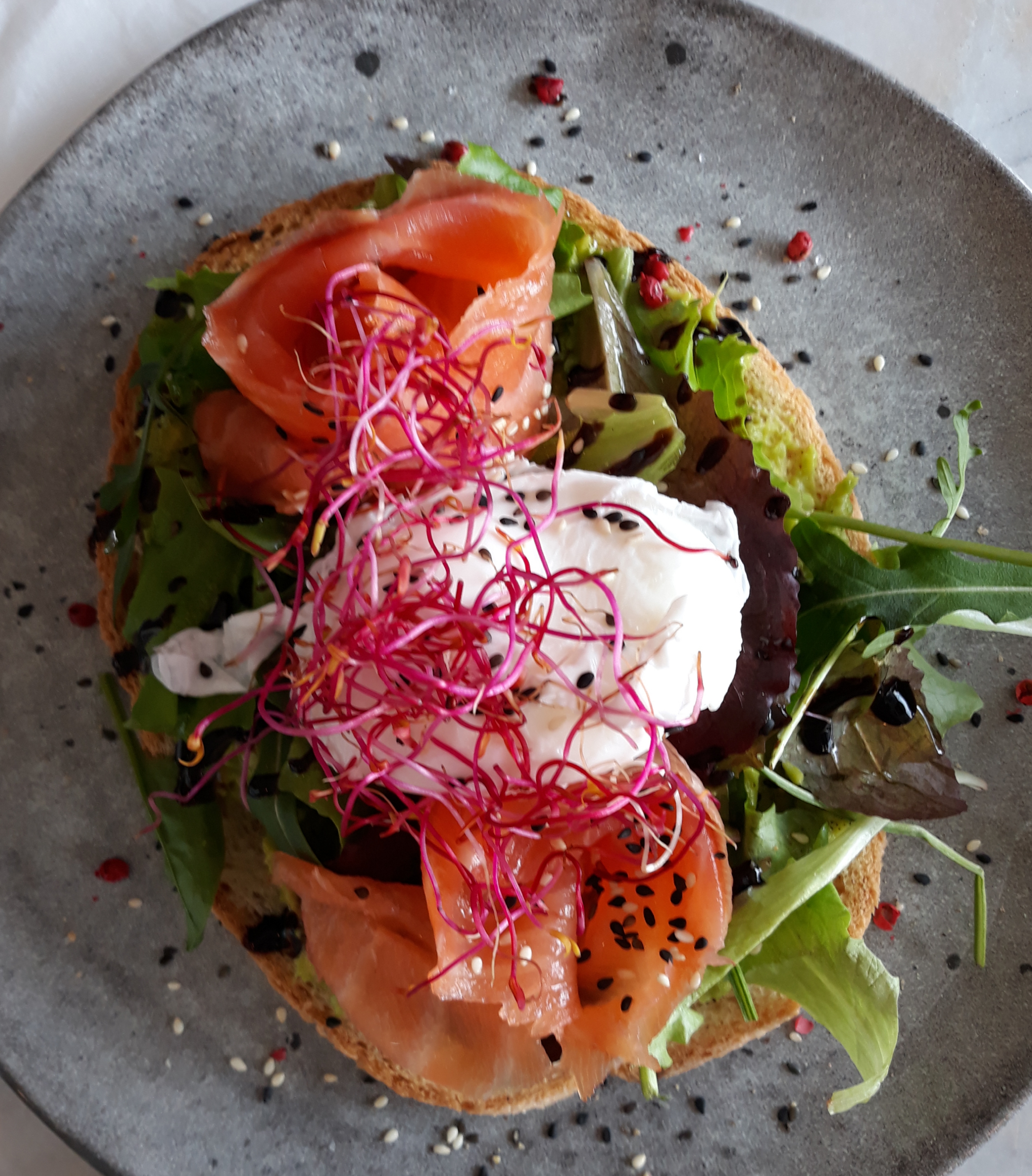 Les avocado toast au bacon sont vraiment très bon et très copieux ! On a finis avec un latte macchiato au caramel très doux, un plaisir ! Les prix sont très corrects, l’endroit agréable et les serveuses très avenantes !