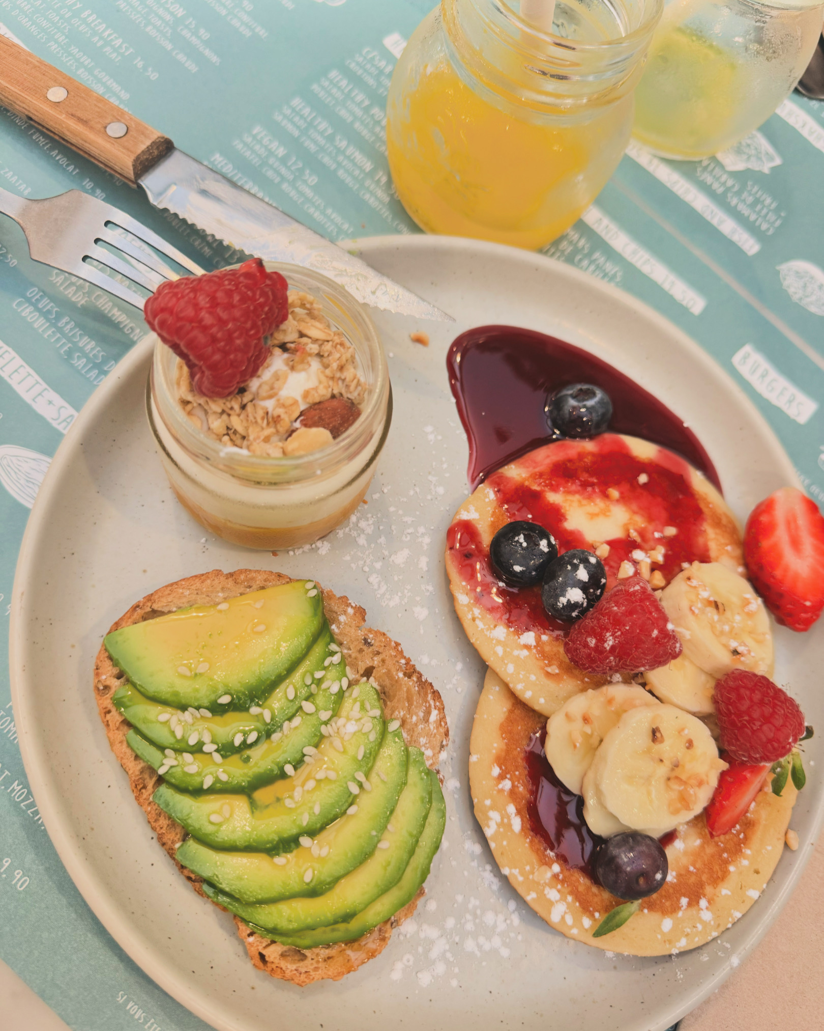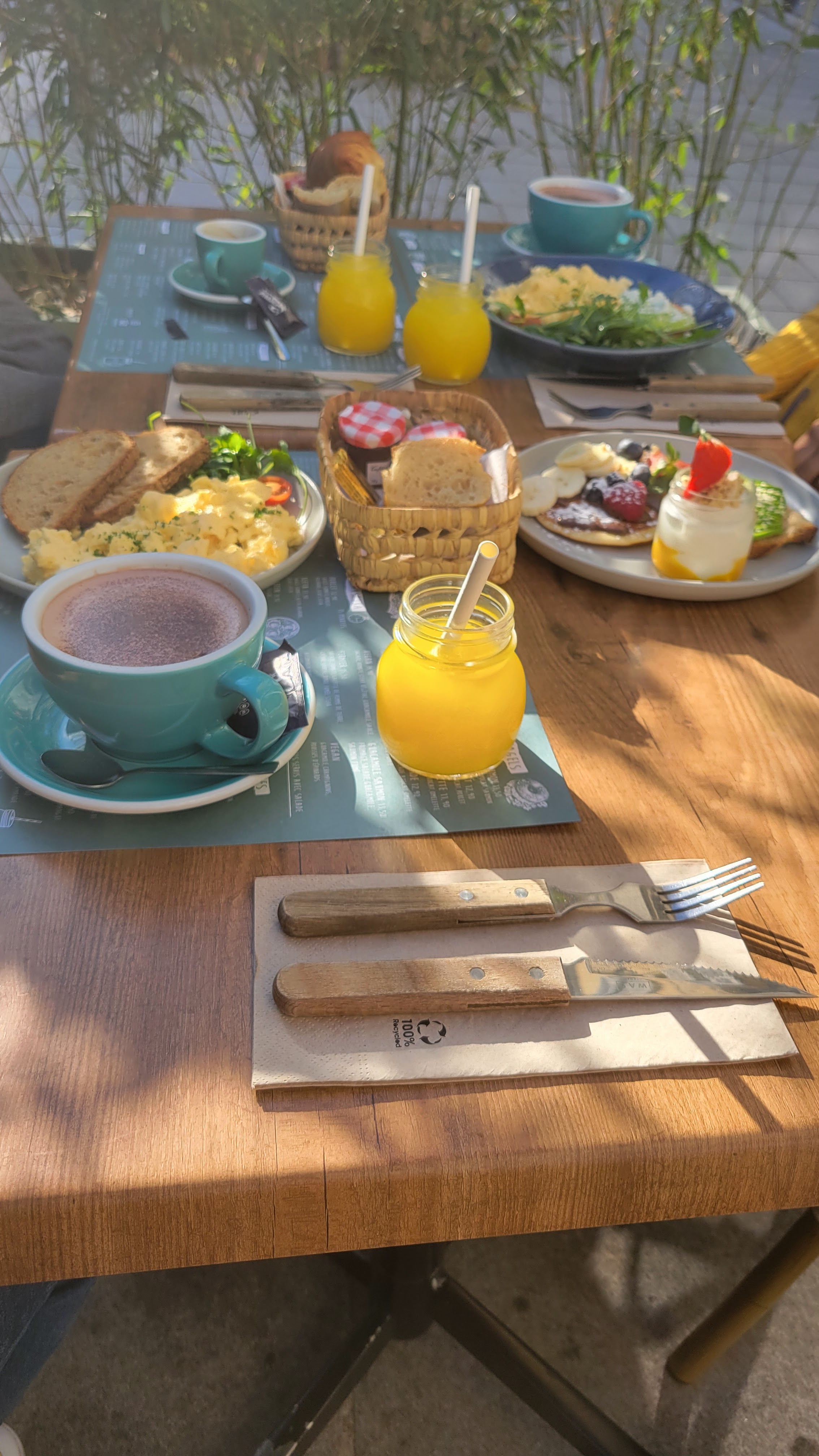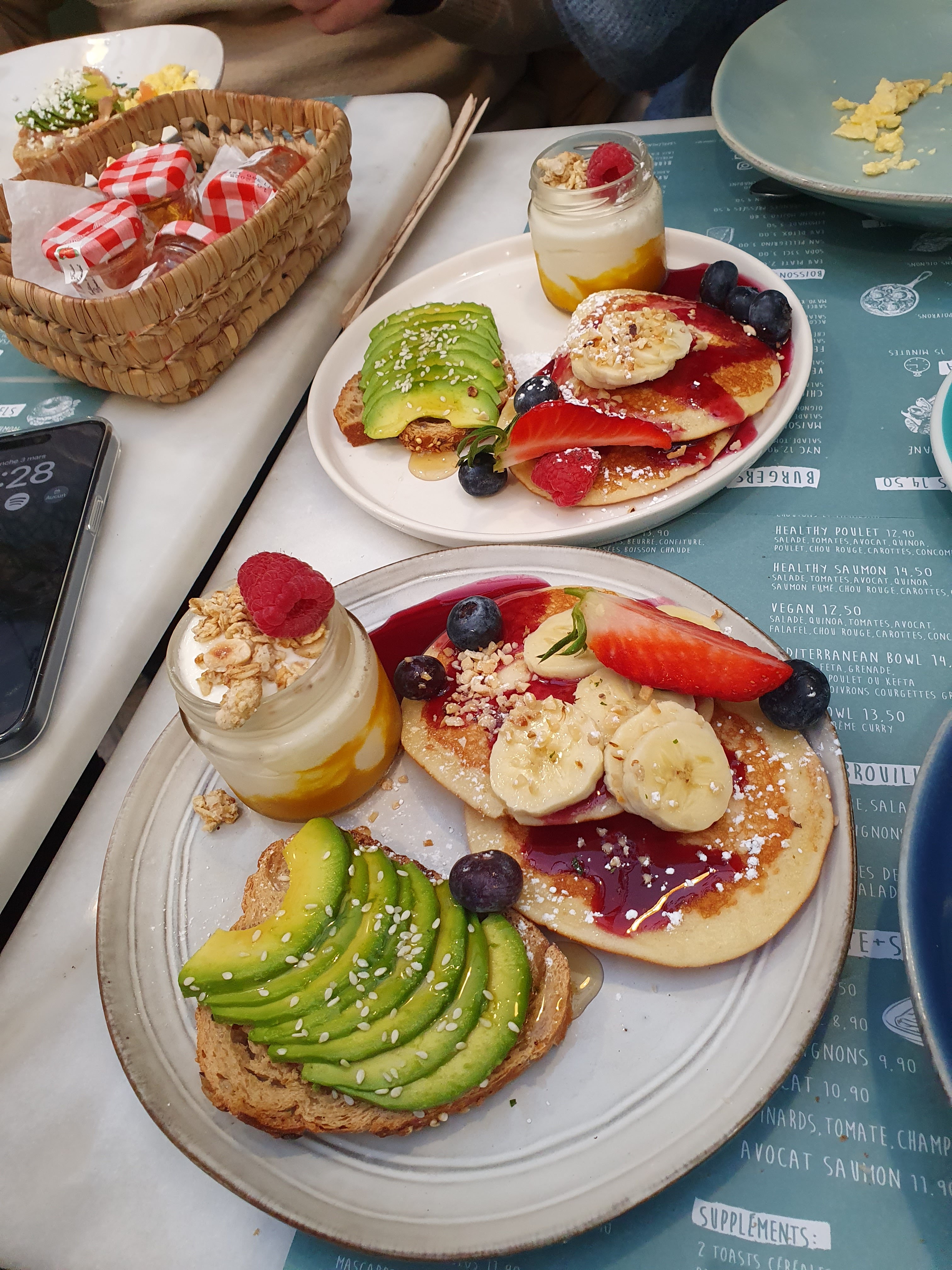 Malheureusement nous n’avons pas apprécié notre brunch. Les pancakes sont industriels et les aliments sans goût ni saveur. 30€ a deux pour une tartine œufs brouillés avocat (pain sans commentaire…) et des pancakes du supermarché avec un jus d’orange / un thé / un café. Très mauvais rapport qualité / prix. Passez votre chemin. Votre estomac vous remerciera.