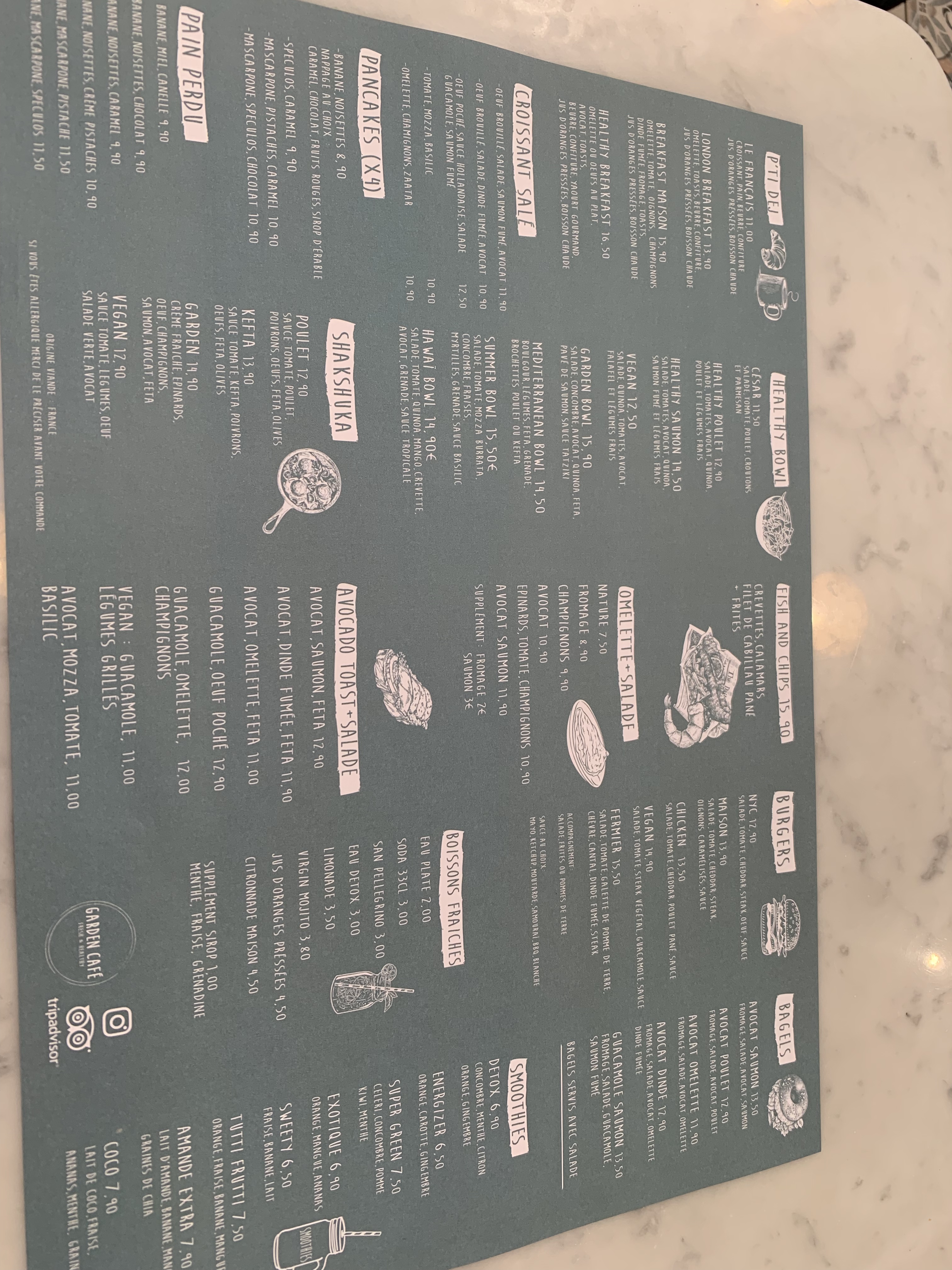 J'ai pris un brunch Garden à 19,90€. Je ne suis pas sure que tout soit fait maison (oeufs brouillés et pancake) mais je mets quand même une note de 5 pour plusieurs raisons. Le restaurant est situé dans un emplacement plus tôt calme par rapport au quartier, le cadre est agréable, la déco est sympa. La serveuse qui s'est occupée de nous était très sympathique. Ce qui est bien dans ce restaurant c'est le large choix de menu, il ne propose pas que le brunch, on peut également prendre un burger (mon fils ne voulait pas de brunch) et les prix pratiqués restent raisonnables par rapport aux autres établissements à Nice. Venant de la région Parisienne, j'ai été choquée par les prix des restaurants à Nice... encore plus chers qu'à Paris où les prix ont bien évolué à cause de l'inflation !!! Pour cette raison nous n'avions pas été au restaurant jusqu'à notre dernier jour... Ce fut notre premier et le dernier restaurant de notre voyage sur la côte d'Azur et une expérience très positive.