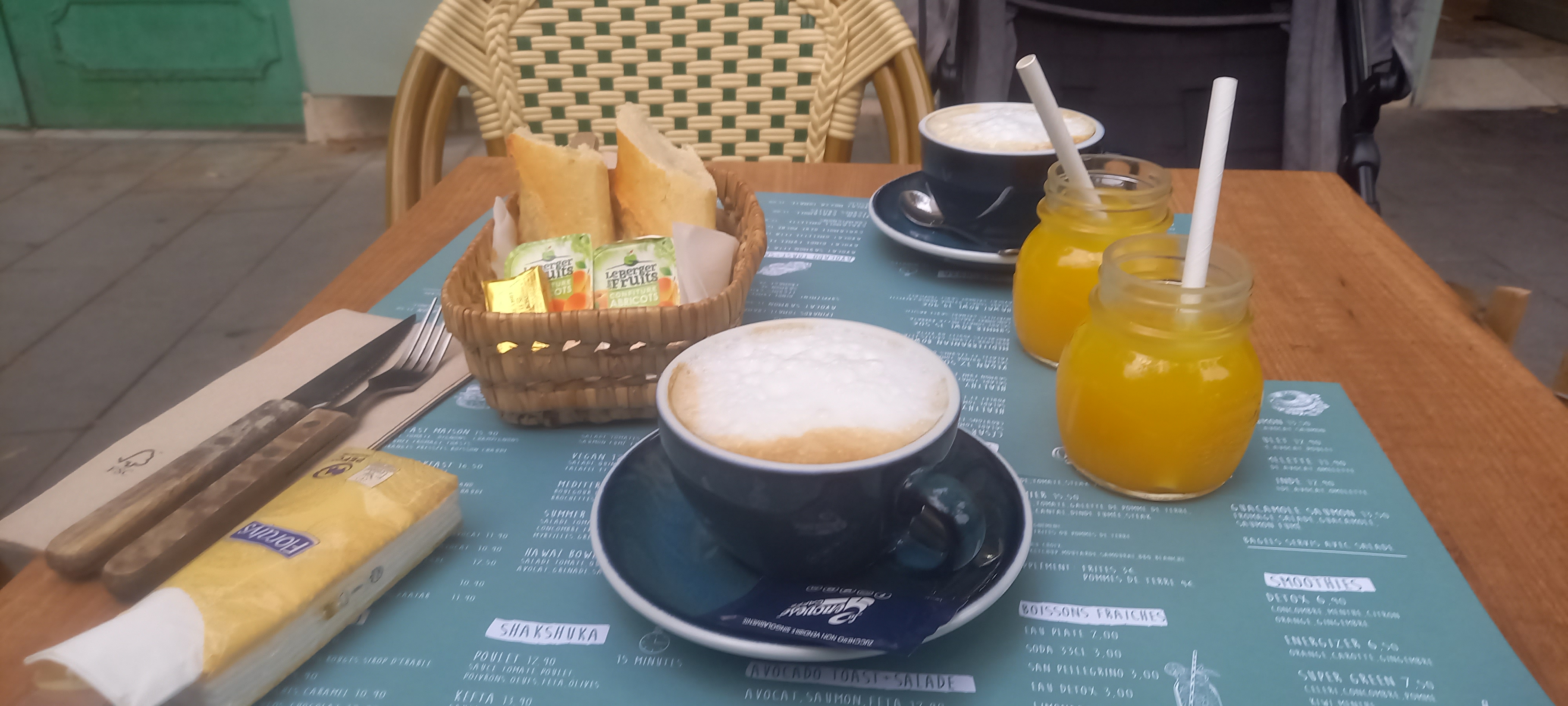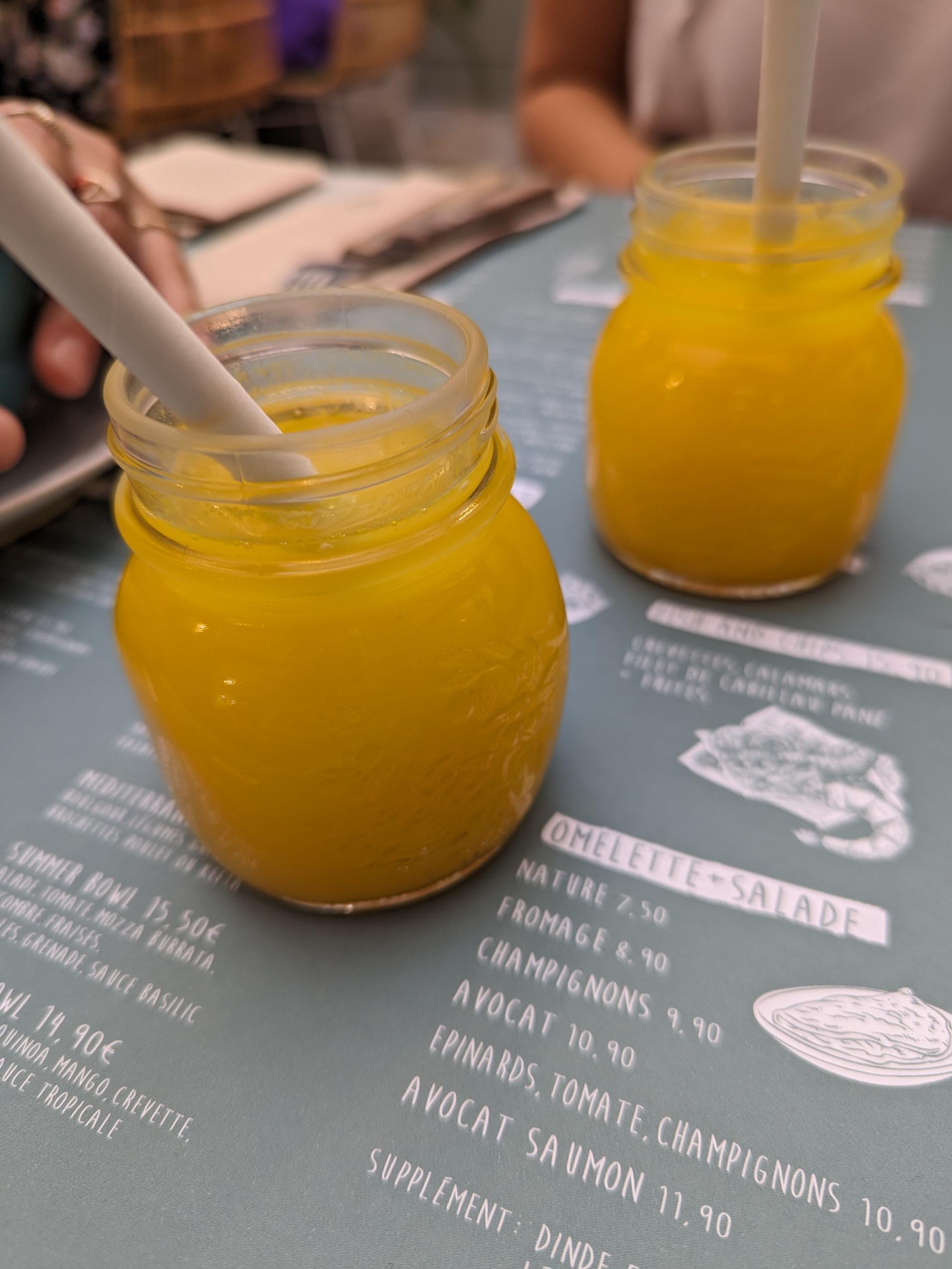 La salle est sympa, le smoothies étais bon. Le jus d’orange frais. Pas de possibilité de déclinaisons de choix, seulement la carte (ce que la serveuse nous a dit). C’était pas mauvais mais c’est plus beau que bon. La brioche perdue n’en n’est pas une, elle n’est pas un imbibé, c’était juste une brioche.
