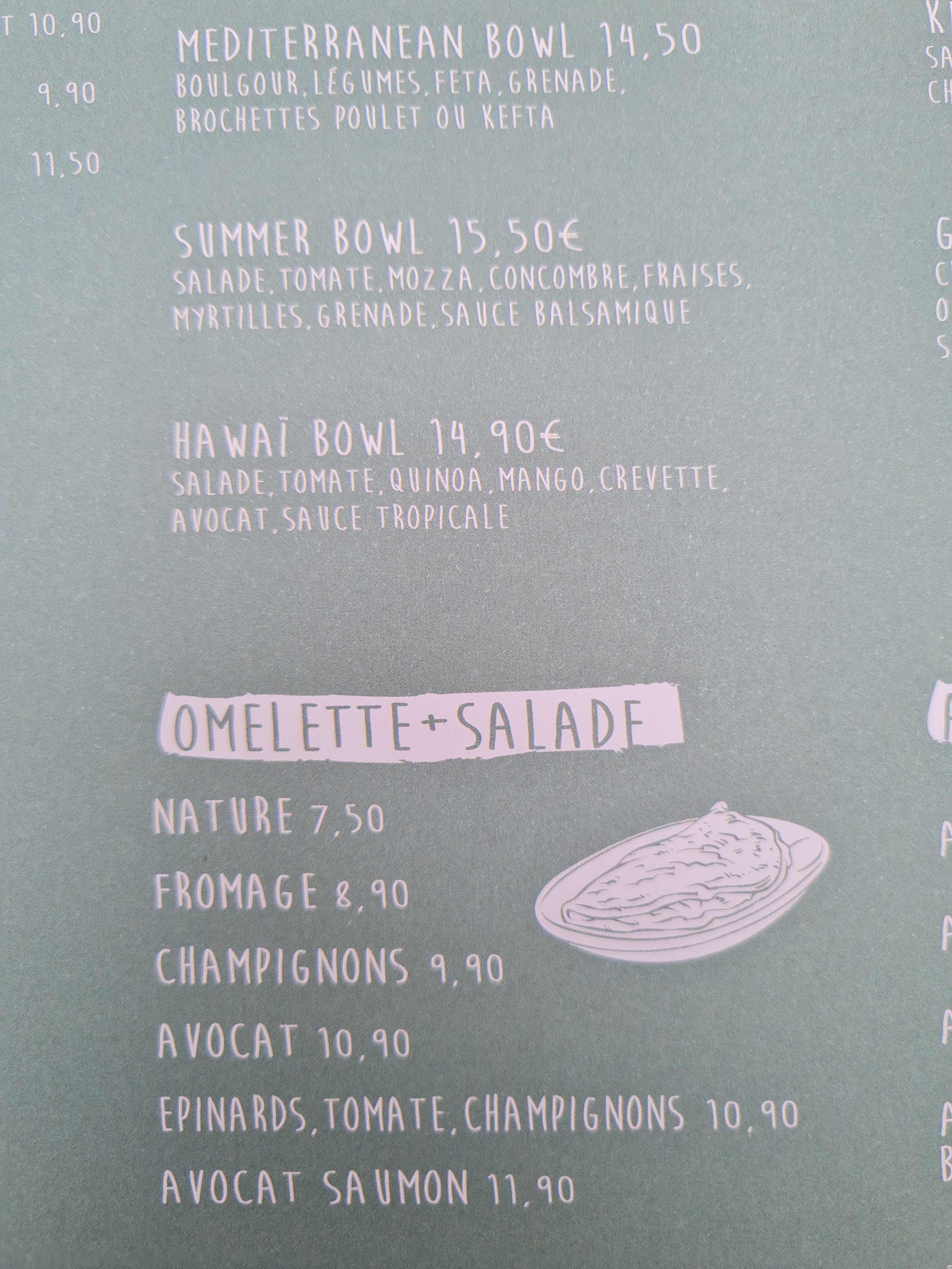 Énorme DÉCEPTION 😢 la qualité des produits est déplorable, les tomates, la salade, l’avocat … n’ont aucun goût !!! BERK 🤮 Le smoothie à 6,5€ est un verre d’eau coloré !!!! Je ne parle pas des frites, celles de la cantine de mes enfants sont au niveau d’une rolls royce par rapport à ces choses farineuses mal cuites jaunes de mon assiette !!! Quand au service, on a envie de s’excuser de les déranger et de leur passer commande !!!! À BANIR DÉFINITIVEMENT