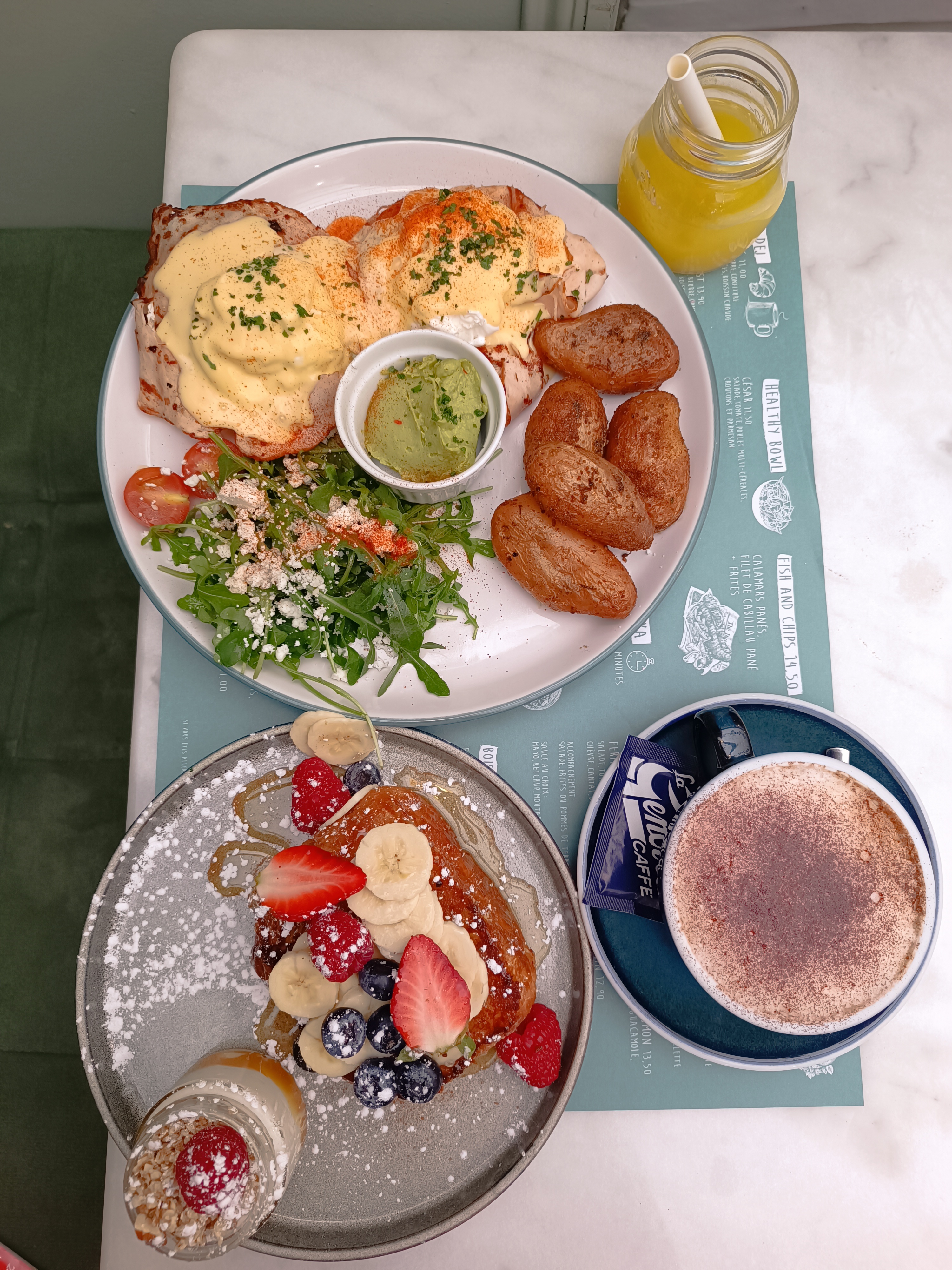 Très bon brunch copieux prix correct Petit point négatif la taille du jus d'orange pressé, je trouve qu'il était vraiment petit.