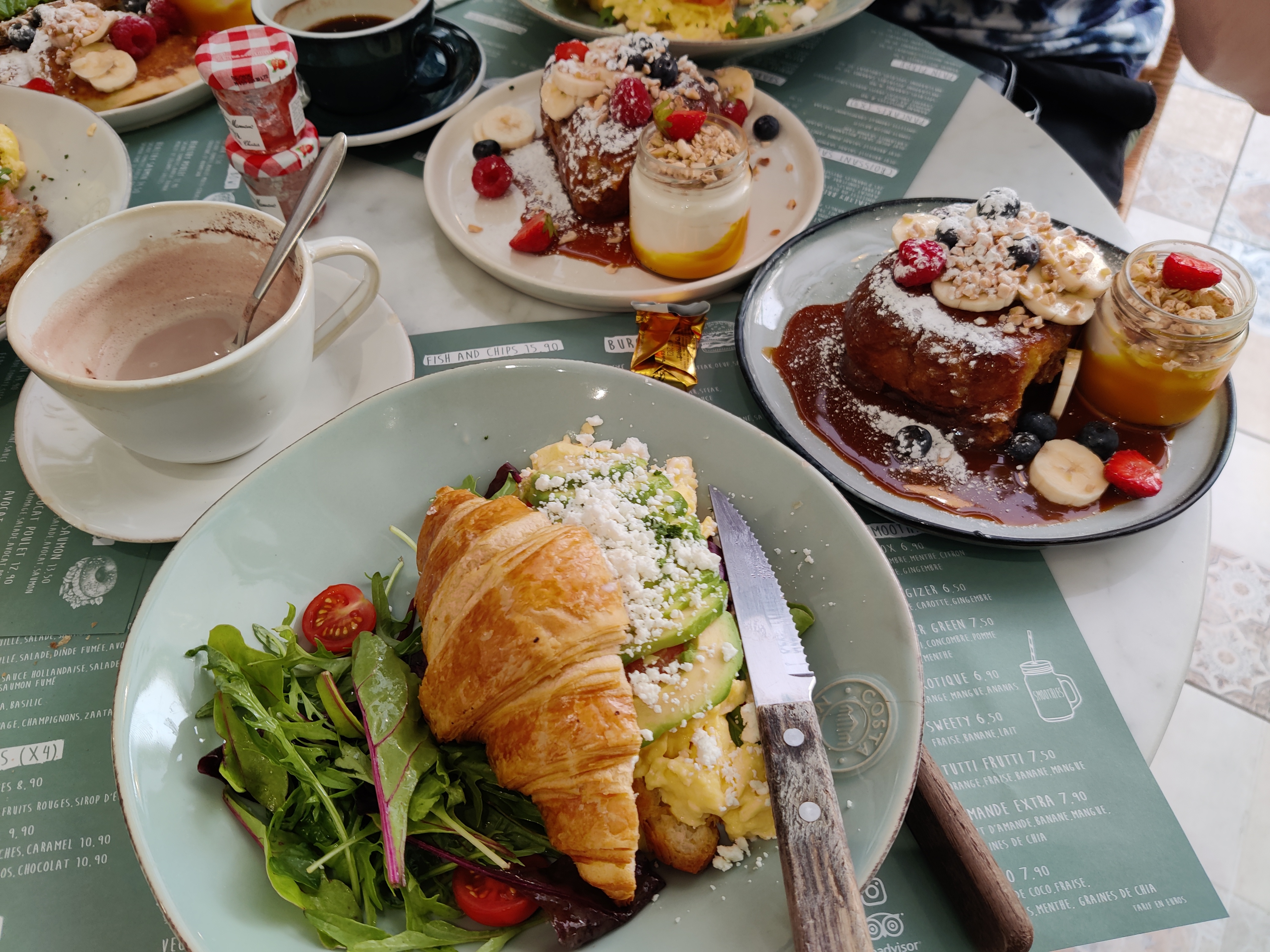 un 5 sur 5 pour cet établissement ! Nous y avons été pour le petit déjeuner (8h30 du matin, à l'ouverture..)... nous avons choisi deux petits déjeuners un plus copieux et un plus basic (je ne me souviens plus des noms exact) .. Mais tellement bon OUAW OUAW OUAW, le croissant avec œuf brouillé, avocat et saumon une tuerie ! Je ne vous parle même pas de la brioche façon pain perdu avec banane, cannelle et caramel... quel plaisir gustatif !! Le prix peut paraître un peu cher (24€ l'un, 14 l'autre). Tout les deux avec boisson chaude et jus d'orange frais ! Vous en avez vraiment pour votre argent