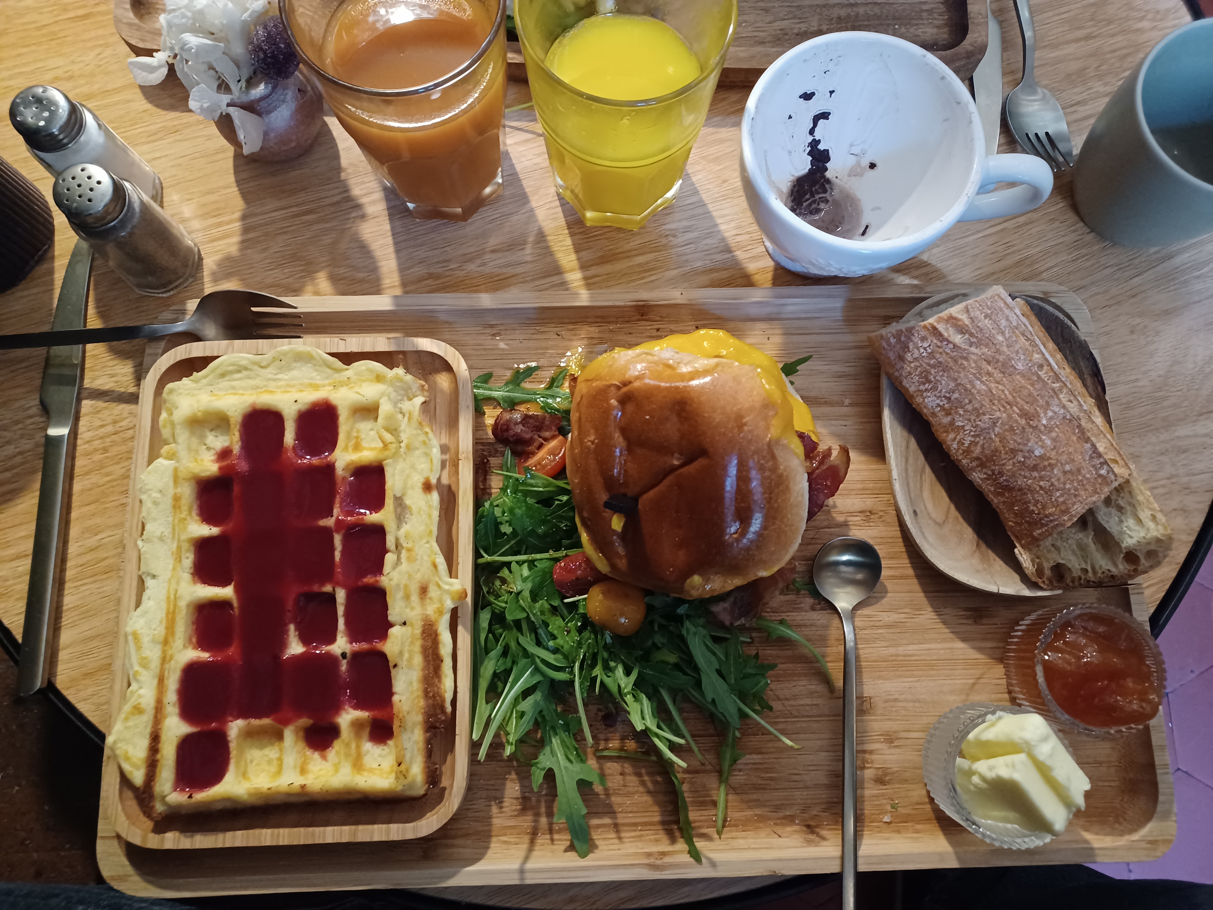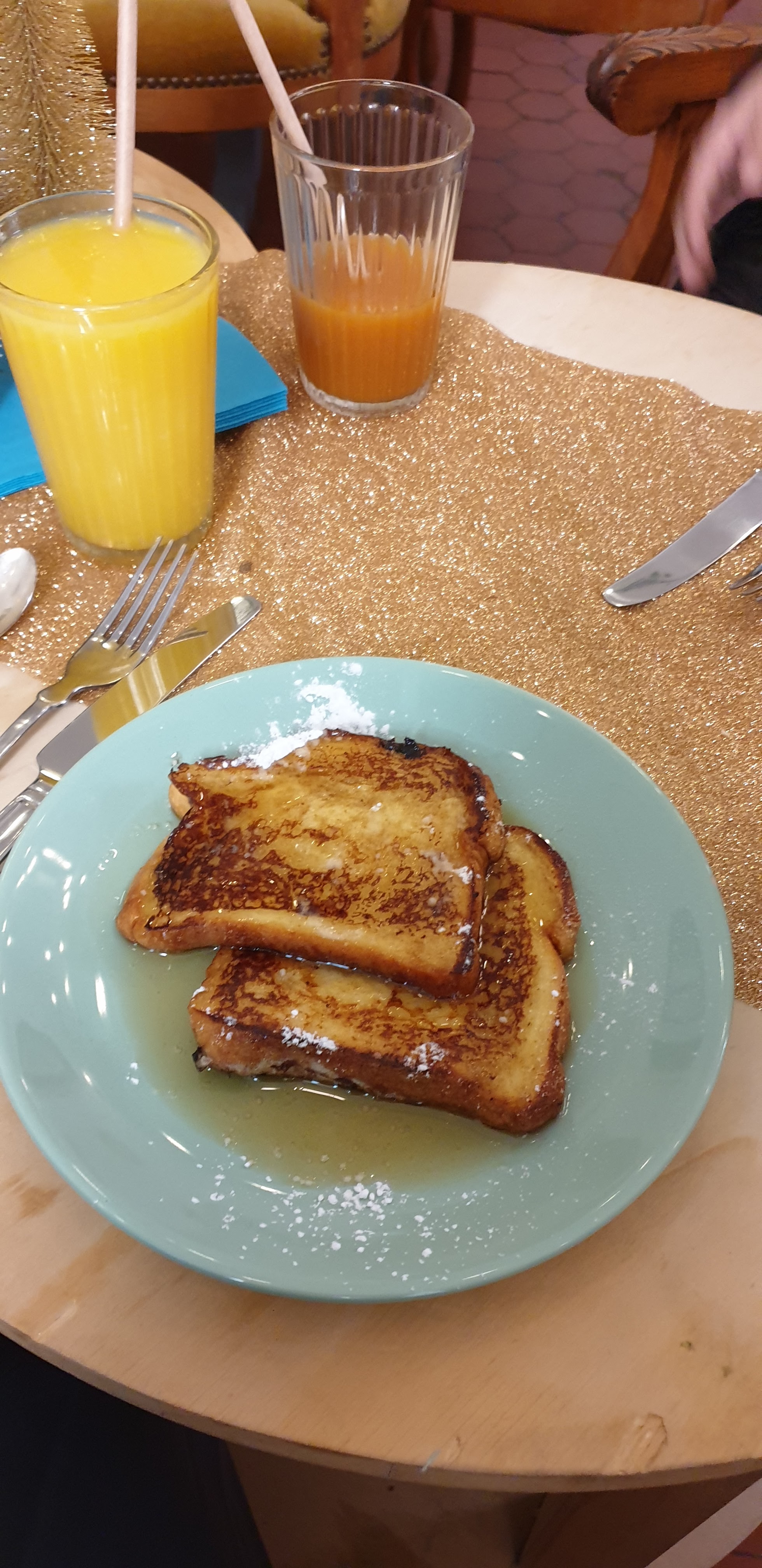 Très partagé pour cette expérience car nous avons attendu plus de 55 minutes avant d'être servis. Nous avions réservé un dimanche à 12h, nous sommes arrivés à 11h50 et servis à 12h50. Quand c'est long on compte hélas et on apprecie moins le moment. Les plaids étaient très appréciables. Je vous conseille tout de même le brunch complet avec le double monsieur matin, le pancake et les œufs brouillés. La gauffre etait froide ainsi que le pain perdu donc difficile de donner un avis. Vous pouvez le compléter avec un autre plat comme la tartine avocat saumon ou le hot dog. Nous sommes peut être venus le mauvais jour, ça arrive donc on reviendra pour retenter car c'était bon ! Courage à l'équipe.