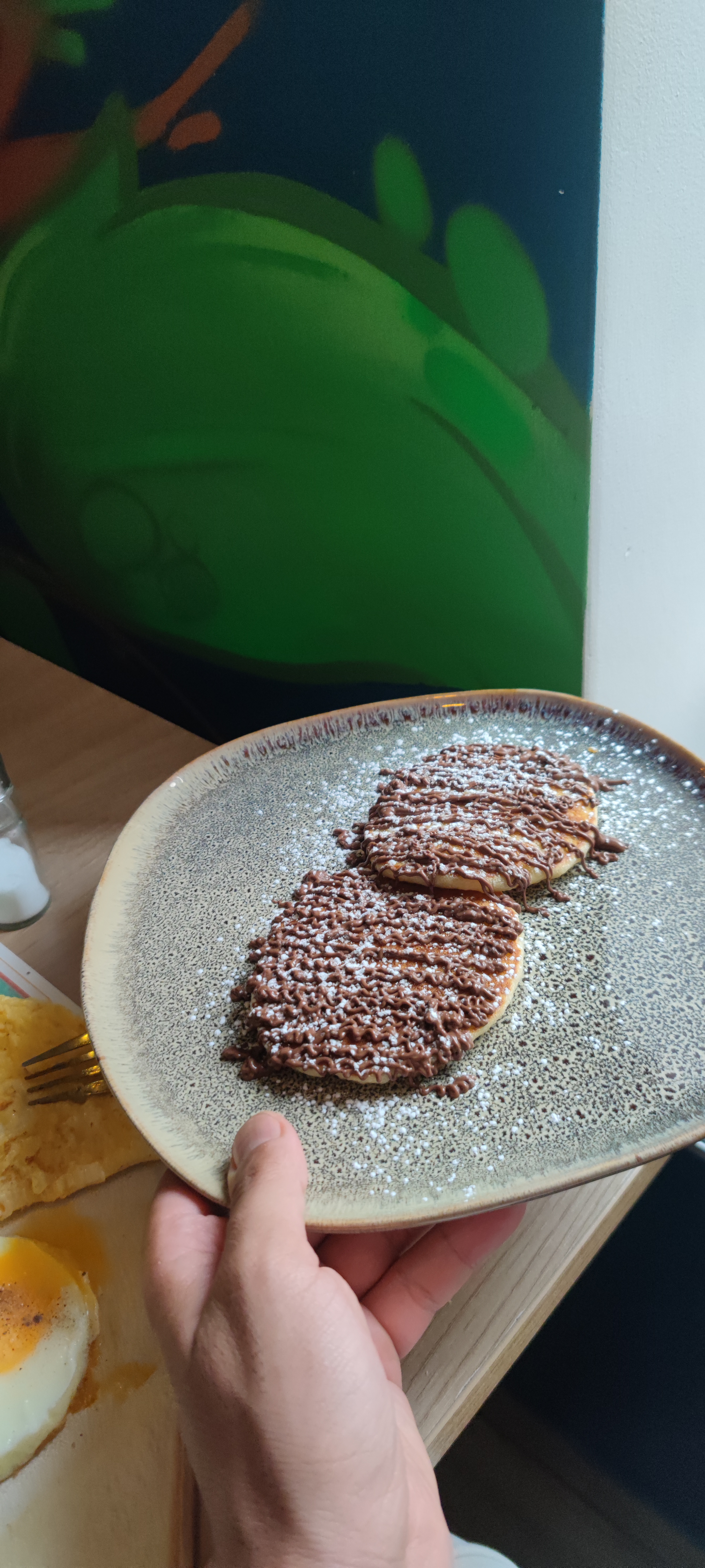 En premier lieu : Les menus sont variés et ont du goût. J'ai aimé l'association de la salade sucrée salée de la formule brunch avec le bacon de dinde, les œufs. On est loin de quelque chose de basic. Ça change en terme de goût. Je sais de quoi je parle car nous faisons beaucoup de restaurants proposant des brunchs ! Les pancakes sont epais et bien garnis. Je vous recommande le chocolat gourmand qui est exquis avec une montagne de chantilly !!! Il porte bien son nom celui-là Aussi pour finir pour ce que c'est, ce n'est vraiment pas cher ! On reviendra ! Même l'accueil est super. La serveuse est à l'écoute et le patron est sympa. A bientôt