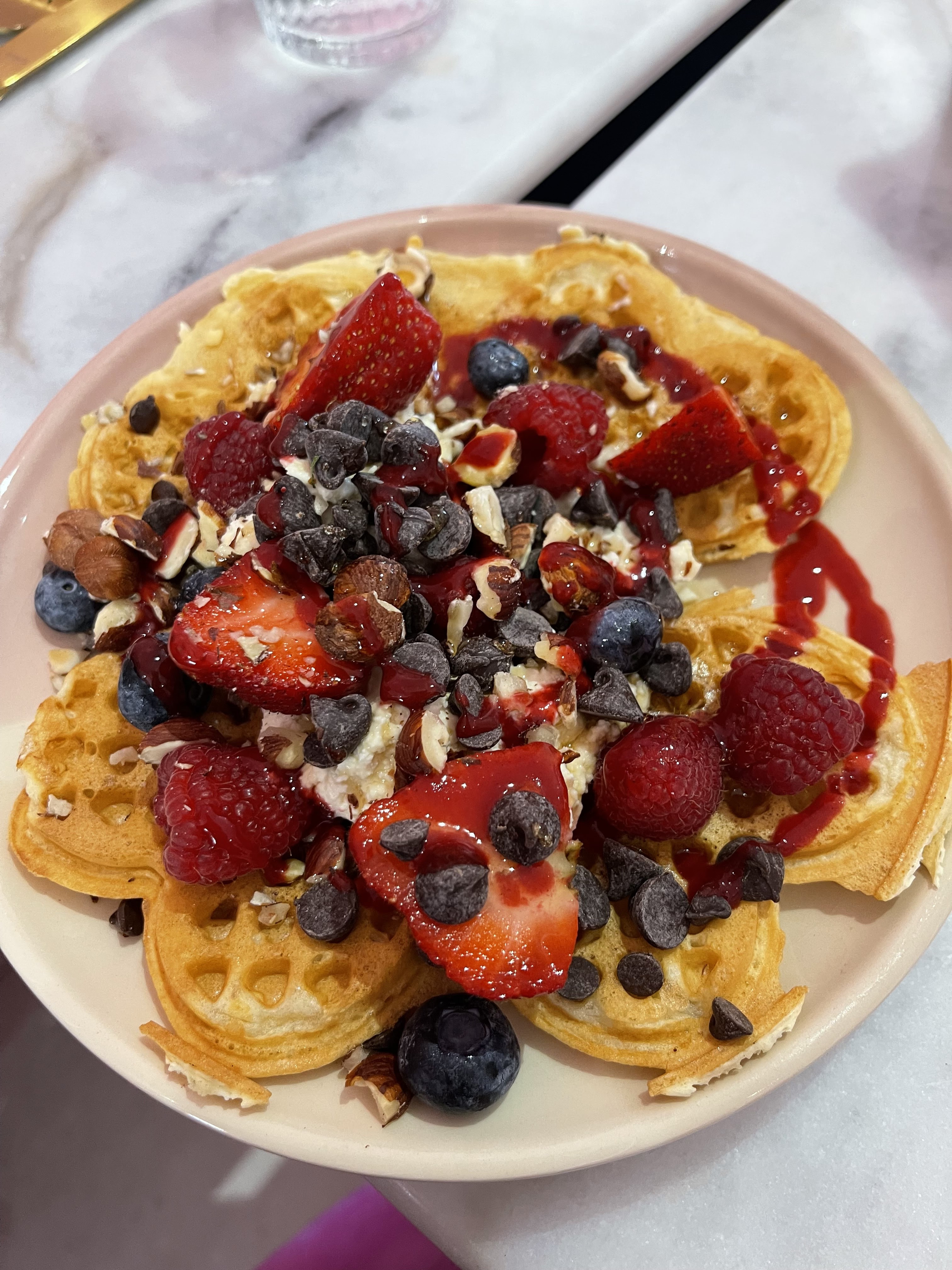 Super accueil chaleureux et pep’s à la fois. Serveurs souriants, réactifs, service irréprochable. Les muffins œufs bénédicites sont délicieux et mention spéciale pour leur gaufres sucrée, la pâte est tellement délicieuse et l’assortiment des toppings se marie tellement bien. Merci pour cet agréable moment !