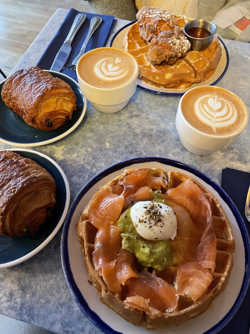 On a passé un super moment, ambiance chill super agréable. Un serveur au top qui vous met de bonne humeur (Bonjour Allan si tu passes par la!!). En revanche je vous conseille ni le chiken waffle ni le cinemon roll ! Ps : possible de se faire dessiner une grenouille ou un nounours sur votre boisson chaude grande taille !! ♥️☀️