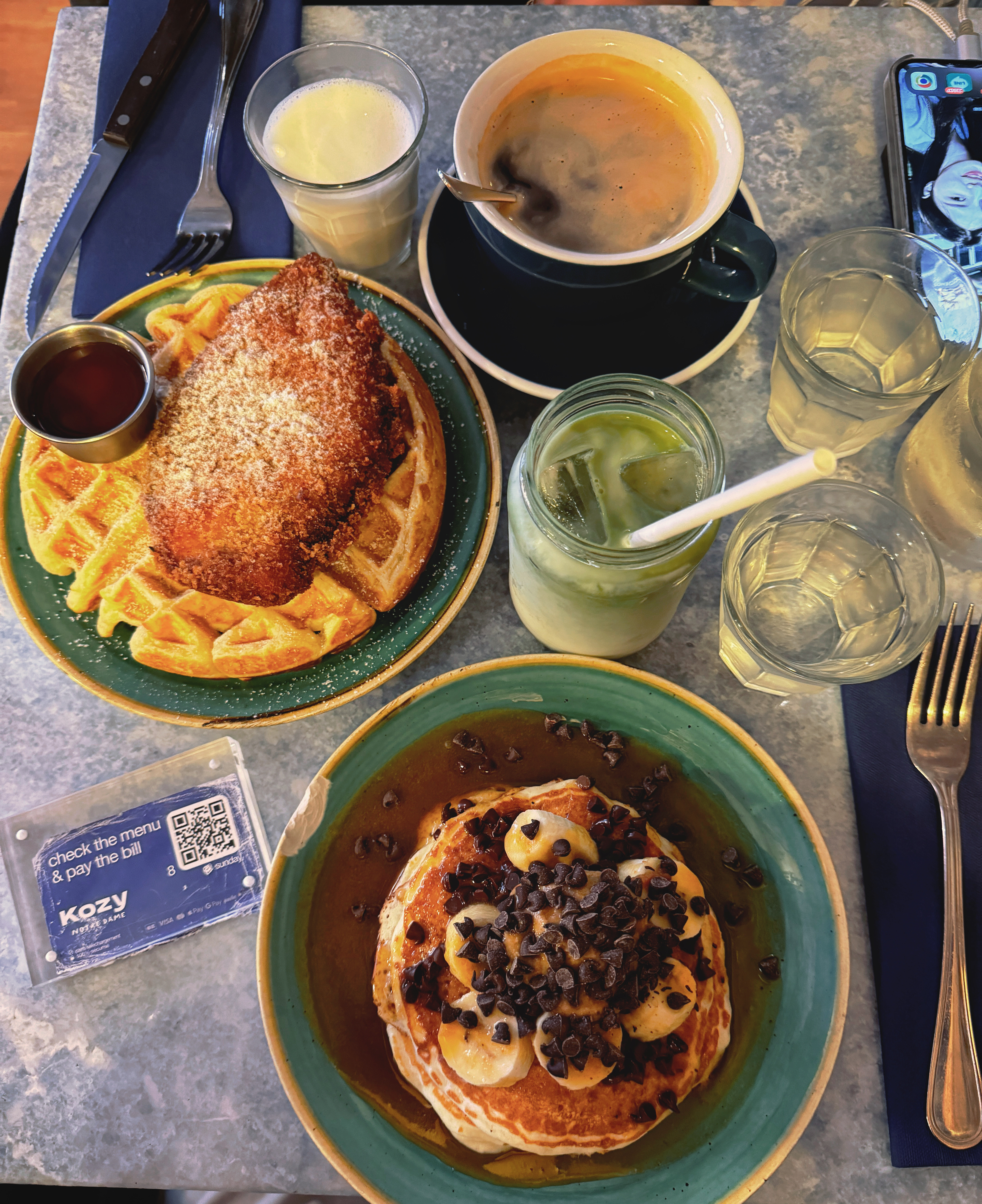 J’ai jamais goûté du chicken waffle avec maple sirop dans ma vie. C’est sûrement un plat americain très connu. Kozy a fait a good job. C’est tellement bon, mais je trouve que le prix un peu cher quand même 🥲 Le capuccino était parfait, ça fait longtemps j’ai pas goûté un bon capuccino comme celui-là. The staff was amazing, acceuillant et sourriant, tellement gentil. Totally recommend ♥️