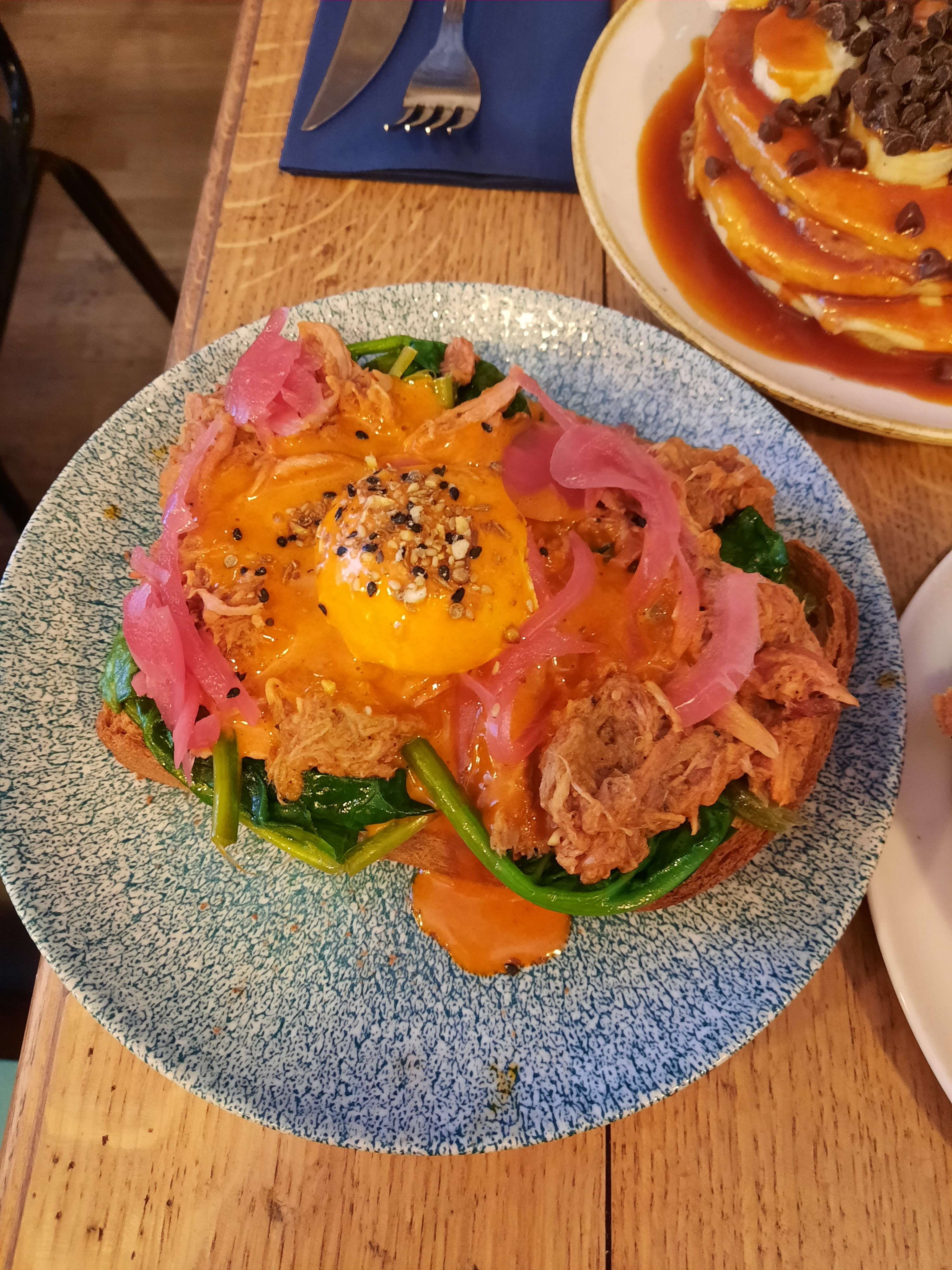 Passé pour un brunch un mercredi matin, on a pas eu d’attente et service sympa👍 On a pris un cappuccino et un smoothie bons, le carrot cake un peu sucré à notre goût, et un egg Benedict au porc au quel on ferait un petit bémol sur leur pain de mie (décrit comme d’un meilleur ouvrier de France) qui était sec. Je suppose que c’est préparé et coupé pour moins d’attente donc je comprends, mais j’ai trouvé un peu chère pour le goût. Je renouvellerai l’expérience avec les pancakes ou les toasts 🙂