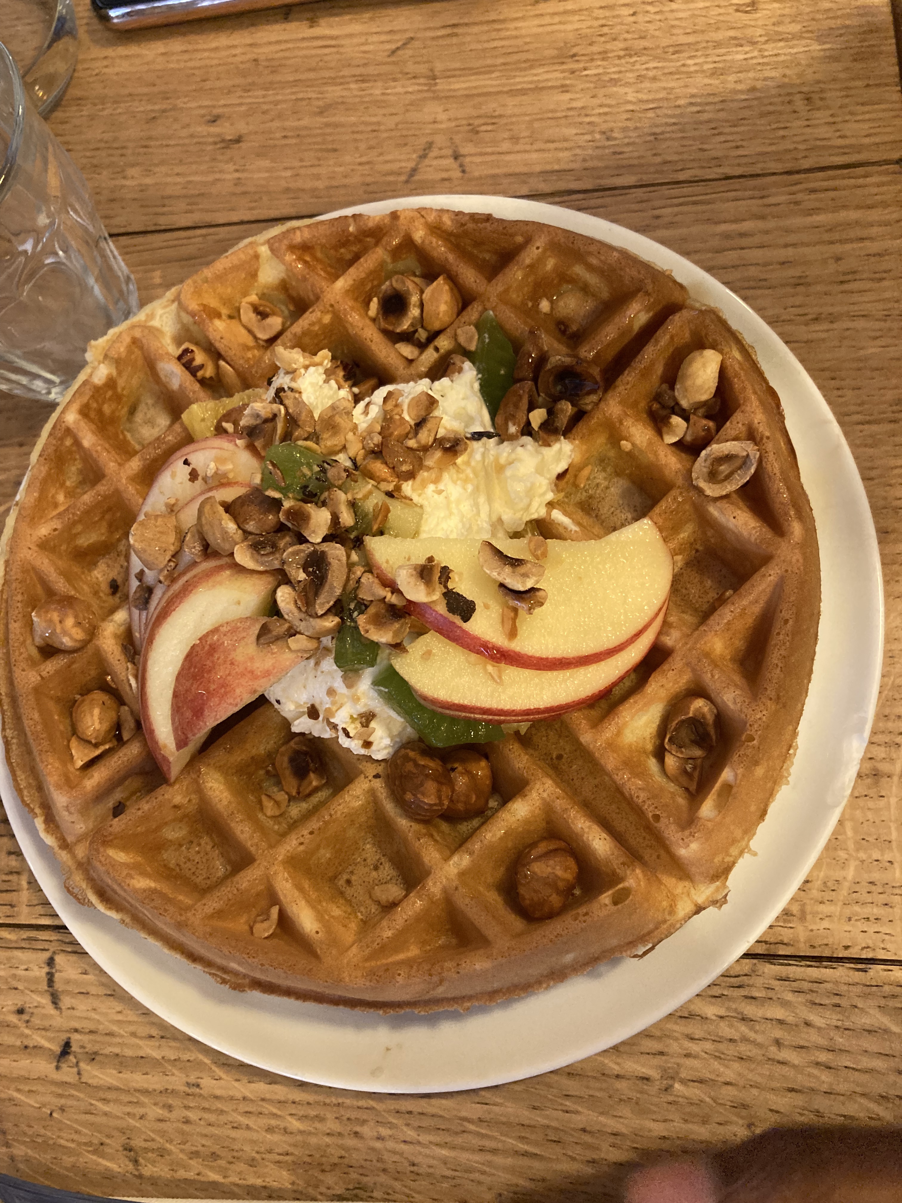 Un peu d’attente donc un conseil essayez d’arriver avant 9h30 le dimanche Une fois installé le service est très rapide et agréable Les gaufres étaient excellente Je recommande vivement !