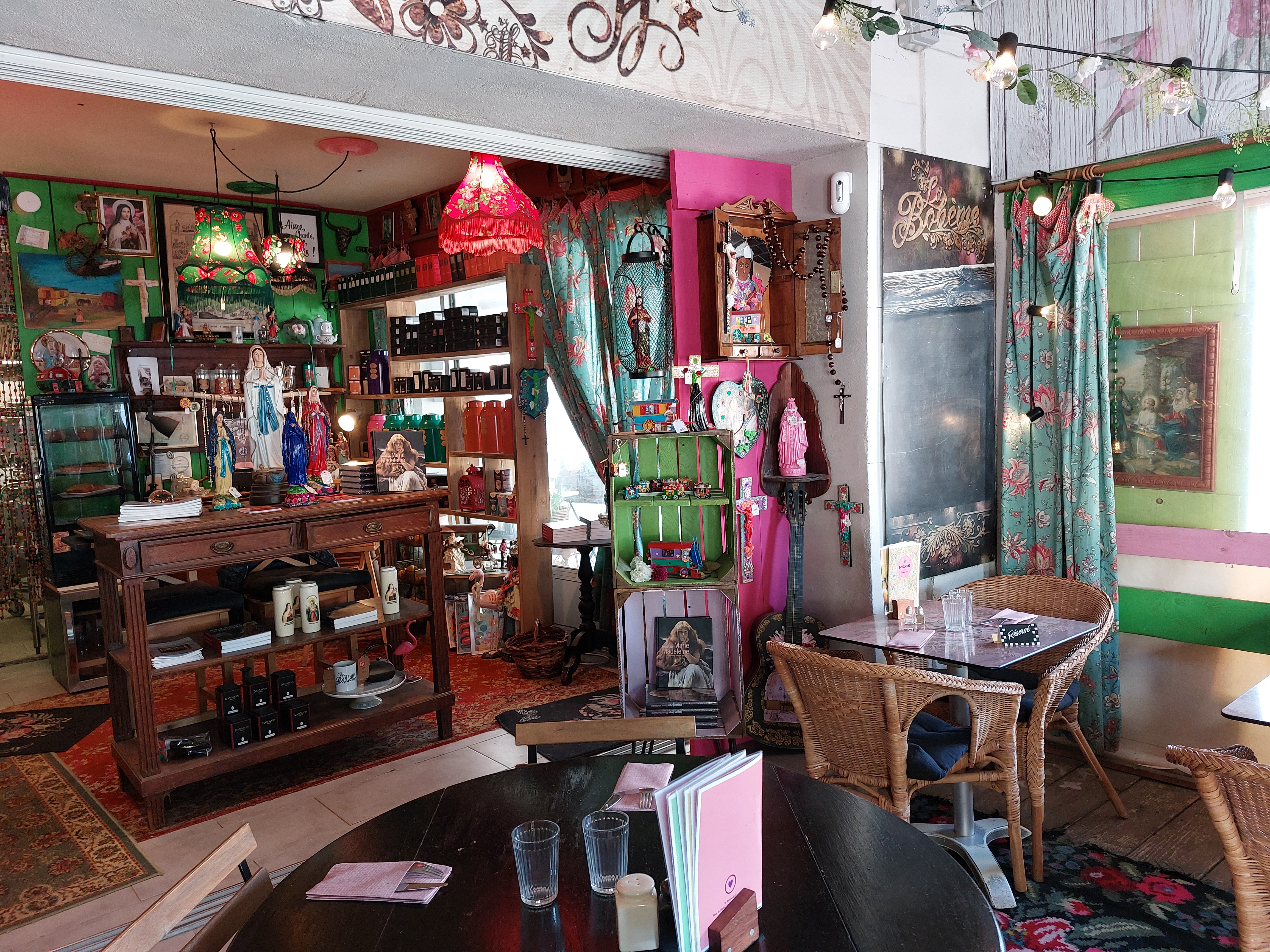 Un Lieu Divin dans tous les sens du terme. Divin gustativement et l’endroit est magique par l’accueil de Françoise et Julie qui sont des Hôtes exceptionnelles. La décoration totalement décalée est divine et inexorablement vous repartirez avec une bondieuserie. Quand vous rentrez à la Bohème vous n’avez plus envie de quittez ce lieu ou il règne une mystique quiétude serenite. Merci à Vous de nous avoir créé ce Havre de Paix intemporel et de nous accueillir avec une telle gentillesse et bienveillance.