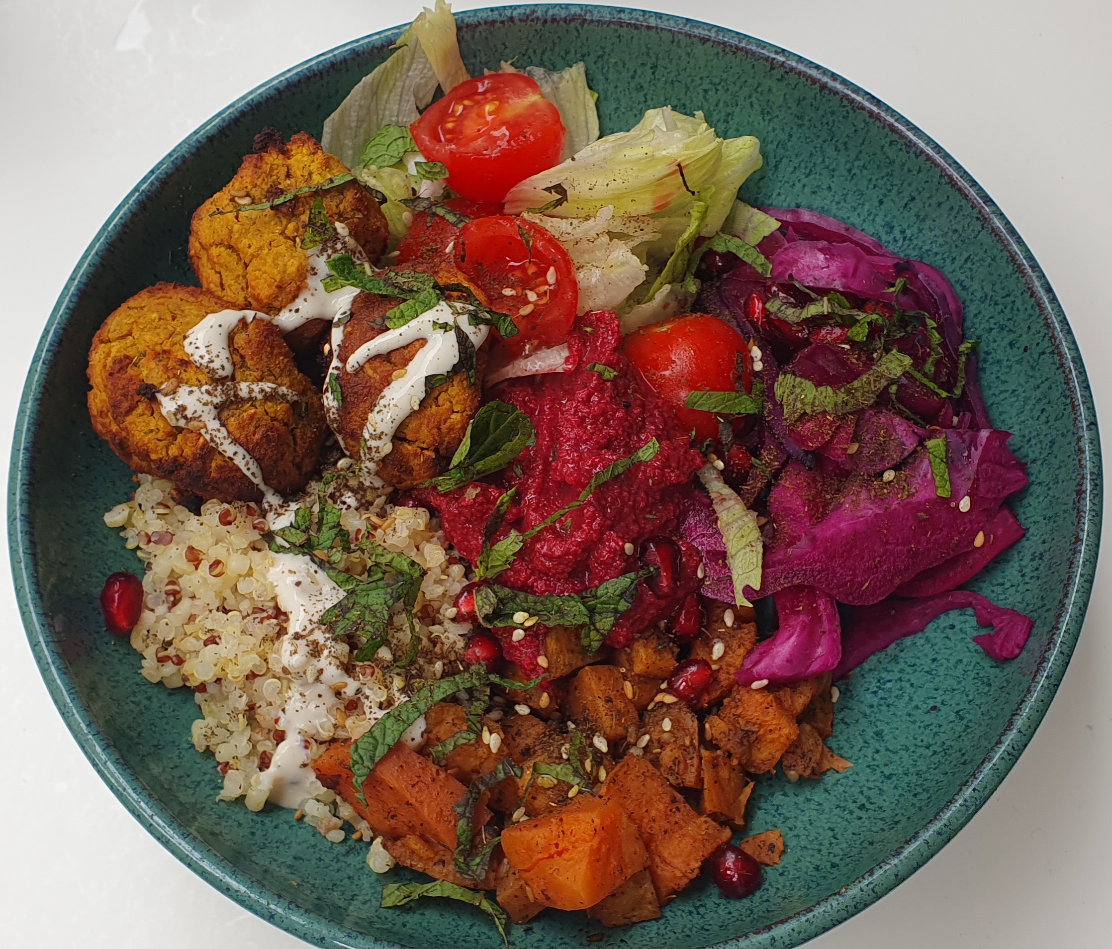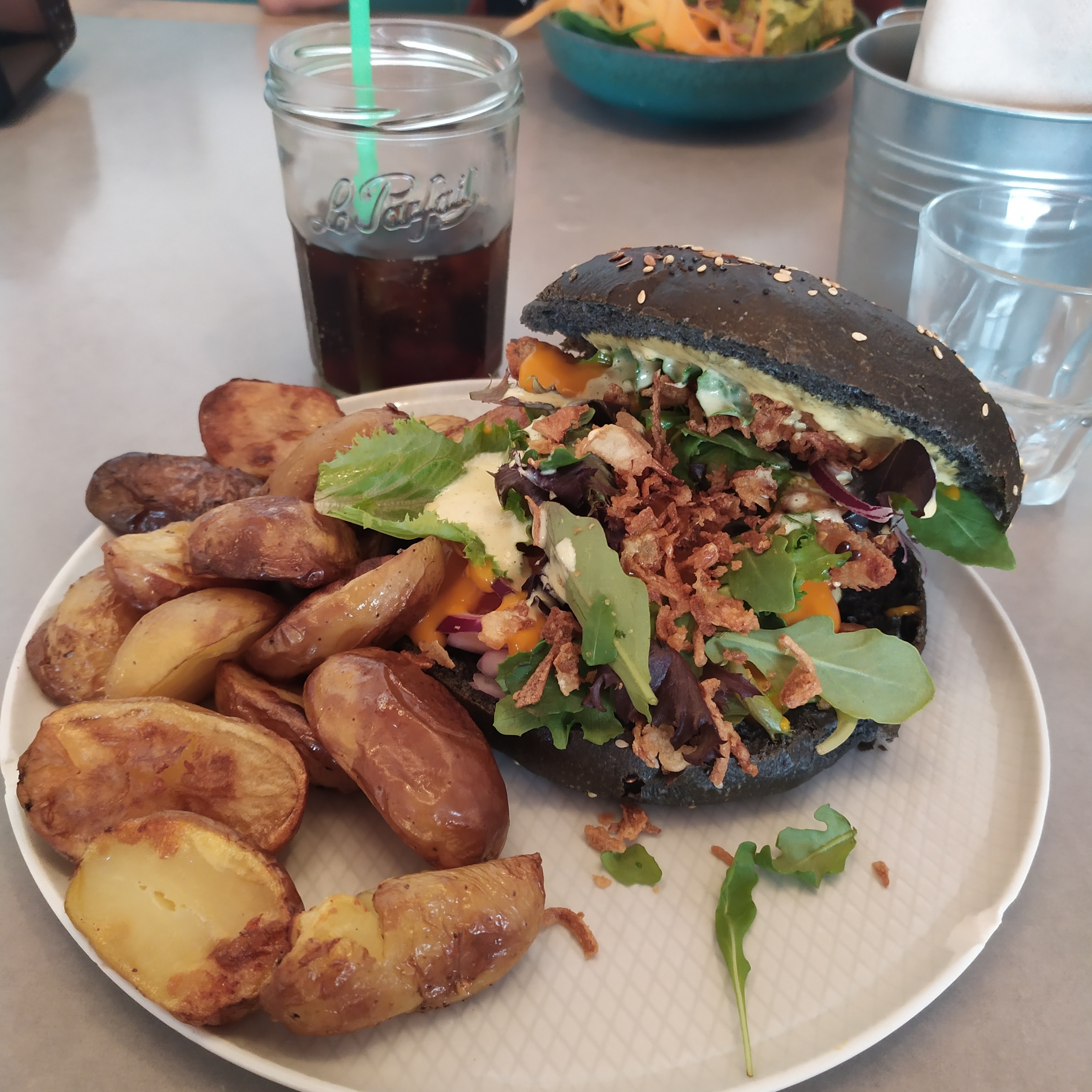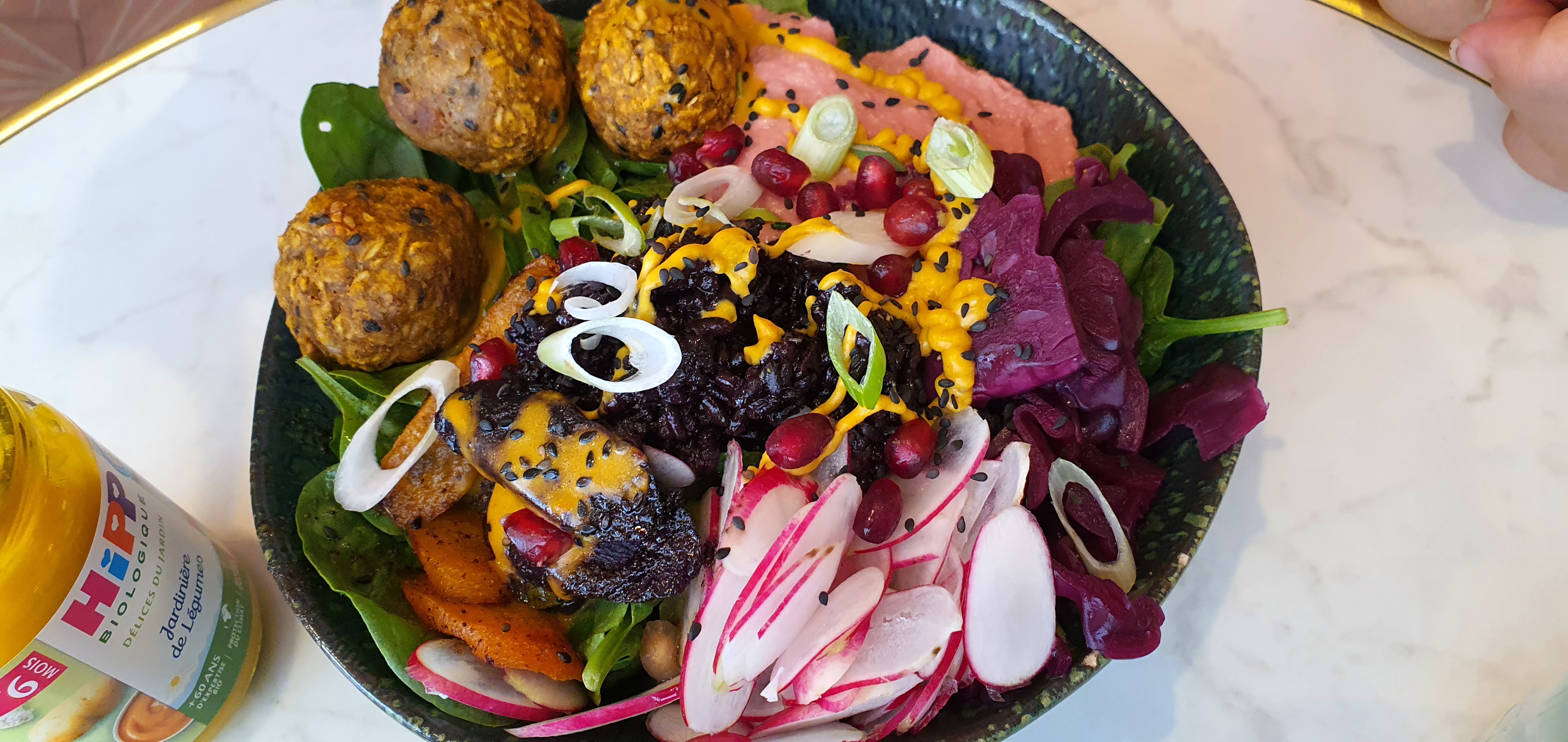 Deco sympa. Les assiettes sont bien présentées, saines et gourmandes au même temps. Idéal pour une pause entre copines 😉