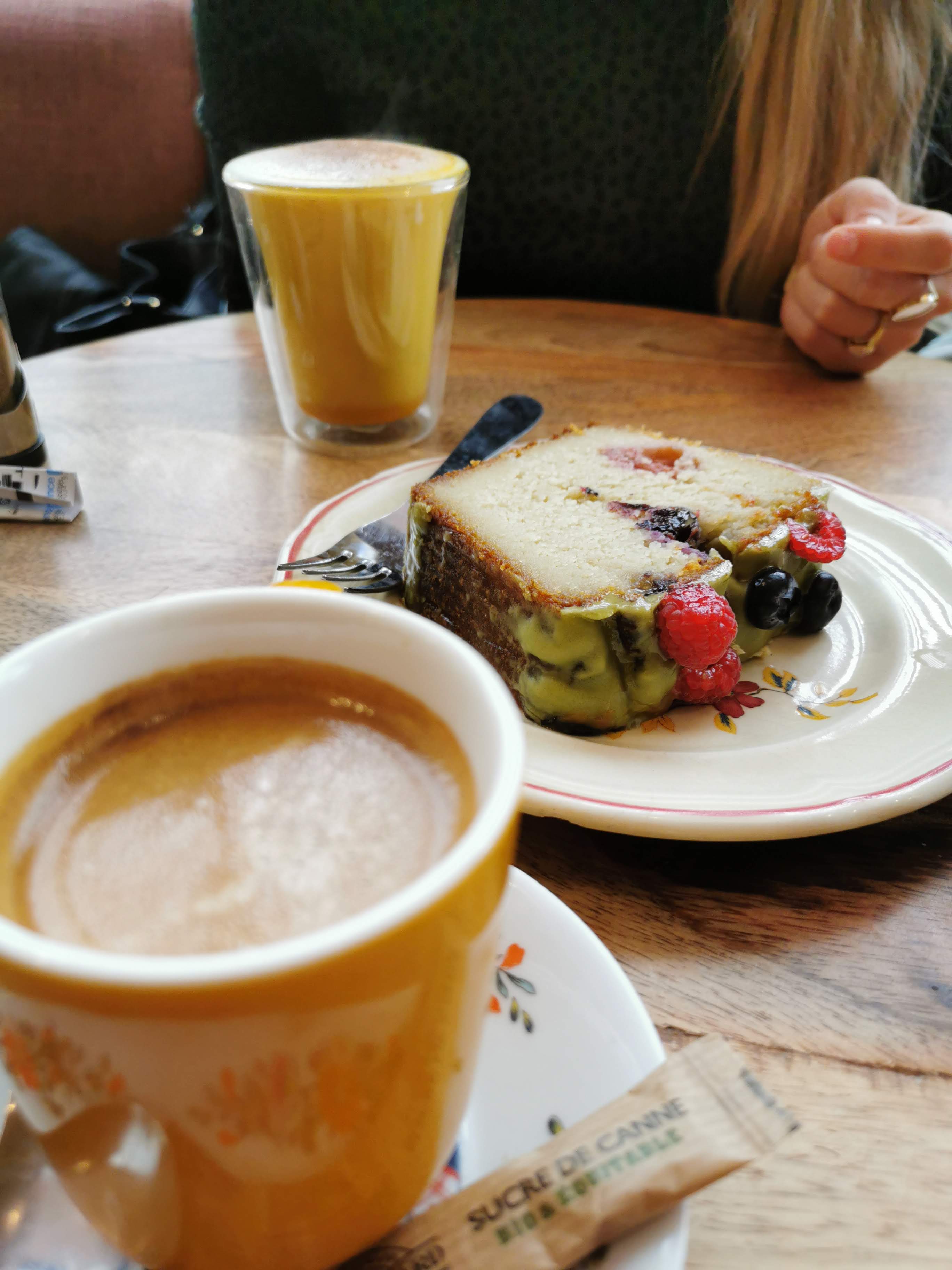 Le cadre est agréable et les cafés sont bons. Cependant, la serveuse a apporté un café sans sous-tasse et a posé la cuillère sur la table. Le pain cake était sec, mais le cake au chocolat était excellent. Pour le prix, nous nous attendions à une meilleure expérience. Une petite déception pour ce brunch en famille.