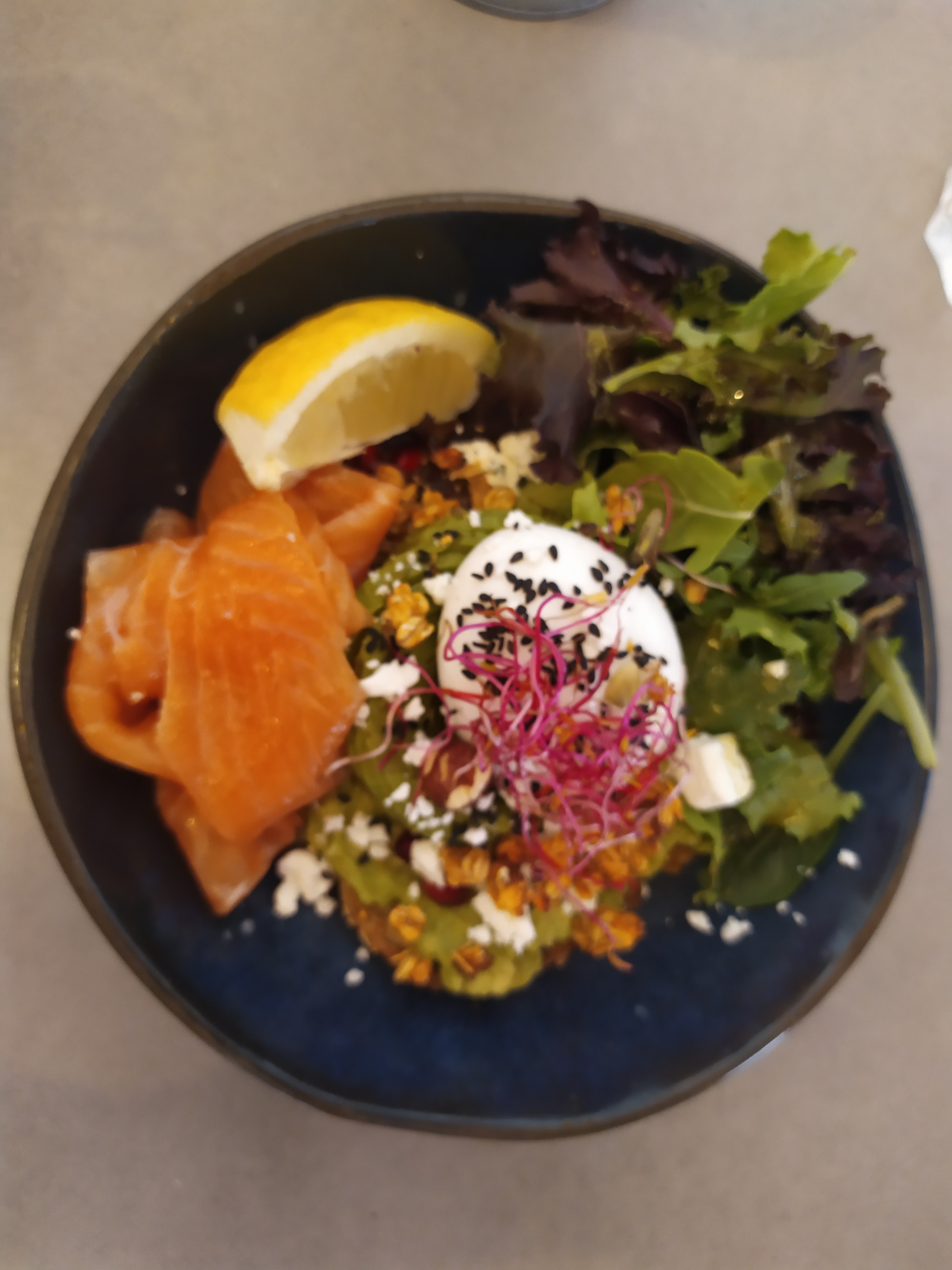 Bon mais sans plus, pour moi ça ne vaut pas son prix ! J’ai pris un iced matcha latte et un salmon avocado toast, le matcha n’était plus pas très qualitatif et pour le toast cela manquait d’assaisonnement et le pain était selon un peu mou.