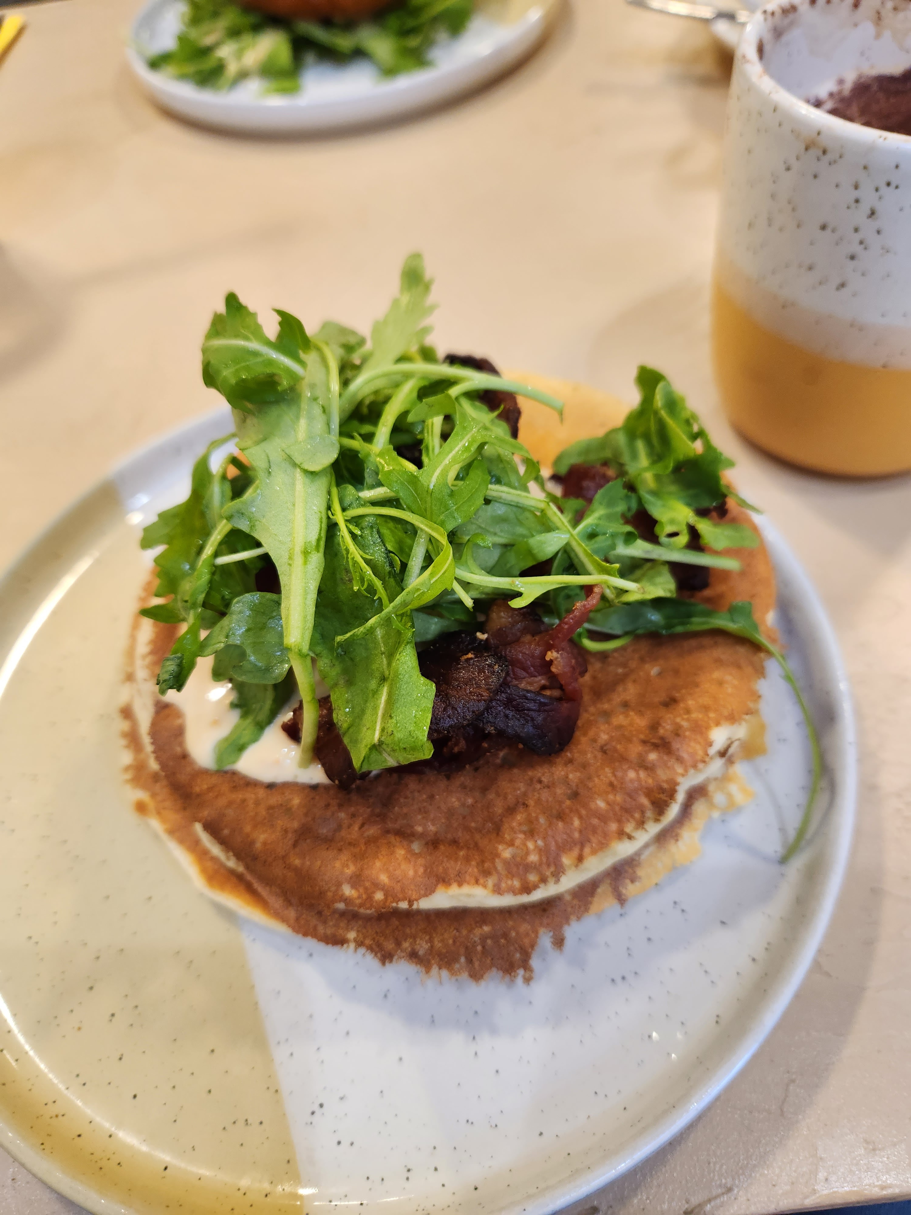 Avis mitigé sur cet établissement. Espace convivial, Cosy, et donc très agréable pour un Brunch le Weekend. Mais nous avons été un peu déçus de la qualité des plats (rapport qualité prix). Le Menu Brunch imposé est de 29€, impossible de commander à la carte :( J'ai apprécié mon Avocado Toast, bonne quantité. Mais ce n'était pas le cas des Pancakes qui sont arrivés assez froids (Et non pas tiède!). Donc forcément avec une texture moins agréable. Pareil pour la gaufre salée avec sauce et oeuf qui n'est pas arrivée à la bonne température. Néanmoins, le personnel est très sympathique et soucieux du bien-être des clients. On a reçu un petit gâteau gratuitement parce que l'on n'était pas pleinement satisfaits des plats. Bonne continuation ;)