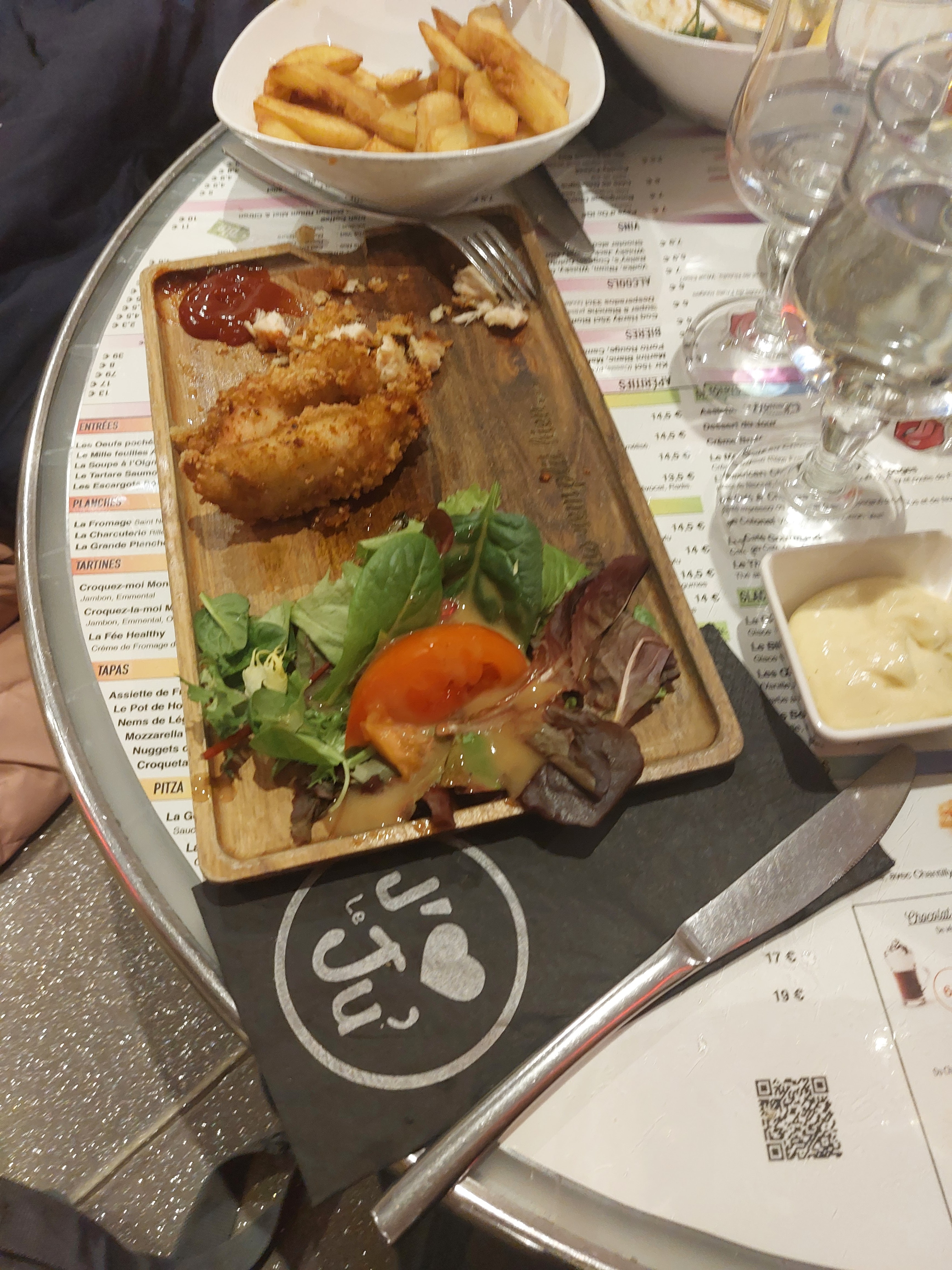 Très bonne salade César de Juju. Installée en terrasse avec un petit plaid, l'endroit est plutôt calme, l'accueil y est très chaleureux. Le serveur qui s'est occupé de moi est très à l'écoute, souriant et chaleureux, avec une petite touche d'humour. Service rapide. Le restaurant propose des plats du jour très appétissants avec un prix attractif. Je recommande.