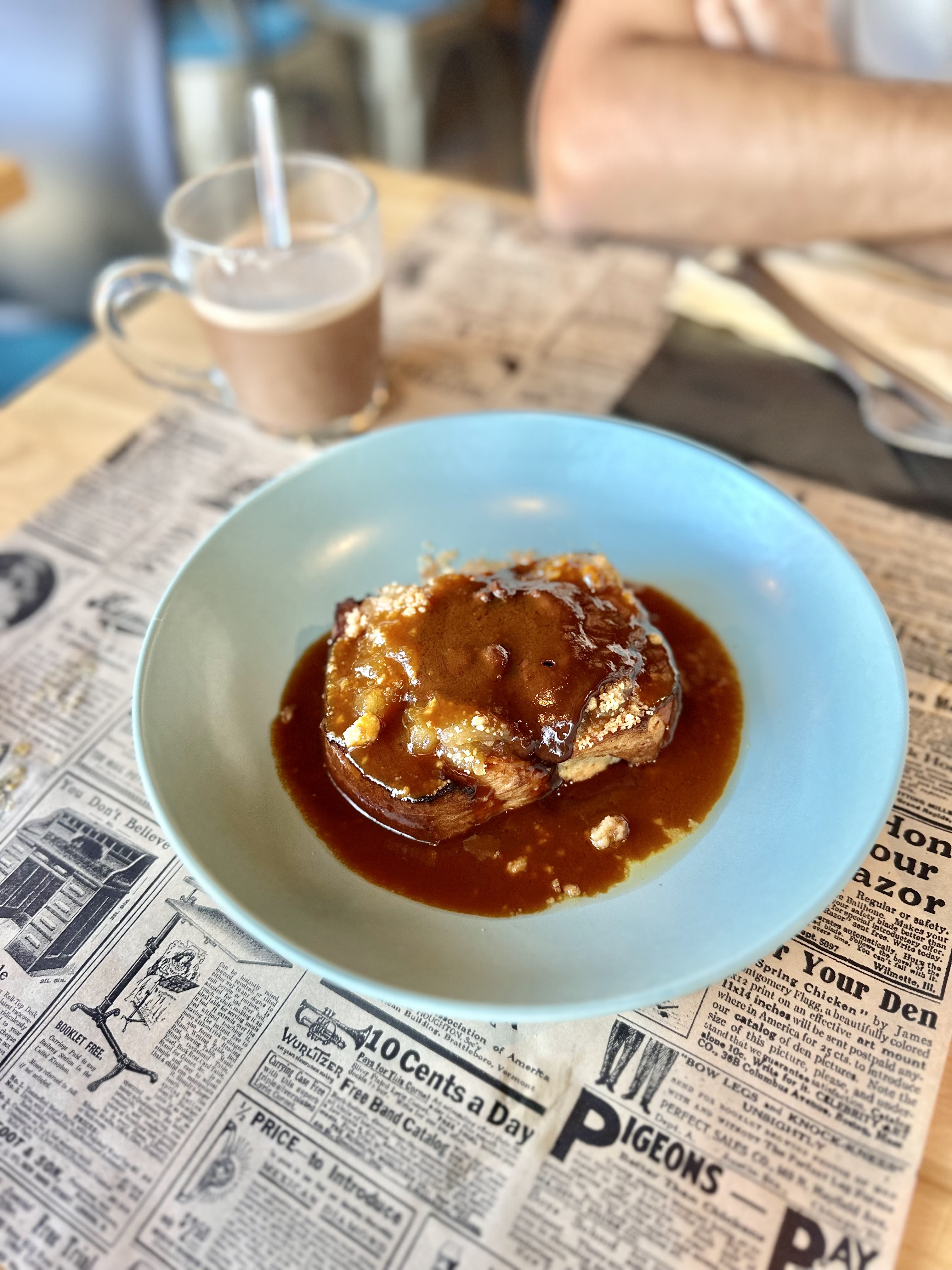 Nous avons passé un moment incroyable dans ce restaurant pour brunch ! J'ai testé le pancake œuf poché et le pain perdu au crumble et pommes caramélisées, et c'était absolument délicieux. Mon mari quand a lui a découvert le bagel au poulet un vrai délice, et le pain perdu au crumble était un véritable régal, avec des pommes caramélisées qui ajoutaient une touche sucrée juste comme il faut. Un grand merci à Tiffany pour son service impeccable, elle était attentionnée et pleine de sourire, ce qui a rendu cette expérience encore plus agréable. Je recommande vivement ce lieu pour un brunch gourmand et un service chaleureux !