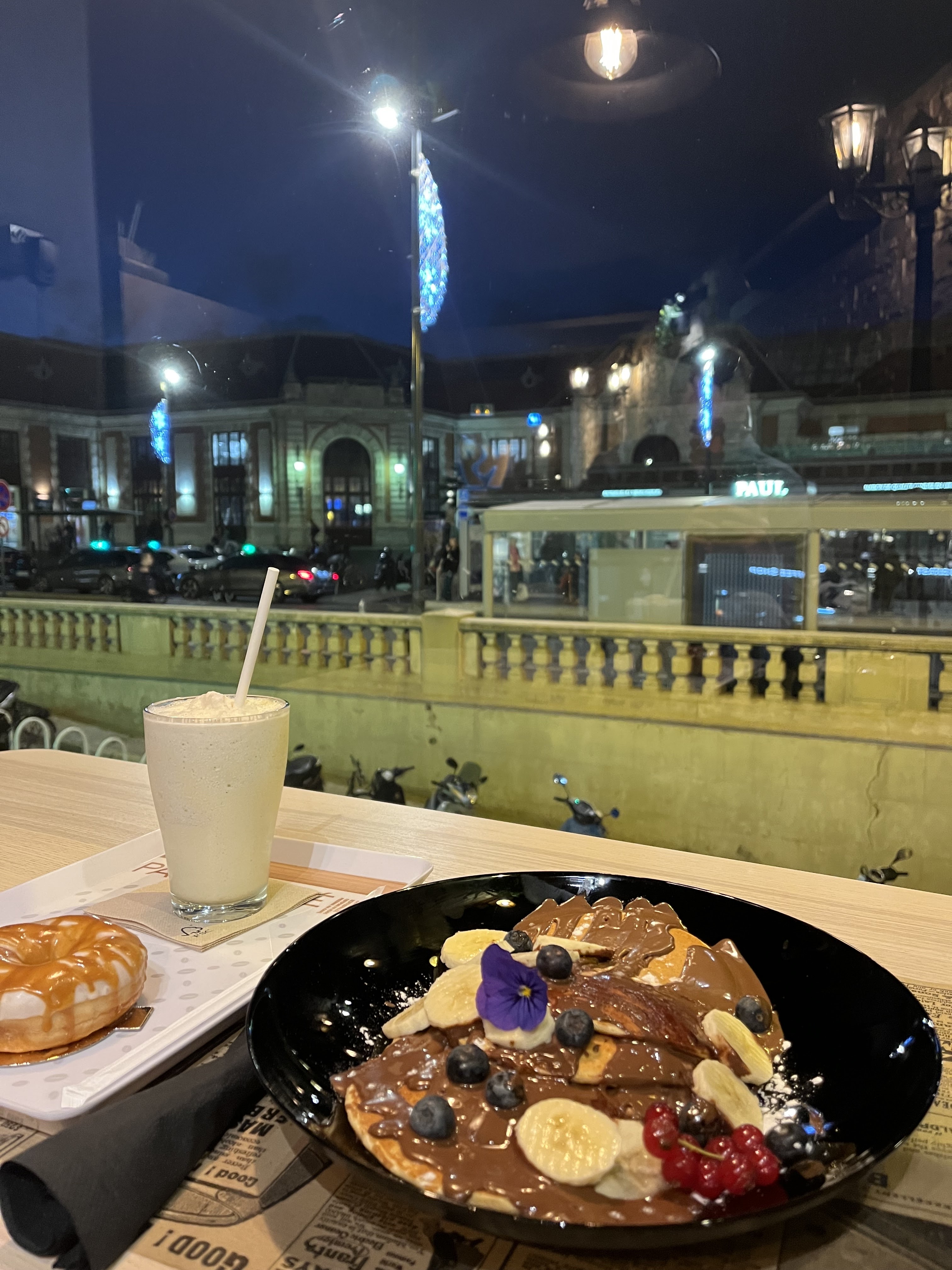 Petit restaurant bien placé et bien agencé, très propre. Un peu bruyant quand les fenêtres sont ouvertes, on est juste en face de la gare après tout. Le brunch est très bon, pas mal de choix en salé et en boisson, surtout en boisson chaude. Le pain perdu est top. Par contre petite déception sur le sucré, peu de choix et j'ai pris les pancakes qui étaient vraiment lourds, je les ai senti passer ! C'est une bonne adresse, on peut bien manger sans se ruiner 👍