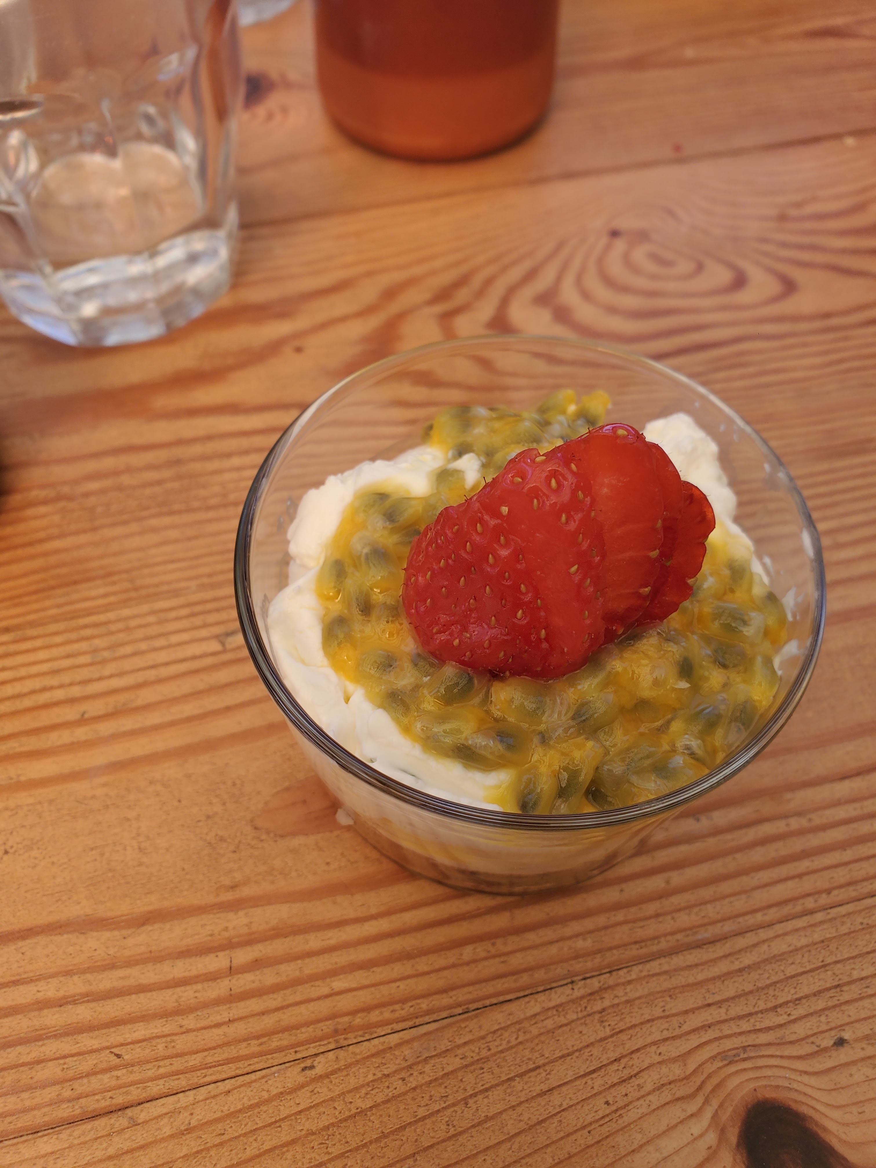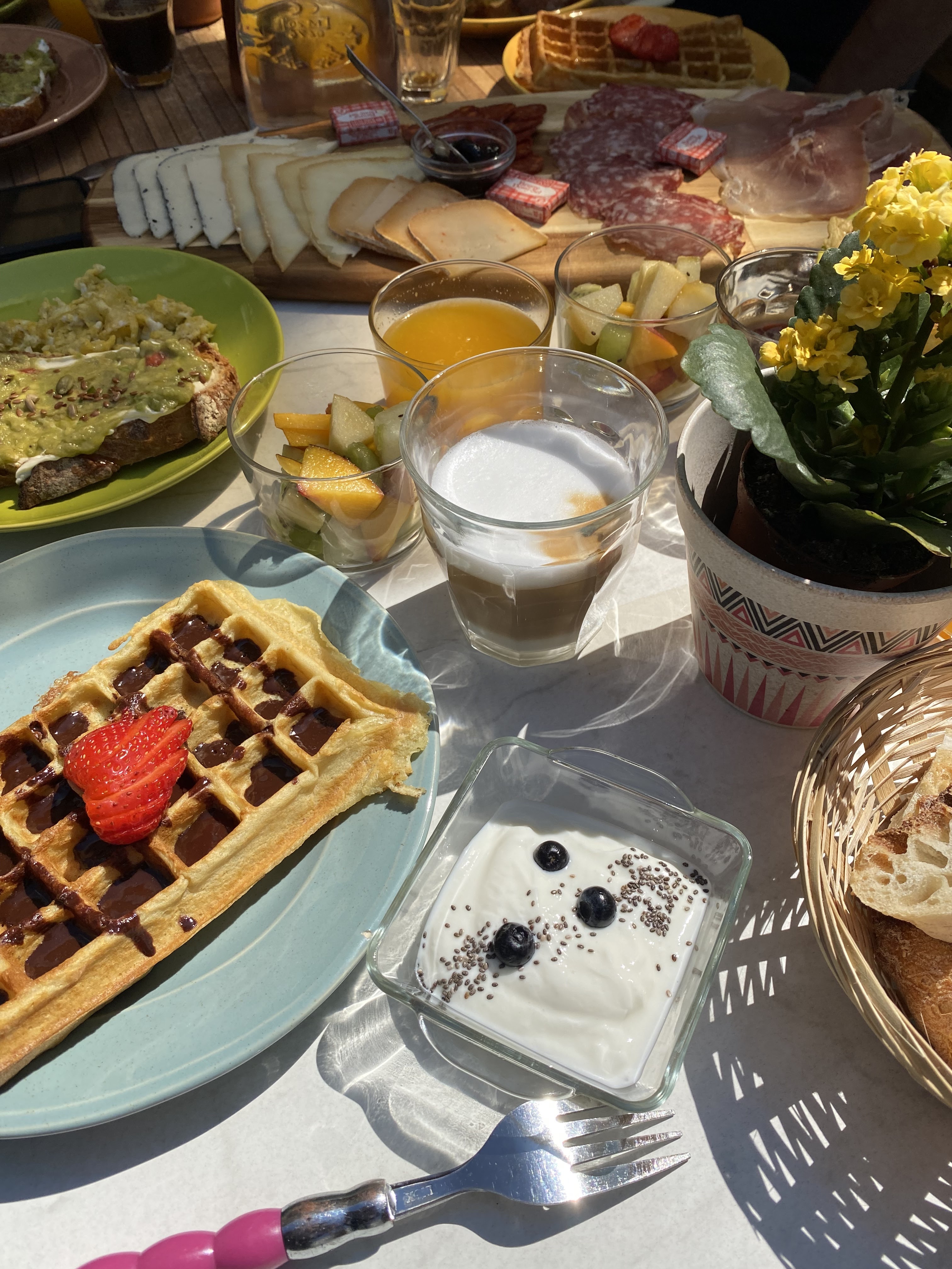 Brunch un mercredi matin de juillet : au top. Aussi bien les quantités que la qualité. Peut être une suggestion pour les familles avec enfants : proposer un choix entre 2 types de tartine serait un plus. En effet aucun de mes enfants n'est fan d'avocat et ils n'ont pas mangé leur tartine, c'est dommage (mais nous avons pu les emporter pour les manger plus tard). Les fruits frais : un régal 🤤