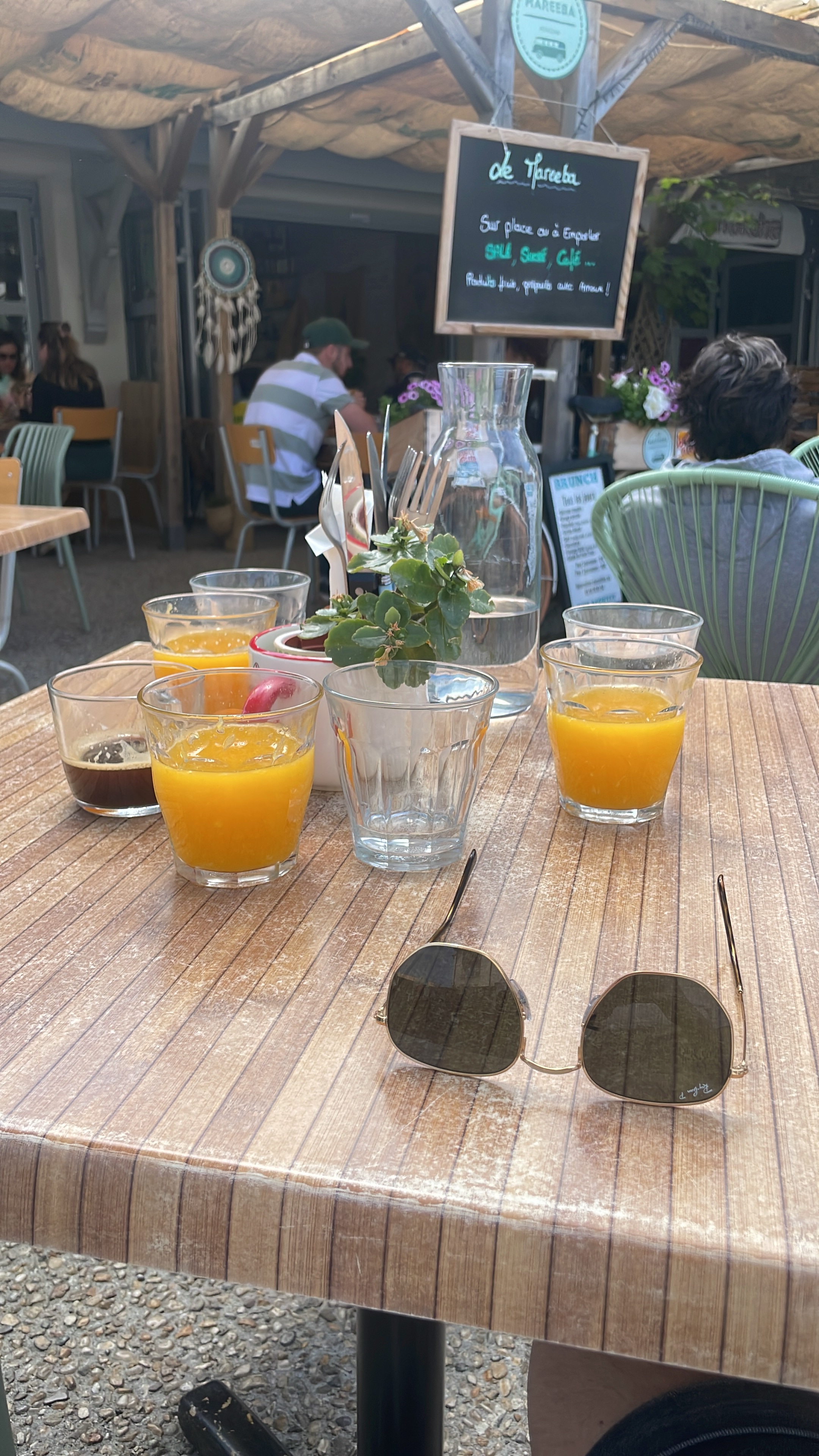 Pour clôturer notre week-end à Mimizan-Plage, Le Mareeba a été l'endroit parfait pour notre brunch : tartines, oranges pressées, fruits frais, pancakes, oeuf bio ... On peut ajouter quelques options, Matcha, boisson végétale ... C'est très complet, préparé à la minute, proposé avec le sourire et une très chouette ambiance musicale ... Délicieux, généreux et joli moment sur leur terrasse !
