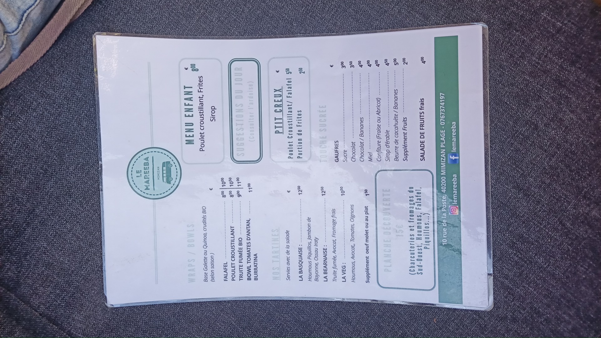 J'ai passé 10 jours à Mimizan-plage. Étant assez compliquée niveau cuisine, j'étais ravie de tomber sur ce restaurant au top qu'est le Mareeba. Sans mentir, j'y suis allée manger une fois par jour tout au long de mon voyage. Du sucré au salé, rien à dire. Ambiance en salle familiale et accueillante. Déco trop mignonne, on s'y sent vraiment bien. Carte concrète, tout est inscrit. Produits frais et fait maison. Les assiettes sont colorées et donnent envie. Je vous invite fortement à y passer. Vous ne serez pas déçus !